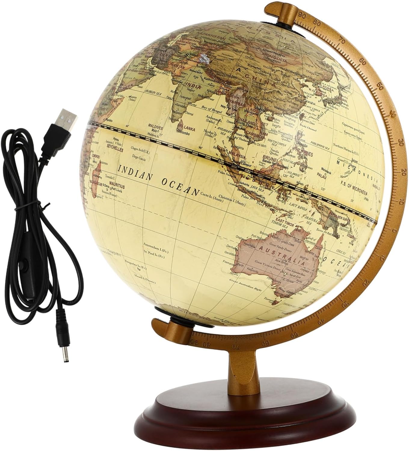 Confini politici accurati e informazioni topografiche dettagliate come informazioni su paesi e mappe fisiche ti aiuteranno a comprendere meglio i tuoi vicini globali e ti daranno una nuova comprensione delle meraviglie del cielo! Secondo DEM (Professional Surveying and Mapping Elevation Data) il terreno tridimensionale del mondo è calcolato accuratamente per mostrare al meglio le montagne della terra e il vasto oceano. Adotta il classico stile di design artistico della mappa antica, ricchi colori naturali, confini regionali distinti e trame di sfondo tattili. Sfera di carta ecologica, lavorazione squisita, base in metallo, staffa e base sono realizzate in metallo bronzo, semplice ed elegante; staffa in scala a doppia faccia, gerarchia chiara, stabile e potente. Sulla base metallica è presente una mappa spiegata, intarsiata con indicazioni geografiche nazionali; puoi toccare direttamente le montagne ondulate e gli altipiani sulla sfera.