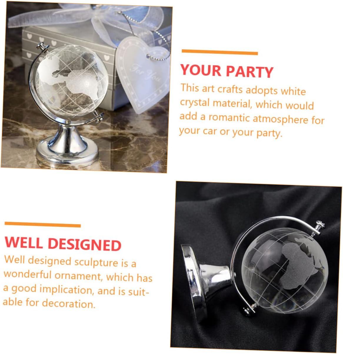 Decorazione del mappamondo da tavolo: materiali preferiti, sicuri e pratici. Mappamondo da scrivania: questa decorazione utilizza una base solida per sostenere e bilanciare l'intero ed evitare che ribalti. Decorazione del globo geografico: è realizzato con squisita fattura, ha un tocco confortevole e di qualità e può essere ben decorato preferisci. Globo geografico chic: è realizzato in materiale , resistente e con una consistenza eccellente. Decorazione del globo educativo: il design è squisito, alla moda e versatile e può essere applicato molto bene alla tua decorazione d'interni, aggiungendo un'atmosfera calda e romantica.