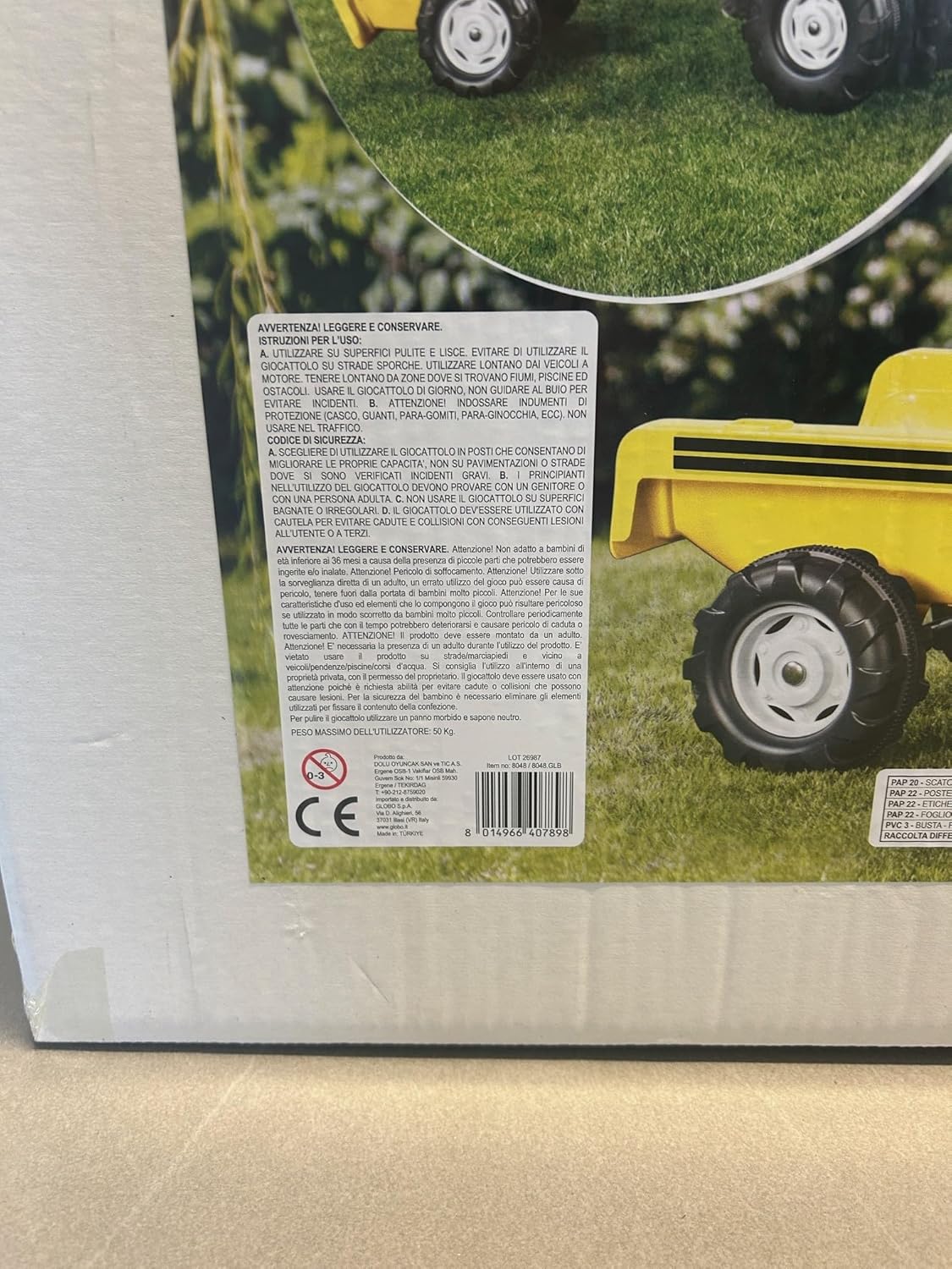 | Istruzioni di manutenzione materiale | Pulire il giocattolo con un panno morbido e sapone neutro |