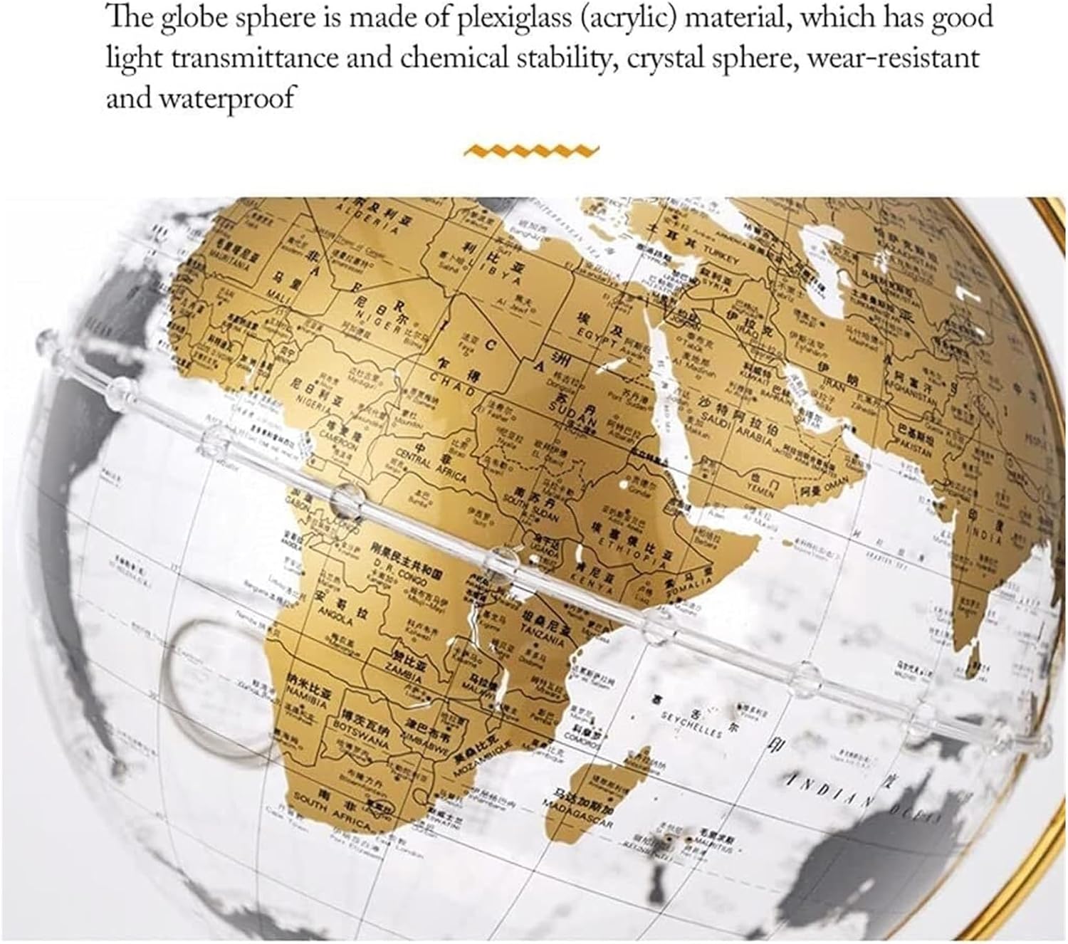 I globi sono eccellenti strumenti didattici e il modo perfetto per incoraggiare l'apprendimento e l'esplorazione della geografia mondiale. I globi offrono un modo divertente per insegnare la geografia. Sono ideali come materiale di riferimento in classe. La palla è realizzata in materiale ecologico (acrilico), che ha una buona trasmissione della luce e stabilità chimica. La sfera di cristallo è resistente all'usura e impermeabile. La superficie della palla è liscia e rotonda, la stampa della palla è chiara, i contenuti sono completi e facili da ricordare, così puoi esplorare ogni angolo del mondo in qualsiasi momento. (Diametro: 20 cm/7,8 pollici) Stampa ad alta definizione, la superficie della palla utilizza un processo di serigrafia ad alta definizione, la gamma di colori è chiara, la scrittura è chiara, la visione è intuitiva ed è chiara a colpo d'occhio. Le perle equatoriali, come i cristalli, sono di squisita fattura e l'identificazione e l'isolamento sono più chiari. Con una scala temporale, la scala è chiaramente visibile e facile da identificare.