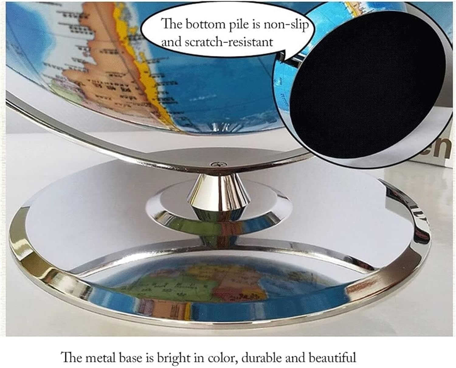 I globi sono eccellenti strumenti didattici e il modo perfetto per incoraggiare l'apprendimento e l'esplorazione della geografia mondiale. I globi offrono un modo divertente per insegnare la geografia. Sono ideali come materiale di riferimento in classe. L'emisfero sud è facile da riconoscere, la base in metallo ultrasottile è cinque volte più grande della città, nobile ed elegante. La staffa metallica è robusta e bella, le viti sono robuste, non è facile cadere o tagliarsi le mani. È realizzato con materiali ecologici di alta qualità e la superficie è ricoperta da una pellicola, che è più facile da pulire e più durevole. Con gli ultimi dettagli sulla versione, i nostri globi incoraggiano i bambini curiosi a esplorare il mondo della scienza con le proprie mani e i propri occhi. Globo grande 42 cm, stampa ad alta definizione su macchina da stampa a 9 colori, grafica chiara e delicata, colori tenui, stampa ad alta definizione, caratteri chiari, caratteri grandi, protezione per gli occhi. La base in metallo è di colore brillante, robusta e durevole, il fondo della pila è antiscivolo, resistente ai graffi, bello e generoso