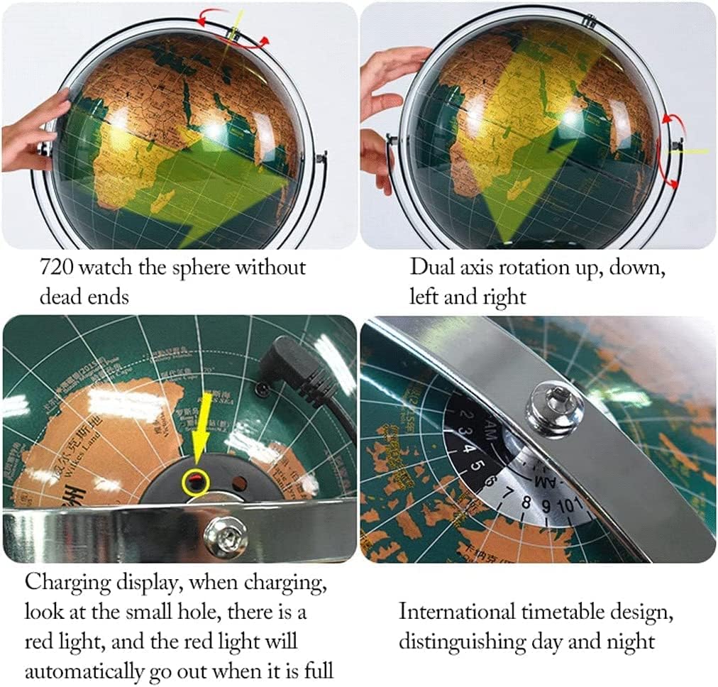 Design pratico: il tipo ricaricabile non ha bisogno di essere collegato per accendere la luce e il tocco illuminerà il tuo pianeta; la sfera di visualizzazione a 720° senza estremità cieche può essere ruotata su e giù, a sinistra e a destra. Istruzione interessante: incoraggiare i ragazzi curiosi a esplorare il mondo della scienza, fargli avere una comprensione generale del mondo e altre storie li aspettano da esplorare e scoprire. Vogliamo espandere la loro immaginazione attraverso il nostro pianeta, non limitarla. Globo luminoso: cerca paesi o laghi al buio, oppure usalo come luce notturna mentre dormi. Non solo migliorerai le tue competenze geografiche, ma il globo è anche dotato di luci LED integrate, così puoi illuminarlo quando ne hai bisogno. DECORAZIONE CLASSICA PERFETTA: con una rotazione di 720°, puoi ruotare il globo attorno al suo asse per trovare una posizione geografica o accendere le luci per creare l'atmosfera perfetta in qualsiasi stanza. PERFETTAMENTE PRATICO: paralumi di alta qualità e basi in metallo di alta qualità aggiungono classe a qualsiasi stanza, lo stile retrò invecchiato è perfetto per tutti gli arredamenti per la casa, soggiorni, uffici, tane, bagni, comodini e altro ancora.