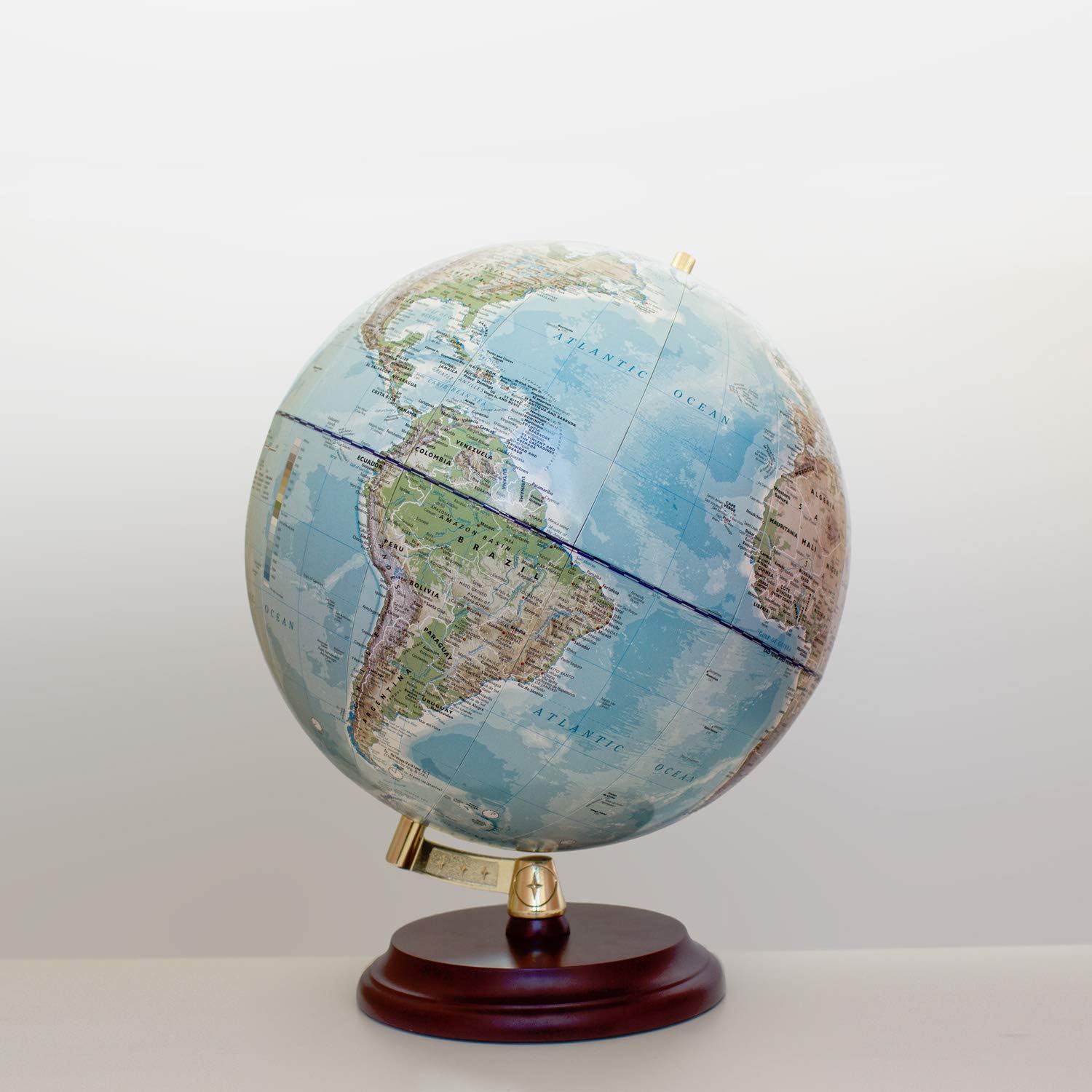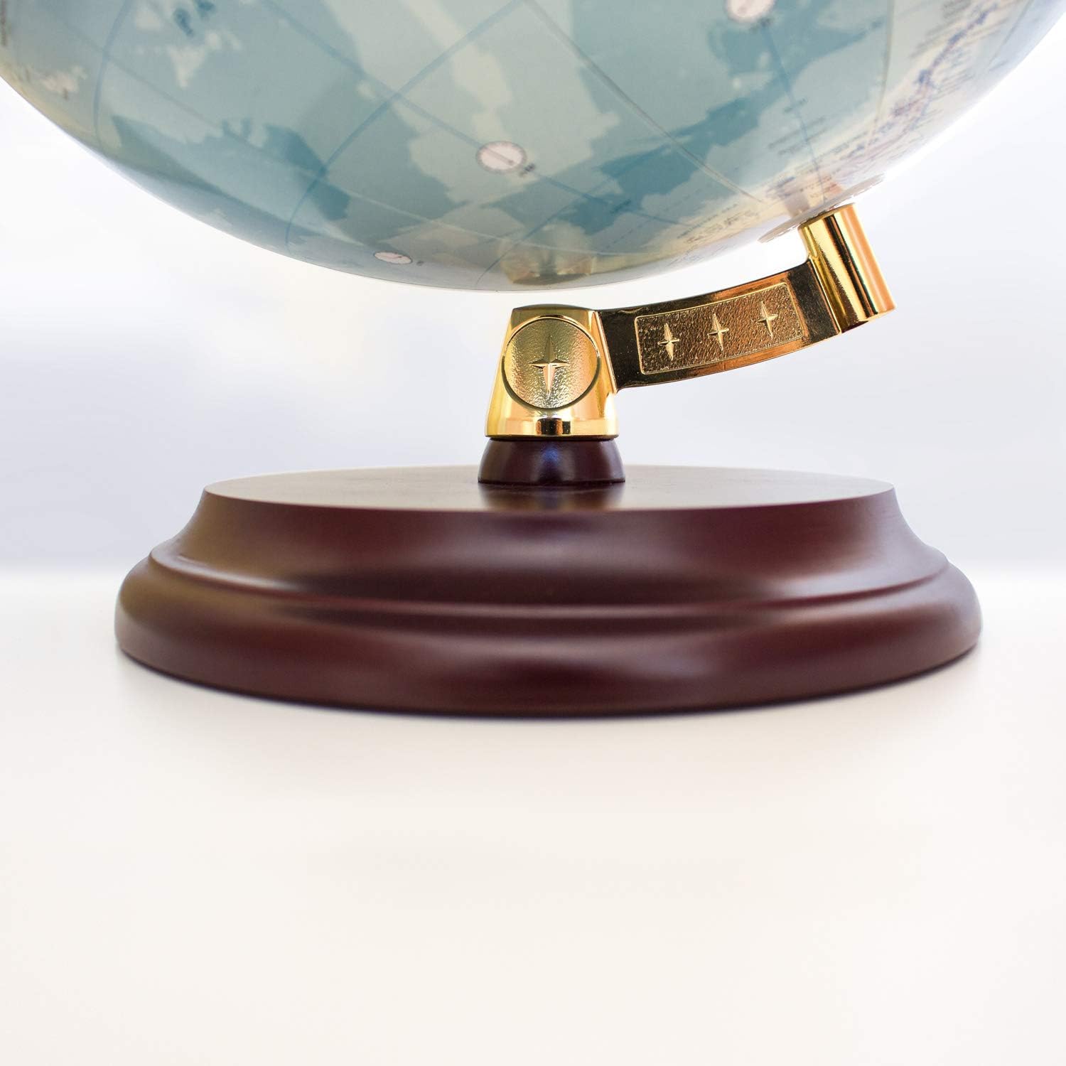 Produttore: Magellan Expedition, modello: Vasa, materiale: plastica a scelta (immagine mappa politica) o carta su sfera di plastica (laminata a mano), base/struttura: base in legno rosso-marrone Globo con immagine di mappa politica o immagine di carta geografica generale, scala: 1:40.000.000, diametro: 32 cm, altezza: 40 cm. Grazie al suo moderno supporto indipendente in elegante tonalità dorata, il mappamondo Vasa diventa rapidamente un'attrazione sulla scrivania, a casa o in ufficio. In diverse versioni, un mappamondo della serie "Vasa" in scala 1:40.000.000 offre una panoramica con la rappresentazione dei confini nazionali, delle principali città e capitali, nonché montagne, deserti, fiumi, specchi d'acqua e molte informazioni aggiuntive. L'immagine della mappa è aggiornata, differenziata per colori e in inglese