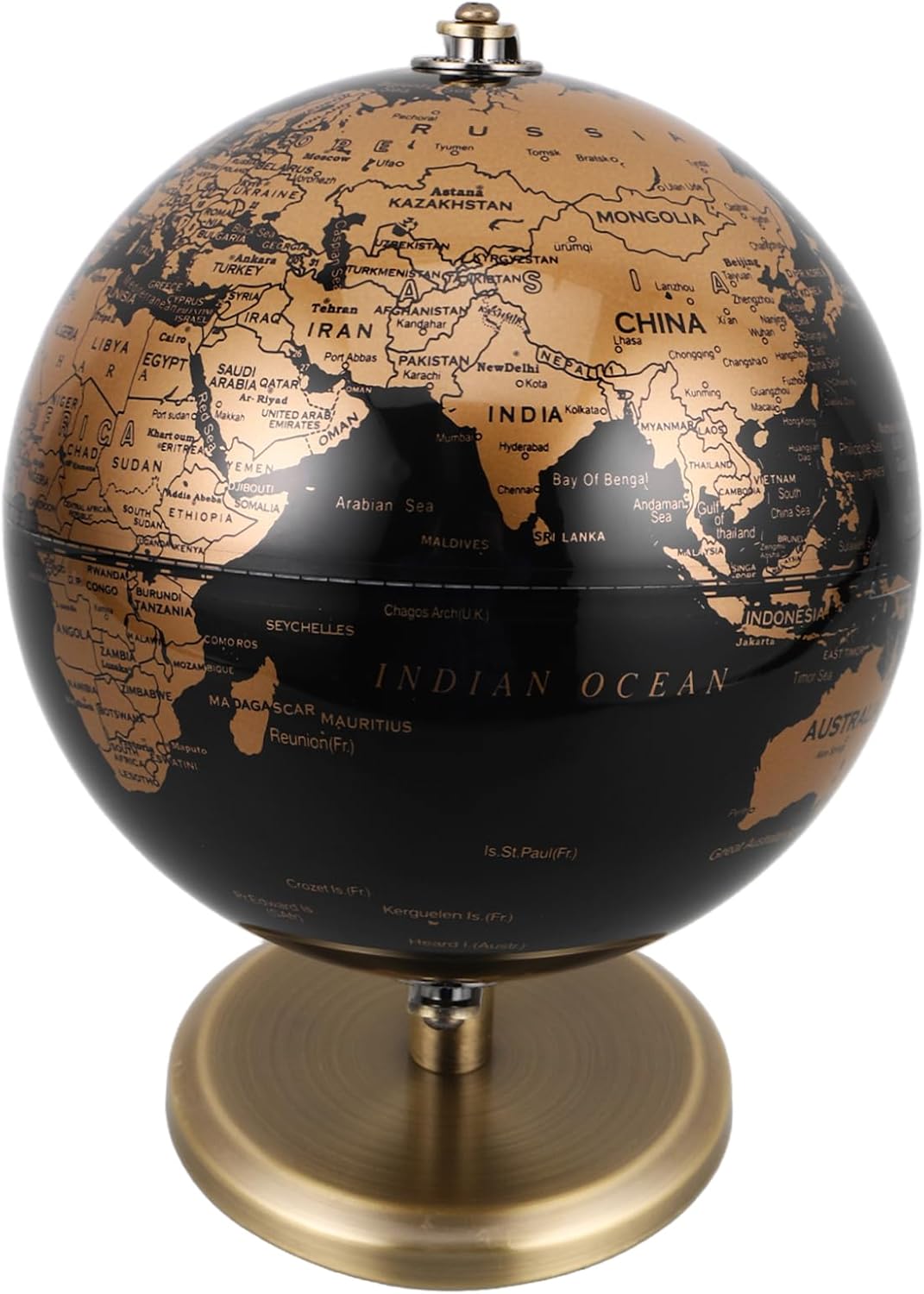 Mappamondo colorato: questo bellissimo e colorato mappamondo costituisce una meravigliosa aggiunta all'arredamento della tua casa, classe e sala giochi. Aiuta i tuoi figli a comprendere le idee del mondo, dei continenti, dei paesi e delle città con un globo interattivo ben progettato Il parasole antico e la base in metallo di alta qualità aggiungono un tocco di classe a qualsiasi stanza Lo stile retrò invecchiato è adatto a tutte le decorazioni della casa, soggiorno, ufficio, studio, bagno e comodino, ecc. Ruotabile a 720° o 360°: globo grande, ruotabile a doppia latitudine, ruotabile a 720°. Globo piccolo, ruotabile a 360° Materiale: lega + plastica, caratteri chiari, informazioni geografiche di facile lettura, incoraggiano i bambini curiosi a esplorare il mondo della scienza.
