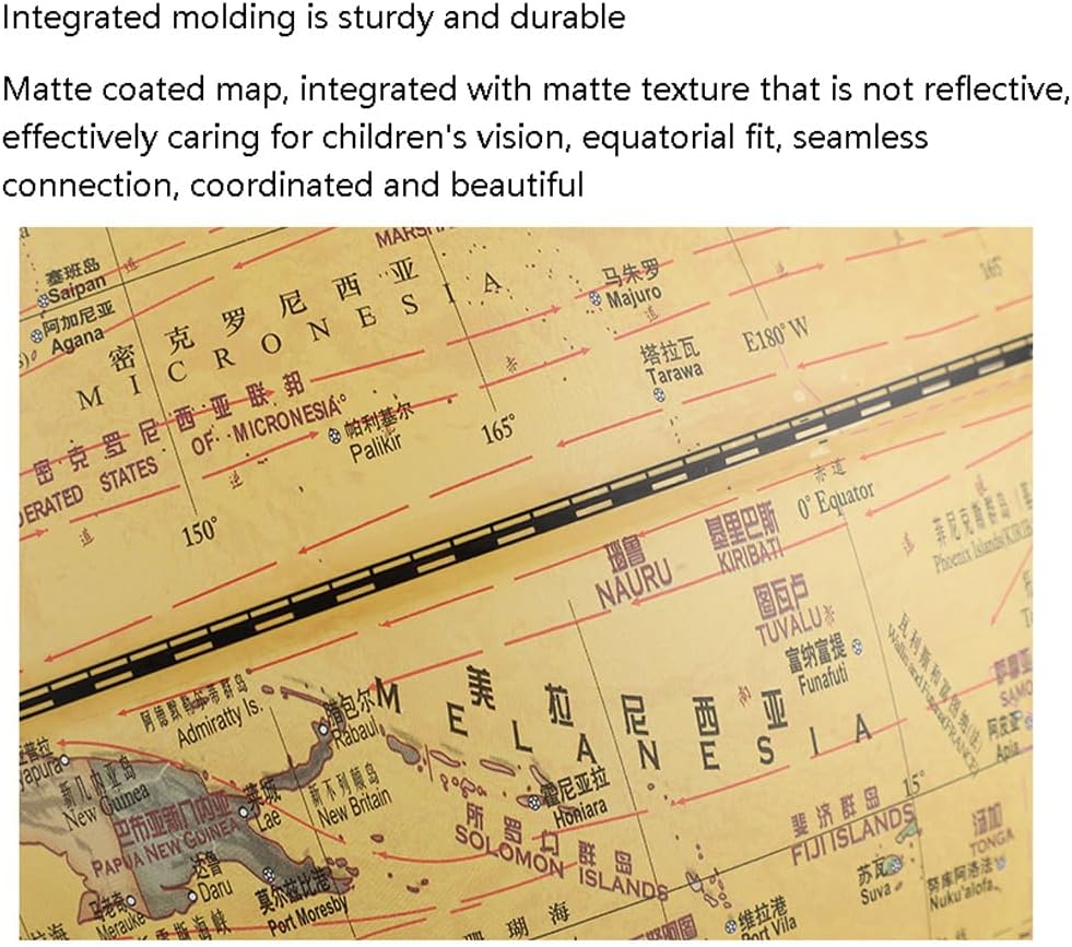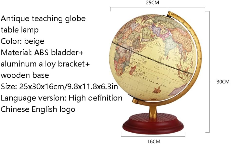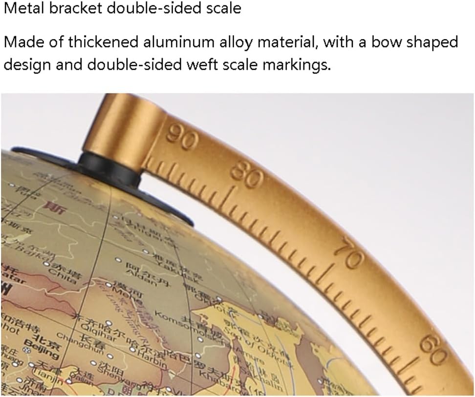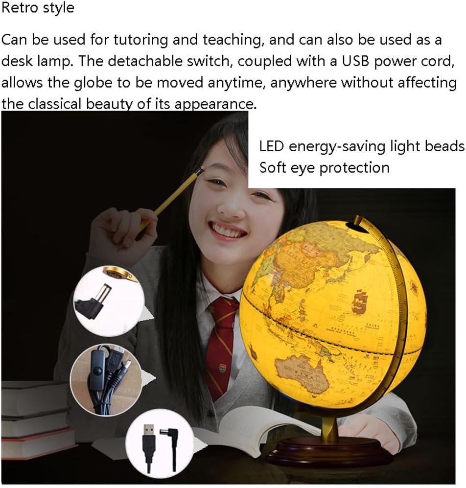 *Un globo vibrante e visivamente accattivante catturerà l'attenzione dei tuoi figli e studenti, rendendo l'apprendimento più piacevole e aggiungendo elementi divertenti e coinvolgenti all'ambiente di apprendimento. *La sfera è realizzata con materiali di alta qualità, integrati e durevoli. È coperto da una mappa di pellicola opaca e integrata, con una trama opaca che non è riflettente, prendendosi cura efficacemente della vista dei bambini. La vestibilità equatoriale si connette e coordina perfettamente. *Stile retrò, può essere utilizzato per tutoraggio e insegnamento e può anche essere utilizzato come lampada da scrivania. Perline LED a risparmio energetico, protezione delicata per gli occhi, interruttore staccabile, abbinato a un cavo di alimentazione USB, consentono al globo di spostarsi sempre e ovunque. *La staffa metallica è dotata di scale bifacciali, realizzate in materiale in lega di alluminio ispessito e progettate a forma di arco, con segni di scala della linea di trama bifacciale. Base in legno, alla moda e bella, robusta, resistente e stabile. Aggiungendo un tocco classico, i modelli classici emanano una forte atmosfera umanistica. *Un globo luminoso con una staffa è perfetto come regalo di apprendimento della geografia o dell'illuminazione per le persone, aiutandoli a guidare i loro figli a conoscere insieme la mappa del mondo, rendendo l'intero tempo di apprendimento più interessante. Questo è ottimo anche per i bambini o per coloro che imparano a conoscere la Terra.