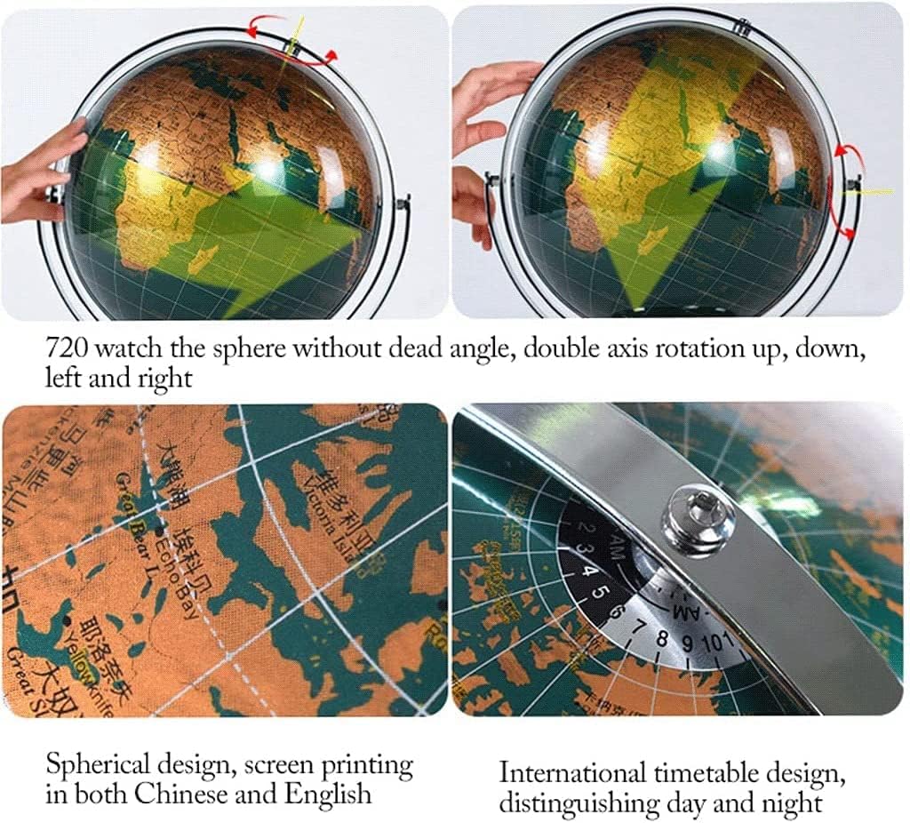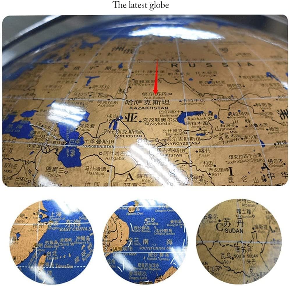 Divertimento: usa questo globo terrestre per espandere i tuoi orizzonti e migliorare la tua conoscenza della geografia terrestre! Offre un modo divertente e conveniente per imparare l'educazione geografica a casa, in classe o in ufficio. Usalo come un espositore accattivante su una libreria o una scrivania. Design della luce touch ricaricabile: tocca la piccola perlina gialla per accendere e spegnere la luce, premi a lungo per regolare la luminosità; può essere utilizzata come luce notturna Serigrafia trasparente: la superficie della sfera non è riflettente, i caratteri sono chiaramente visibili, la superficie della sfera è ricoperta da una pellicola perlata e il cuscinetto inferiore antiscivolo non è facile da scuotere. Finemente lavorati: scala semicircolare, scala di ferro, il valore della scala presenta evidenti protuberanze e il carattere è chiaramente visibile PALLA DECORATIVA PERFETTA: Usala come luce notturna unica per bambini o adulti, o aggiungi un tocco di raffinatezza all'arredamento della tua casa o del tuo ufficio. Distinguiti nel tuo arredamento con questo globo da 10" di diametro con una forma classica e una mappa oceanica colorata