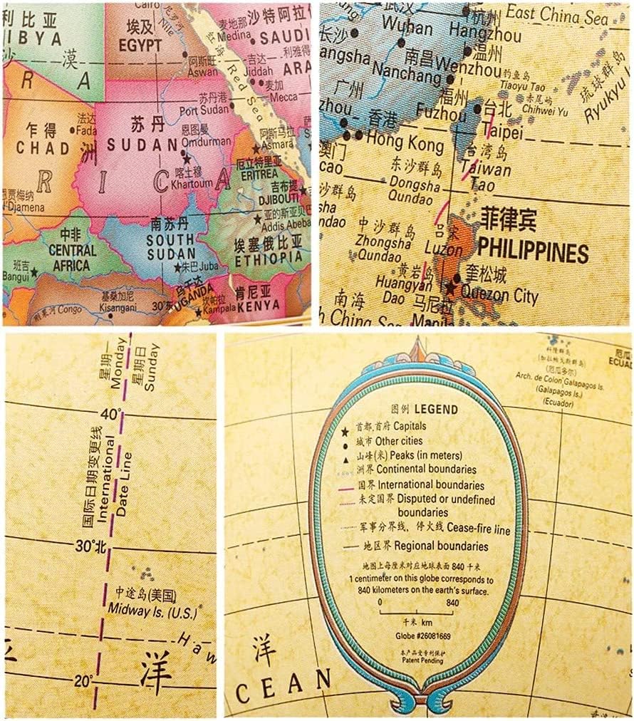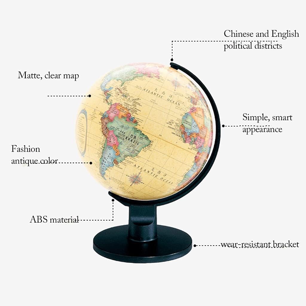 Globo standard avanzato: globo attuale, dettagliato e accurato. Stampa ad alta definizione, il testo è chiaro e di facile lettura. Considera sia l'aspetto che la funzione. Usa il nostro mappamondo per segnare dove sei stato o dove vuoi andare. Durevole e stabile: il mappamondo è realizzato in PVC, completamente sicuro per i bambini. Con tutto il telaio in acciaio, la struttura è resistente e durevole. Globo geografico dettagliato: il testo su questo globo è chiaro e preciso, puoi usarlo per insegnare, leggere chiaramente i nomi di paesi e città. I piatti di ogni paese sono colorati e hanno le loro caratteristiche. Uso durevole: realizzato con materiali di alta qualità, questo mappamondo decorativo da scrivania è abbastanza resistente da resistere all'usura quotidiana. Crea divertimento interattivo: il globo educativo aiuta tuo figlio a esplorare i confini politici del mondo, i continenti oceanici e le città. Rendi divertente l'apprendimento della geografia!