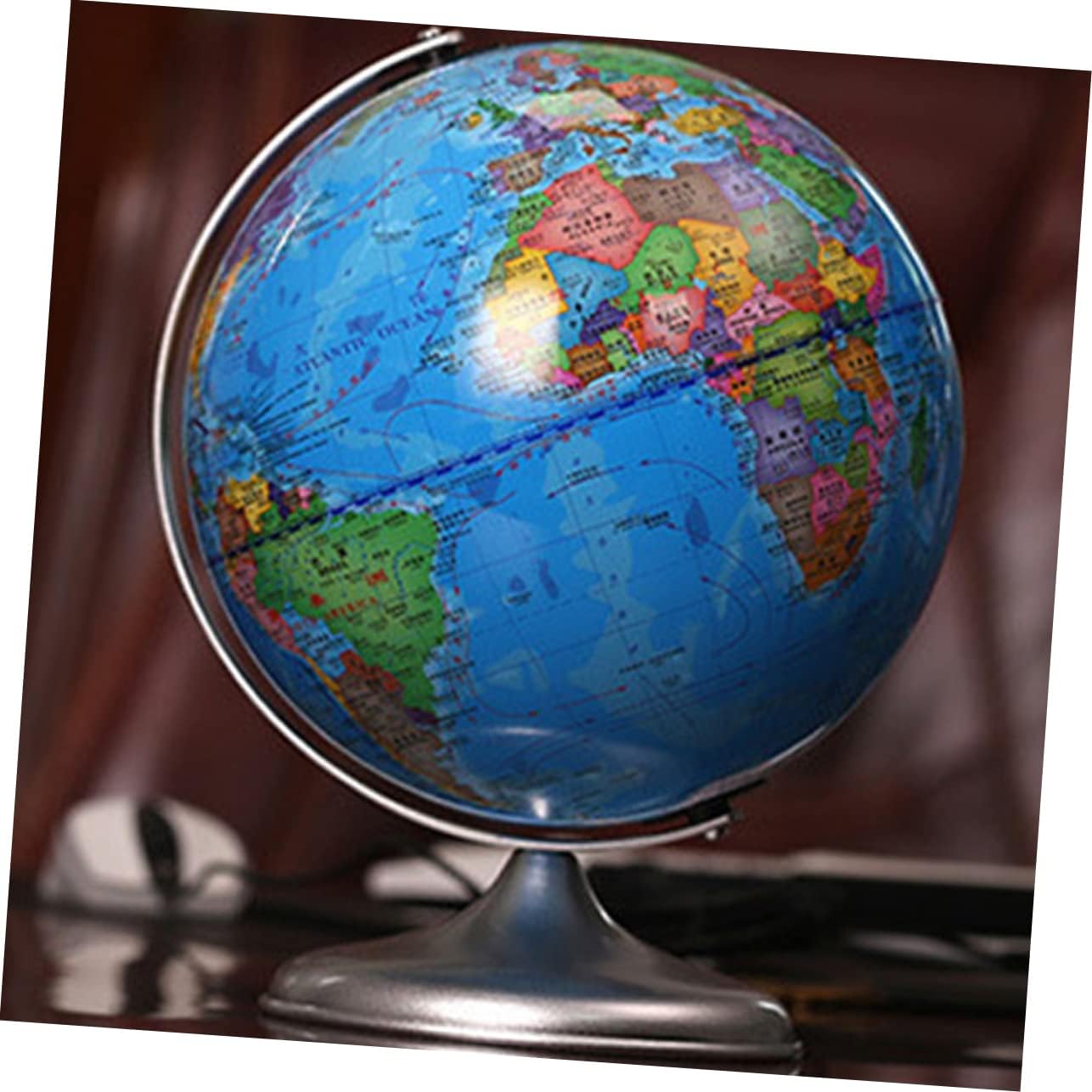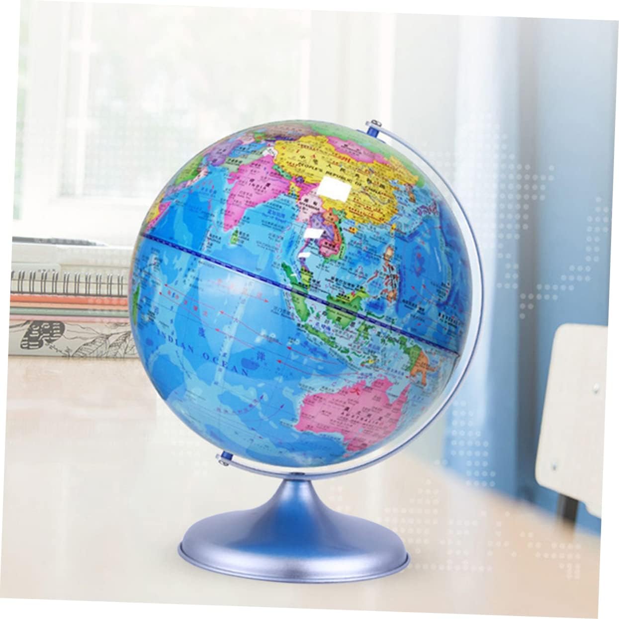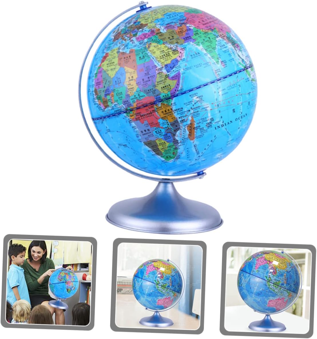 Decorazione del mappamondo per ufficio: perfetta per la decorazione di diverse scene, casa, bar, ufficio e ristorante. Giocattolo mappamondo per bambini: ha dimensioni adeguate, non occupa molto più spazio ed è facile da trasportare. Mappamondi per bambini: l'ornamento può stimolare l'interesse del bambino per l'esplorazione del mondo. Globo decorativo: e buona fattura lo rendono decorativo e pratico, puoi usarlo con sicurezza. Decorazione del globo da tavolo: il design delicato rende questa palla tellurione perfetta per del festival per famiglie e amici.