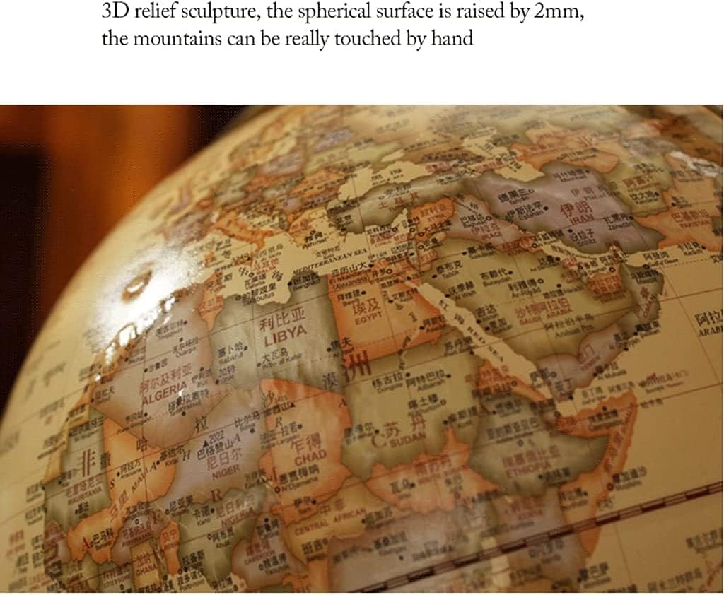 Globo standard avanzato: globo attuale, dettagliato e accurato. Stampa ad alta definizione, il testo è chiaro e di facile lettura. Considera sia l'aspetto che la funzione. Usa il nostro mappamondo per segnare dove sei stato o dove vuoi andare. Mensola multifunzionale: base treppiede in legno di alta qualità, che può essere utilizzata per posizionare piante in vaso o altri oggetti, realizzata in legno, stabile e durevole e può essere spostata a piacimento. Design in rilievo tridimensionale 3D: la superficie sferica è rialzata di 2 mm e puoi davvero toccare le montagne con le tue mani. Aiuta tuo figlio a comprendere il concetto di mondo, continenti, paesi e città con questo globo interattivo ben progettato Crea divertimento interattivo: il globo educativo aiuta tuo figlio a esplorare i confini politici del mondo, i continenti oceanici e le città. Rendi divertente l'apprendimento della geografia! Pratico, bello e lussuoso: è una decorazione elegante, sia a casa che in ufficio. Inoltre, ha anche caratteristiche di anticorrosione e resistenza all'usura, quindi ha una lunga durata e un'eccellente garanzia di qualità.