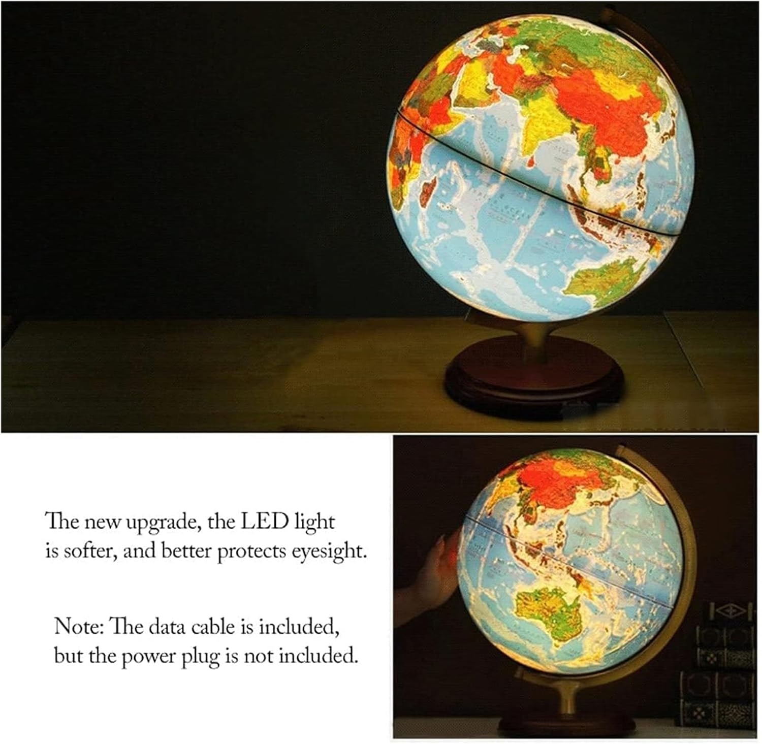 globi sono eccellenti strumenti educativi e il modo perfetto per ispirare l'apprendimento e l'esplorazione della geografia mondiale. I globi offrono un modo divertente per introdurre la geografia. Sono eccellenti strumenti di riferimento in classe. La superficie del nostro globo è appositamente trattata per consentire la scrittura, la marcatura, ecc., è impermeabile e può essere conservato a lungo, garantendo una maggiore durata. Sfera verde in ABS, base in legno. Il globo luminoso di facile lettura con supporto in legno è realizzato in plastica ABS resistente e liscia e ruota facilmente con le dita. Quando la luce è spenta, il territorio, le pianure e le montagne sono visibili a colpo d'occhio; quando la luce è accesa, vengono mostrate le regioni politiche del mondo e i diversi paesi vengono visualizzati con colori diversi. Questo globo luminoso con supporto non solo può fornirti una mappa del mondo completa, ma può anche migliorare le tue competenze geografiche. Puoi anche accendere la luce per trasformarlo in un bellissimo globo luminoso che può essere utilizzato come lampada da scrivania o come studio notturno.