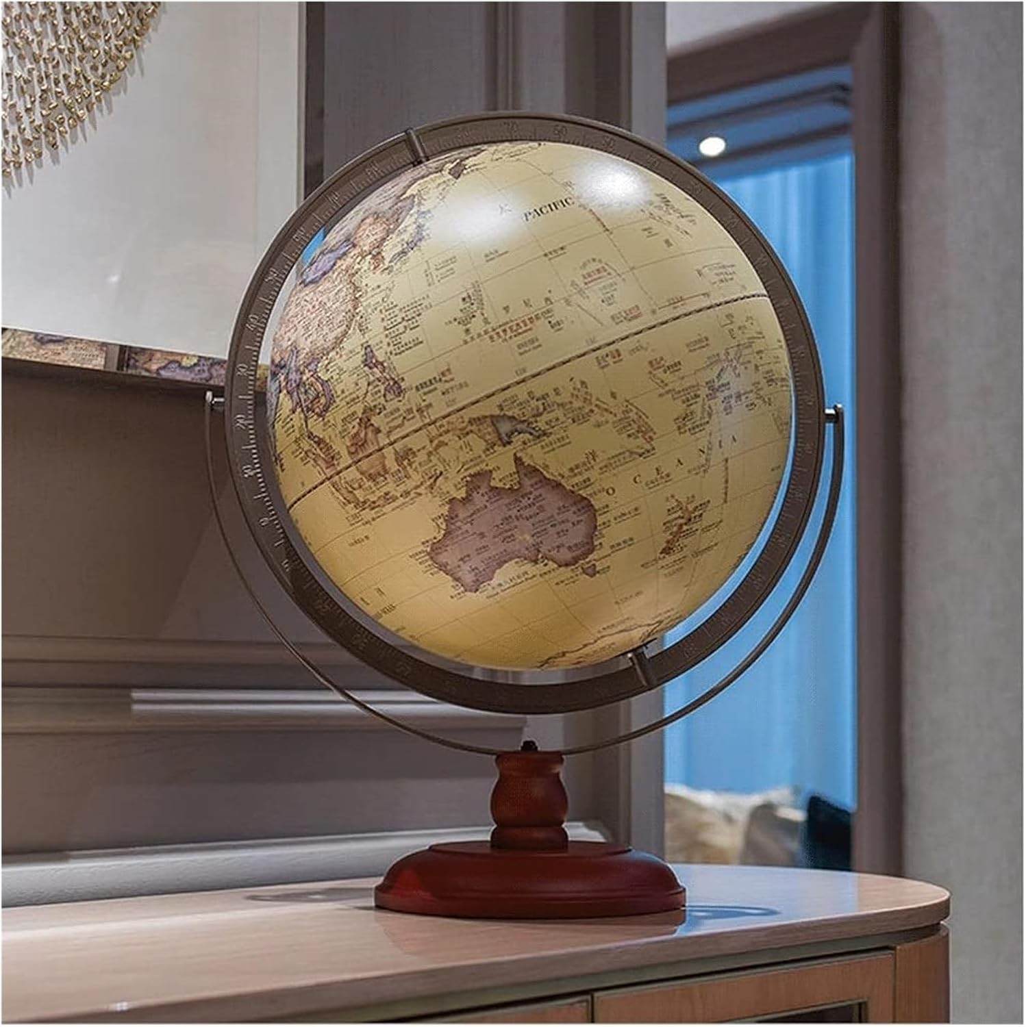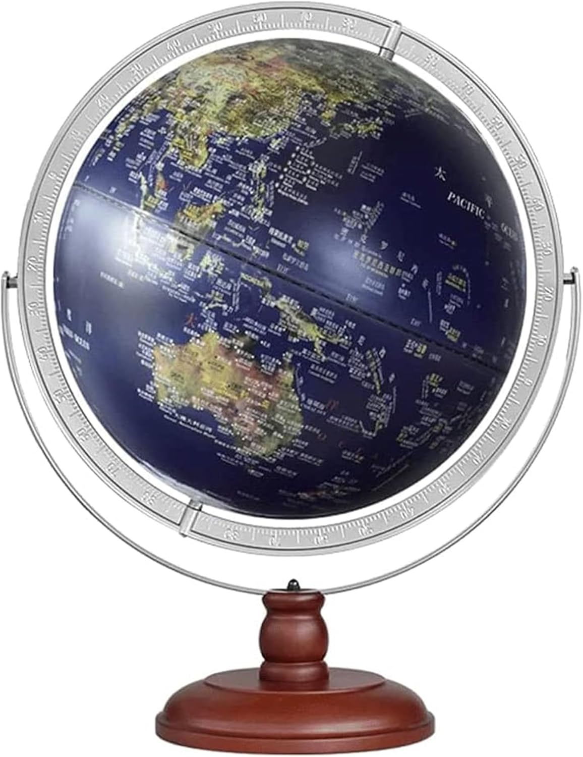 globi sono eccellenti strumenti educativi e il modo perfetto per ispirare l'apprendimento e l'esplorazione della geografia mondiale. I globi offrono un modo divertente per introdurre la geografia. Sono eccellenti strumenti di riferimento in classe. La superficie del nostro globo è appositamente trattata per consentire la scrittura, la marcatura, ecc., è impermeabile e può essere conservato a lungo, garantendo una maggiore durata. Materiale plastico ABS, colori brillanti, grafica intuitiva, scrittura chiara, superficie sferica liscia. Scala chiara: scala circolare completa, consistenza irregolare; design della base in MDF, sano e bello e generoso. Premere a lungo per regolare la luminosità; design della luce notturna, luce morbida e calda