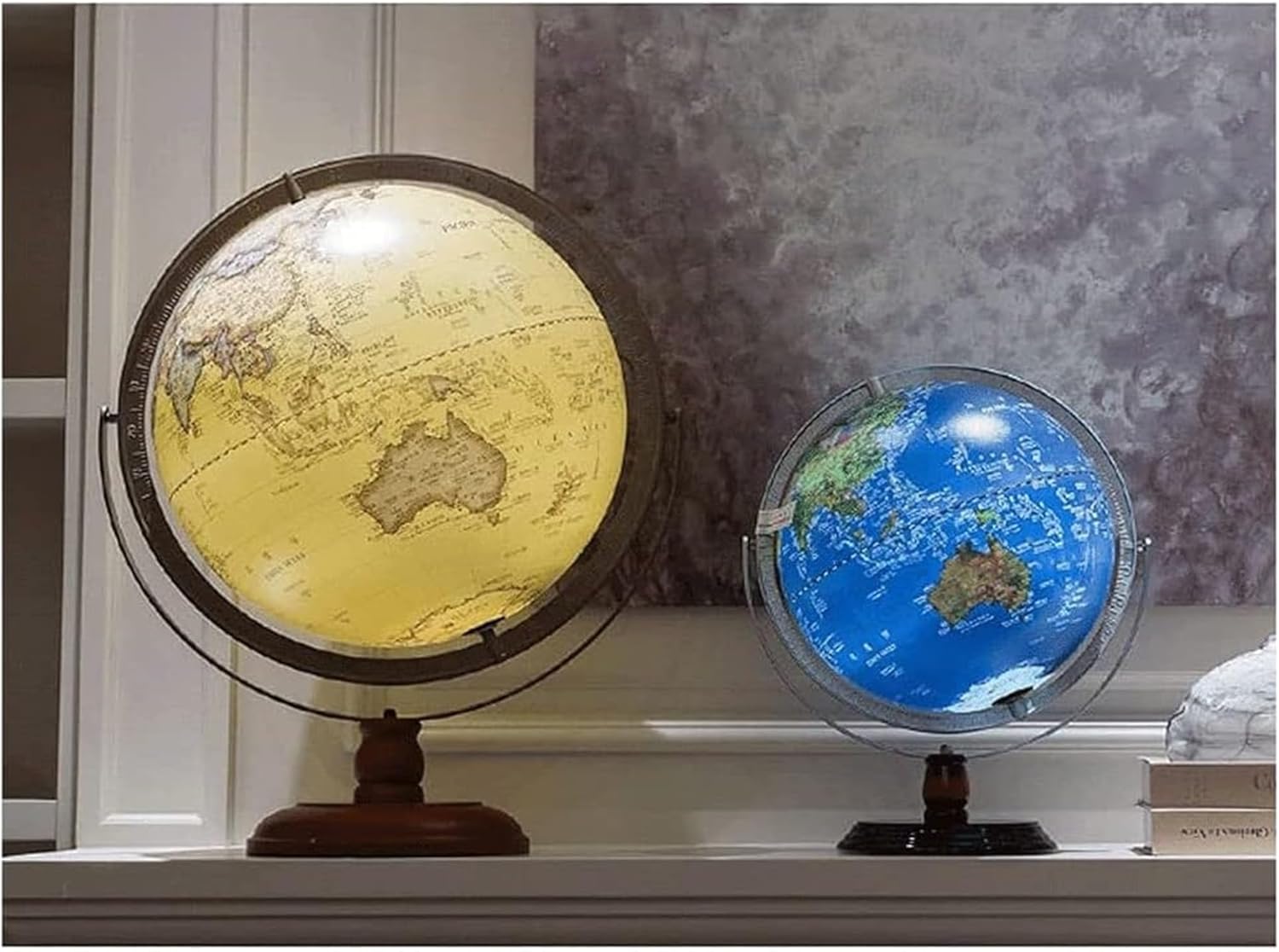 globi sono eccellenti strumenti educativi e il modo perfetto per ispirare l'apprendimento e l'esplorazione della geografia mondiale. I globi offrono un modo divertente per introdurre la geografia. Sono eccellenti strumenti di riferimento in classe. La superficie del nostro globo è appositamente trattata per consentire la scrittura, la marcatura, ecc., è impermeabile e può essere conservato a lungo, garantendo una maggiore durata. Materiale plastico ABS, colori brillanti, grafica intuitiva, scrittura chiara, superficie sferica liscia. Scala chiara: scala circolare completa, consistenza irregolare; design della base in MDF, sano e bello e generoso. Premere a lungo per regolare la luminosità; design della luce notturna, luce morbida e calda