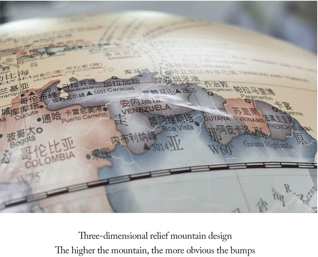 Globo standard avanzato: globo attuale, dettagliato e accurato. Stampa ad alta definizione, il testo è chiaro e di facile lettura. Considera sia l'aspetto che la funzione. Usa il nostro mappamondo per segnare dove sei stato o dove vuoi andare. Luce soffusa: con interruttore, interruttore tattile leggero, premere a lungo per regolare la luminosità; design della luce notturna, luce morbida e calda Design dettagliato: design tridimensionale della montagna in rilievo concavo-convesso, più alta è la montagna, più evidente è il concavo-convesso; il design internazionale dell'ora distingue il giorno e la notte. Globo decorativo: aggiungi un tocco di raffinatezza all'arredamento della tua casa o dell'ufficio. Questo mappamondo da 16,9 pollici con topografia oceanica e sottomarina risalterà nell'arredamento del tuo scaffale. Aggiungi questo mappamondo decorativo alla tua classe o ai tuoi materiali scolastici! INDISPENSABILE: i mappamondi belli e colorati rappresentano un'aggiunta meravigliosa all'arredamento della tua casa, della tua classe e dell'ufficio. Ottieni un'idea del mondo, dei continenti, dei paesi e delle città attraverso interazioni attentamente progettate.