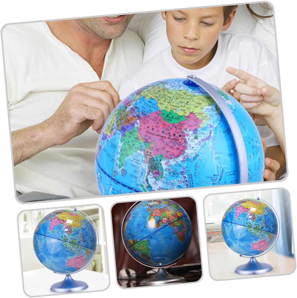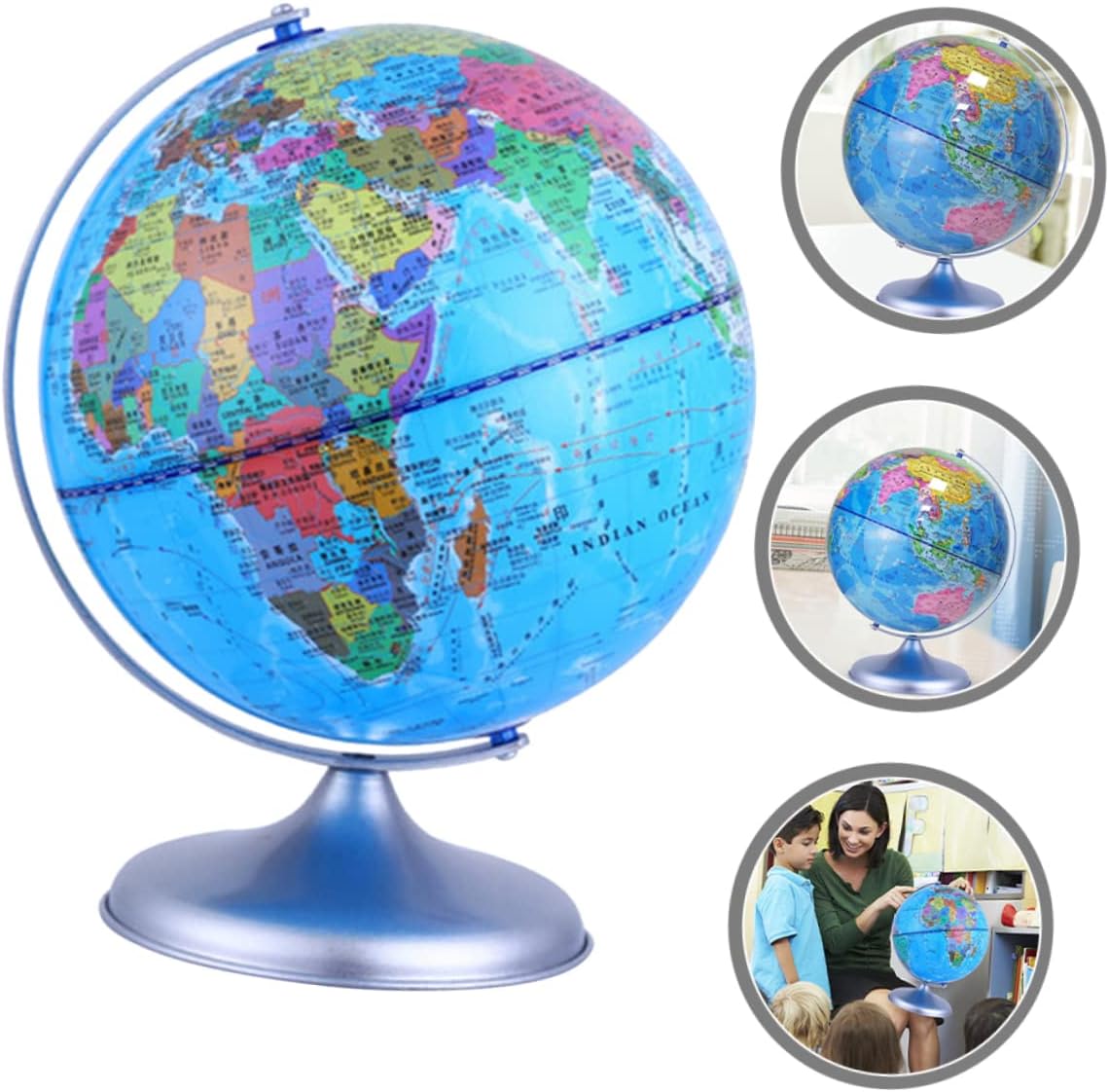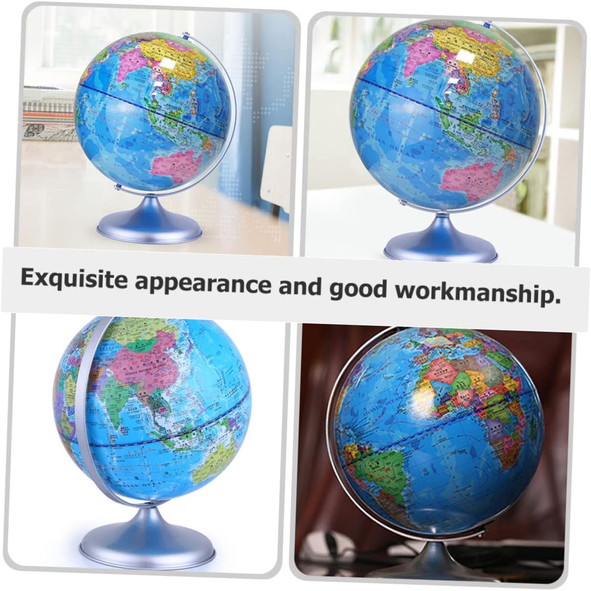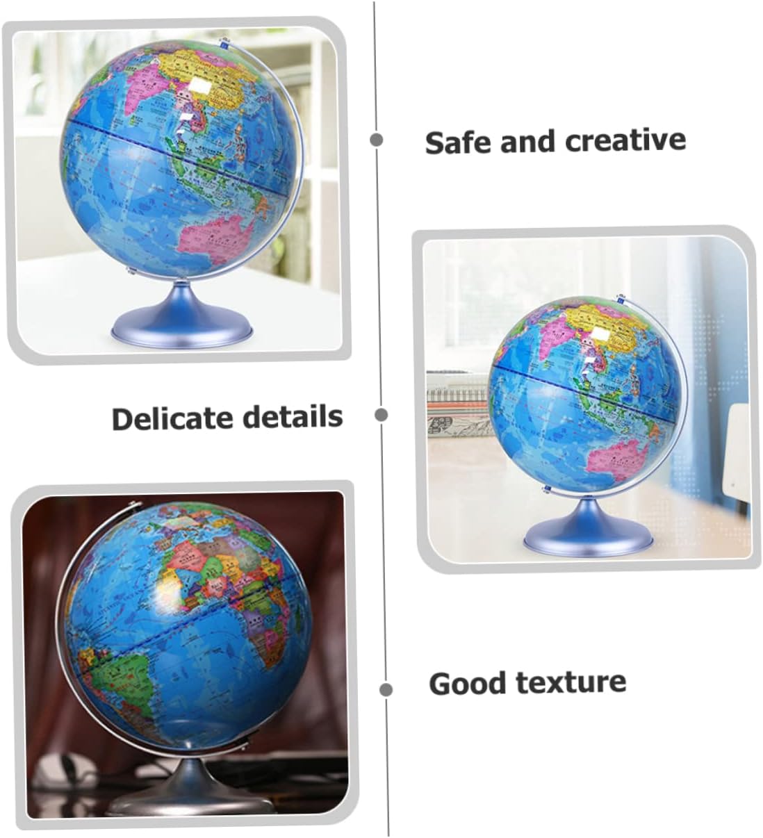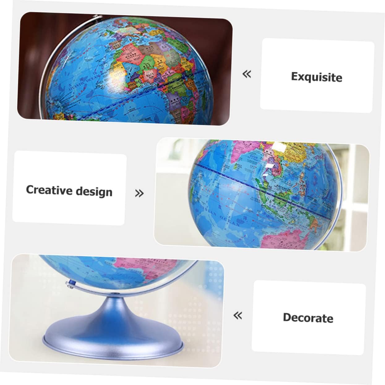 Decorazione del globo terrestre: ornamento squisito, ti porterà gioia e divertimento e creerà un'atmosfera , decorazione della scrivania Giocattolo mappamondo da scrivania: questo arredamento da scrivania è fatto di, che ha un arredamento terrestre Decorazione del globo rotante: la buona fattura lo rende decorativo e pratico, puoi usarlo con sicurezza, decorazione del globo rotante Mappamondo da scrivania: l'arredamento è dotato di una struttura stabile che non lo rende facile da ribaltare sulla scrivania, giocattoli educativi per bambini Globo terrestre-- con fondo piatto, può stare saldamente su una scrivania liscia, non c'è bisogno di preoccuparsi che cada, decorazione del globo educativo