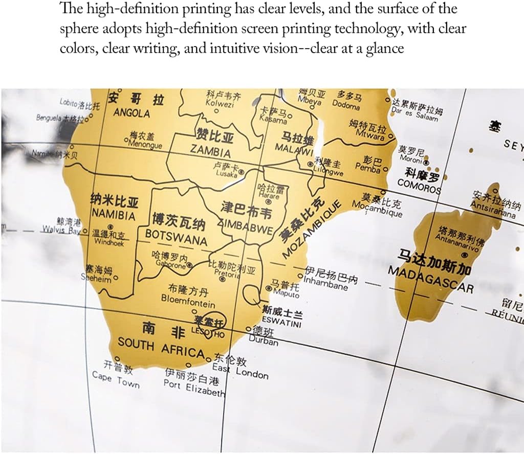 Mappamondo colorato: questo bellissimo e colorato mappamondo costituisce una meravigliosa aggiunta all'arredamento della tua casa, classe e sala giochi. Aiuta i tuoi figli a comprendere le idee del mondo, dei continenti, dei paesi e delle città con un globo interattivo ben progettato Stampa ad alta definizione, la superficie della sfera adotta un processo di serigrafia ad alta definizione, con livelli di colore chiari, scrittura chiara e visione intuitiva a colpo d'occhio. La sfera del globo è realizzata in materiale s (acrilico), che ha una buona permeabilità alla luce e stabilità chimica. La sfera di cristallo è resistente all'usura e impermeabile. La squisita fattura della perla equatoriale è cristallina e simile al cristallo, con un isolamento identificativo più chiaro; con un quadrante del tempo, la scala è chiaramente visibile e facile da identificare. Ruota di 360°, la superficie della sfera è liscia e morbida, la stampa sulla sfera è chiara, il contenuto è completo ed è facile da ricordare, permettendoti di esplorare ogni angolo del mondo in ogni momento. (Diametro: 20 cm/7,8 pollici)