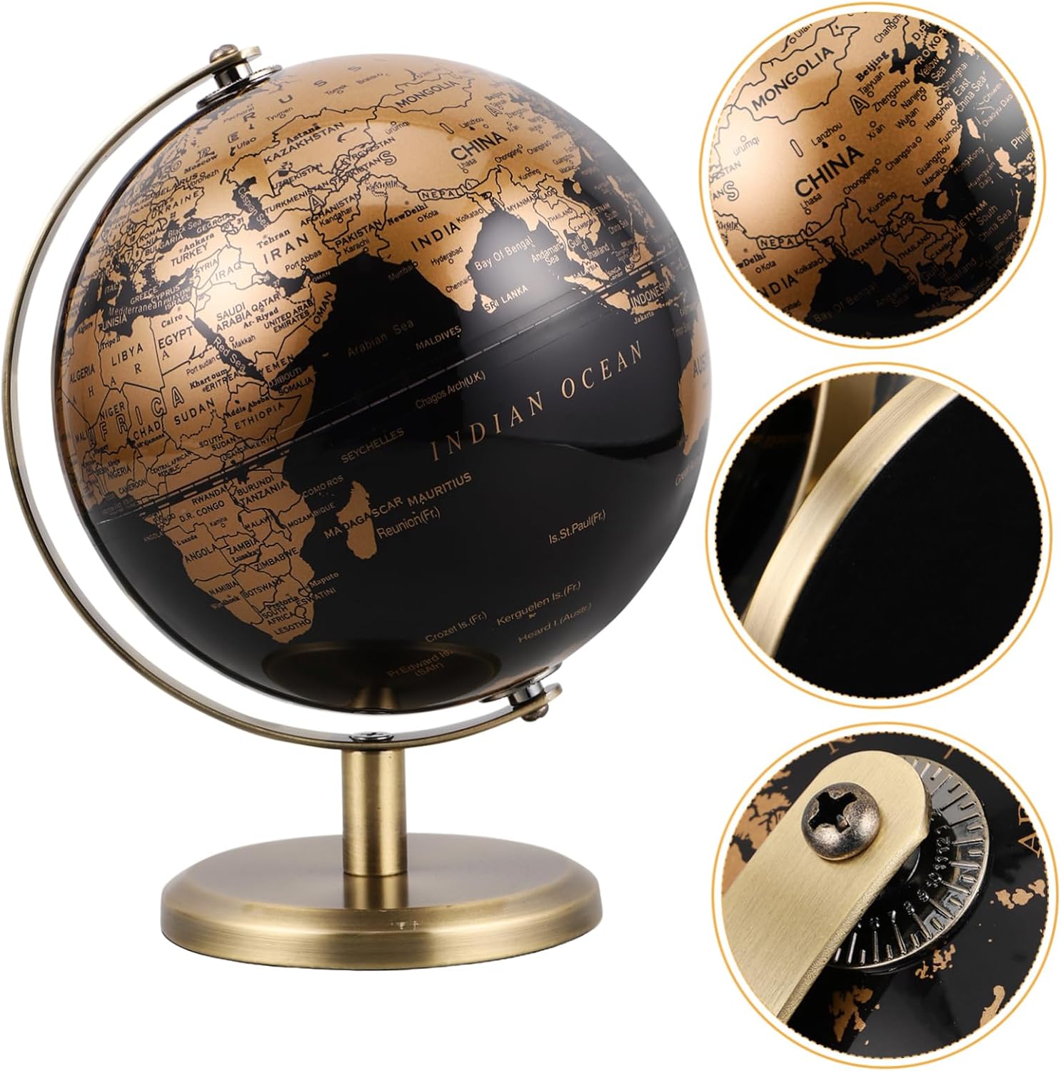 Tocco lussuoso: aggiungi un tocco europeo lussuoso alla tua casa o al tuo ufficio con questo globo dal design elegante, ideale per valorizzare l'arredamento di qualsiasi spazio, globo terrestre da scrivania, globo terrestre decorativo Multifunzionale: adatto per l'uso domestico che per quello in ufficio, questo globo è una decorazione versatile che si adatta perfettamente a vari design d'interni, globo decorativo a forma di palla, globo decorativo antico Pezzo d'arredo unico: il design intricato e la lavorazione artigianale di questo globo lo rendono un pezzo eccezionale che mette in mostra il tuo gusto e stile raffinati, globo da scrivania decorativo, globo da scrivania vintage Raffinata: questo globo di in stile europeo aggiunge un tocco raffinato a qualsiasi casa o ufficio, migliorando l'atmosfera generale con il suo design sofisticato, decorazione a forma di globo terrestre rotondo, ornamento del globo terrestre Bassa manutenzione: la superficie liscia del globo è facile da pulire, garantendo che rimanga un'aggiunta incontaminata e attraente al tuo arredamento per gli anni a venire, ornamento da tavolo e scrivania, decorazione rotonda della