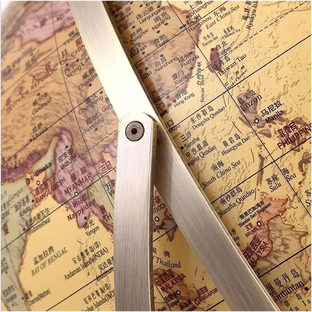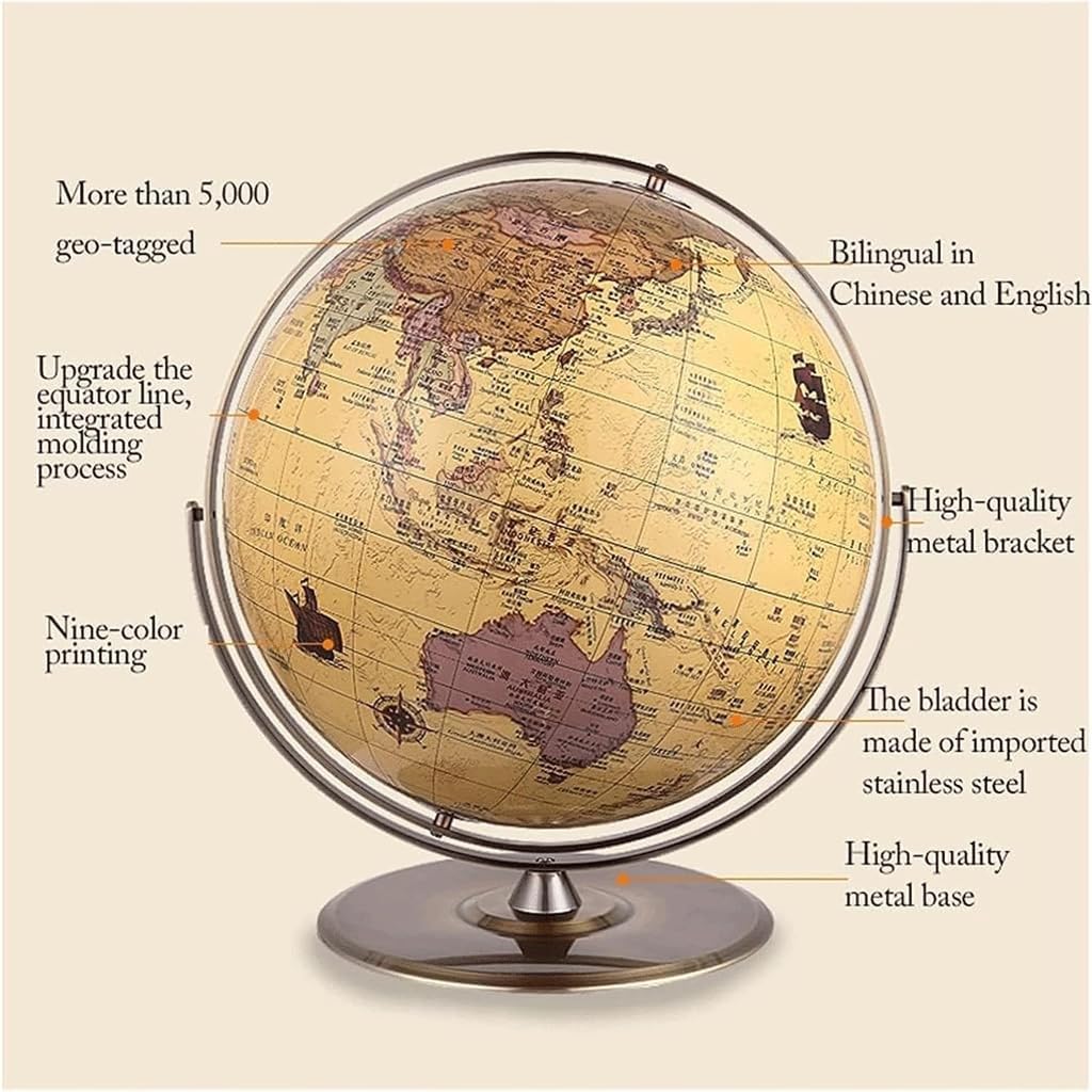 1: I globi da tavolo aggiungono un'aria senza tempo di raffinatezza e curiosità intellettuale a qualsiasi arredamento della casa o dell'ufficio. 2: metallo acciaio inossidabile; materiale del telaio a sfera: telaio a sfera bimetallico, materiale di base: metallo; metodo di rotazione: mano. 3: Vengono selezionate sfere cave in acciaio inossidabile di alta qualità, che non si deformeranno dopo un uso a lungo termine, la base in metallo è bella e stabile. 4: Staffa in metallo, fissata con viti, non facile da staccare, Visiera antica e base in metallo di alta qualità aggiungono classe a qualsiasi stanza. 5: Etichettatura con legenda, etichettatura accurata di vari indicatori e ricco contenuto di conoscenze, Confini chiari, facili da ricordare.