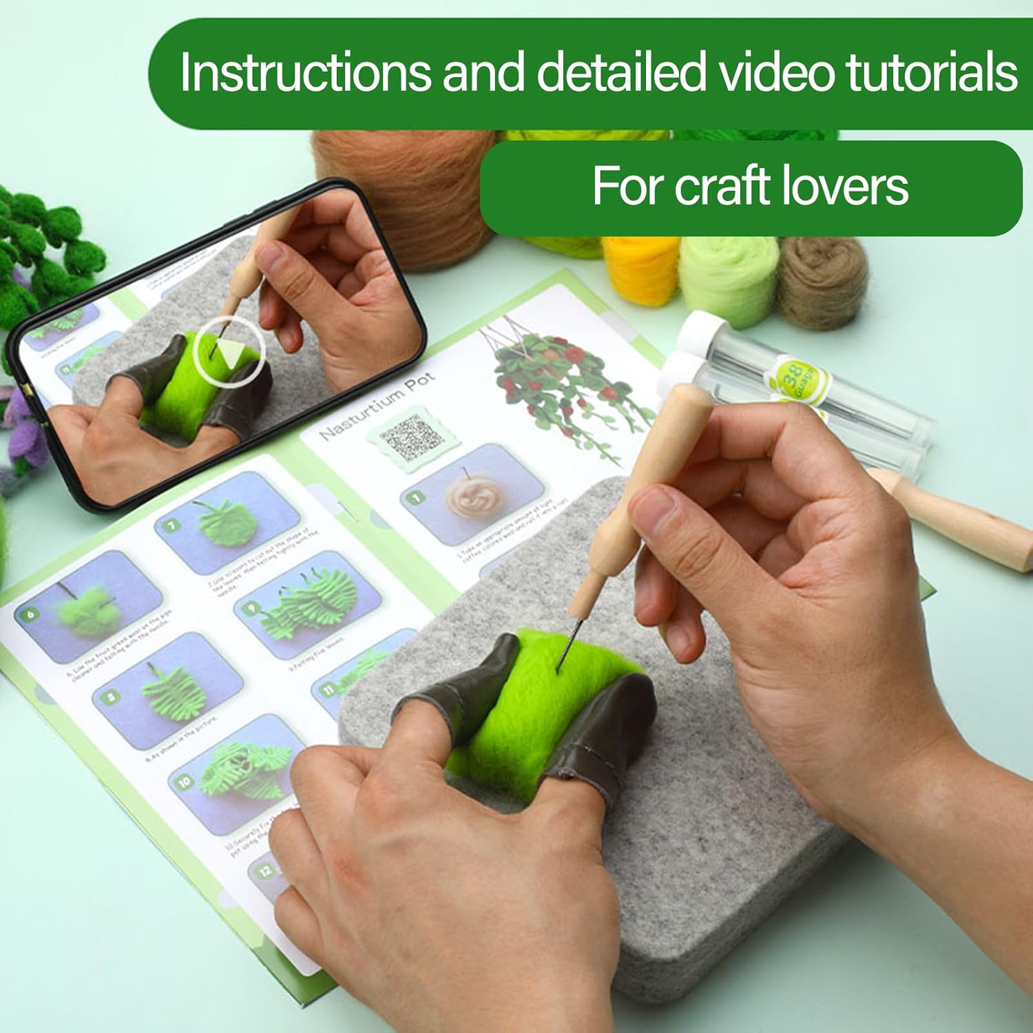 Molto adatto per gli appassionati di artigianato, attività genitoriali per genitori, principianti e adulti che cercano sollievo dallo stress, queste forniture Neddle Felting che appendono piante in vaso in lana per diversi utenti per esplorare il loro lato creativo. Ideale per giocattoli in feltro, decorazioni per la casa, espositori per ufficio, regali di festival o come parte del progetto Craft Workshop, questa creazione di feltro di lana aggiunge un tocco di fascino artigianale a qualsiasi ambiente. Questo set di feltro realizzato in lana con ago per piante da appendere offre una consistenza morbida che è facile da modellare e garantisce che la vostra creazione sia bella e sicura. Le istruzioni passo passo sono semplici e facili da seguire per guidarvi con le immagini. Create senza sforzo con la nostra fornitura di piante sospese in feltro e sono dotate di diversi colori di lana per roving, ago per il riempimento e un altro strumento per creare piacevoli esperienze artigianali. Scatena la tua creatività con questo set di lana felting per ispirare e offrire un viaggio di artigianato gratificante. Sarà un'ottima aggiunta alla tua collezione di accessori per hobby.