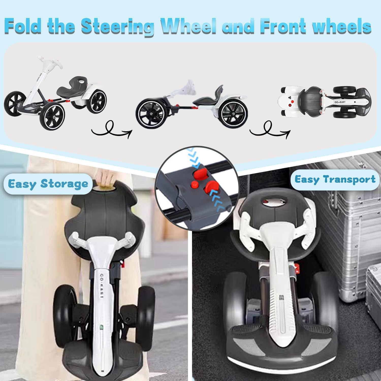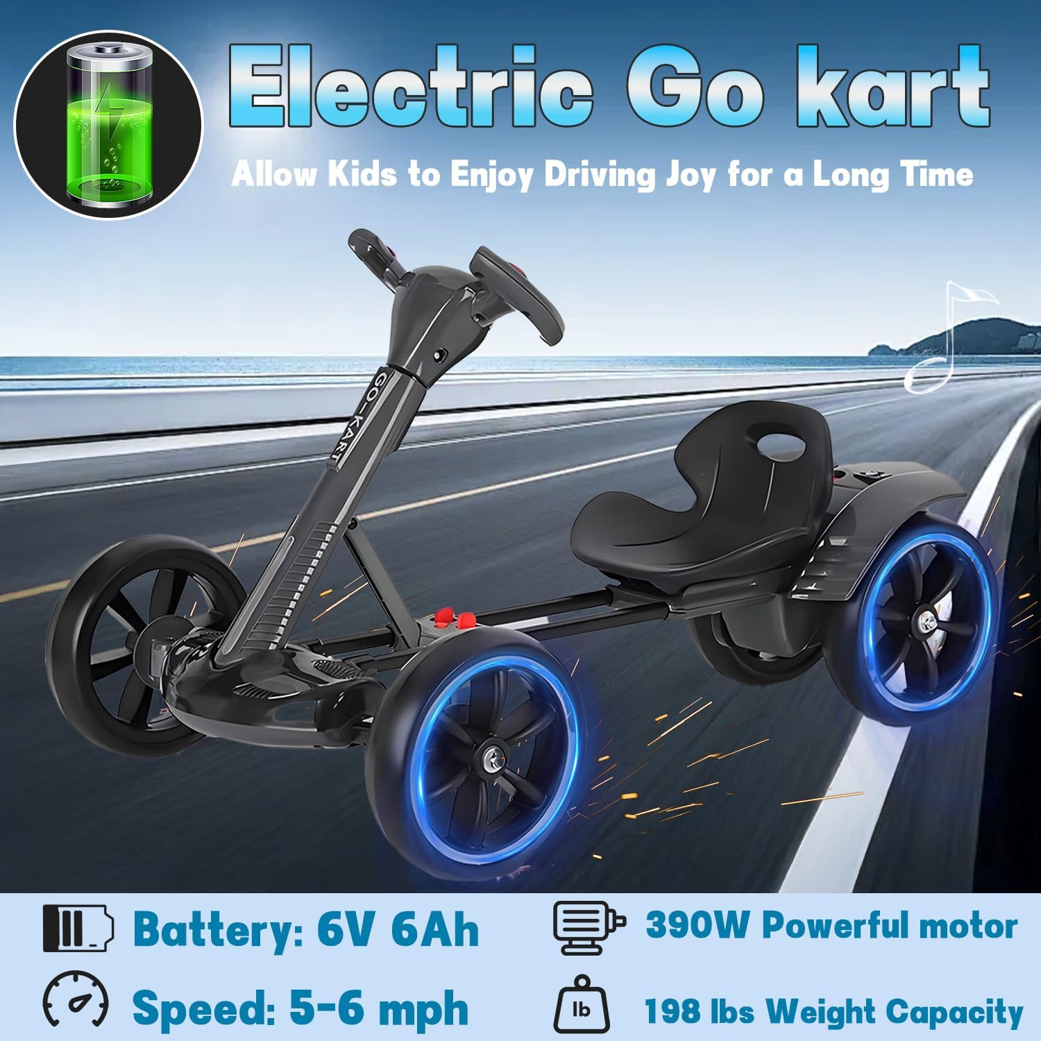 DESIGN UNICO: il go-kart elettrico è dotato di un pulsante di avvio one-touch con attraenti luci a LED, altoparlanti e musica per un migliore divertimento di guida per i bambini. Tenendo conto delle diverse altezze e forme di ogni bambino, i nostri seggiolini possono essere regolati per garantire che ogni bambino possa trovare la posizione di guida più comoda. POTENZA POTENTE: Il go-kart elettrico è dotato di un potente motore da 390 W, (6 V fino a 5 mph) (12 V fino a 8 mph), che consente emozionanti manovre di derapata su superfici lisce, permettendoti di provare un brivido adrenalinico. SICUREZZA E STABILITÀ: Il go-kart è dotato di un telaio ad alta resistenza con una capacità di peso massima di 198 libbre e quattro ruote resistenti all'usura adatte per la guida su una varietà di superfici come asfalto, erba, muratura e altro ancora. Inoltre, il nostro go-kart elettrico pieghevole è dotato di una modalità di retromarcia per rendere la guida più divertente. DESIGN PIEGHEVOLE: Il kart per bambini adotta un comodo design pieghevole. Il kart si apre rapidamente sollevando il manubrio. L'esclusivo design dell'impugnatura rende il kart più flessibile e stabile in curva. Inoltre, si piega rapidamente, è compatto e facile da riporre. Dimensioni piegato: 33,8 x 10,2 pollici. SCELTA MIGLIORE - FACILE INSTALLAZIONE: questo innovativo go kart giocattolo cavalcabile è molto popolare tra i ragazzi e le ragazze dai 3 ai 12 anni ed è un regalo perfetto per i bambini. Con l'installazione senza attrezzi, è possibile completare rapidamente l'installazione del go kart elettrico.