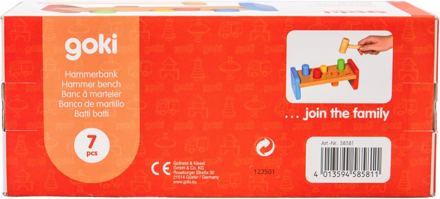 Panca Hammer, Goki Basic. Legno Luminoso e colorato Molto divertente Robusto
