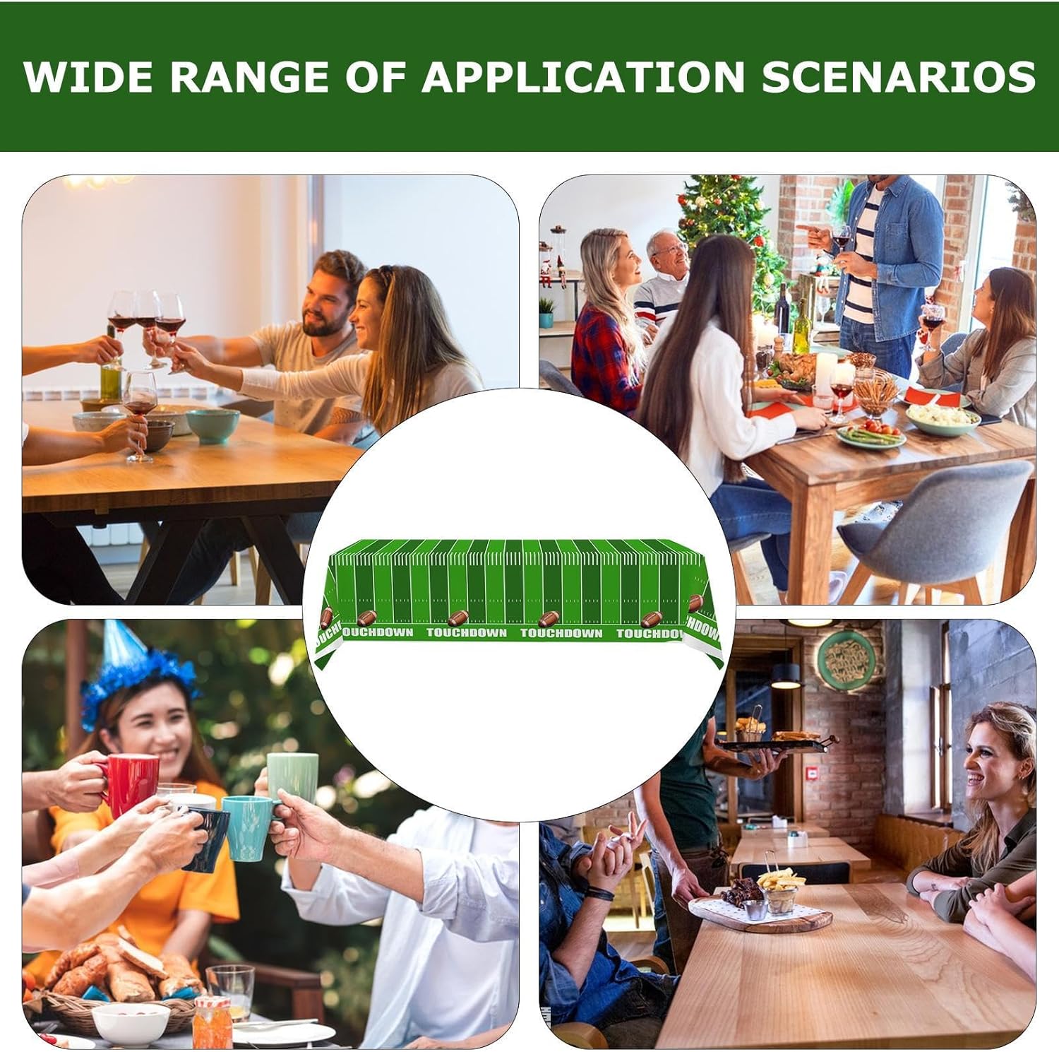 ♨Atmosfera perfetta per la festa: porta la frenesia del calcio alla tua festa con la nostra tovaglia da calcio che combina distanza e grafica. Ispirato ai campi da rugby, questo design pronto per il gioco aumenterà sicuramente l'entusiasmo dei tuoi ospiti. ♨Protezione delle superfici: Proteggi il tuo tavolo con questa tovaglia da calcio che difende da schizzi e graffi. Non preoccuparti mai più delle macchie di latte, succo, soda e cucchiai dei danni causati da pastelli, pennarelli e colla. ♨Comoda pulizia: la nostra tovaglia da calcio è progettata per ridurre al minimo la pulizia post-festa. Buttalo via dopo l'uso e risparmia tempo ed energia. La pulizia rapida e semplice è ora a portata di mano. ♨Dimensioni perfette della tovaglia: con una dimensione della copertura del tavolo di 137x274 cm/53,94x107,87 pollici, questa tovaglia da calcio è fatta su misura per adattarsi alla maggior parte dei tavoli rettangolari, garantendo una vestibilità elegante e aderente per uso interno esterno. ♨Versatile ed elegante: questa tovaglia da calcio è adatta per casa, feste, hotel, ristoranti e qualsiasi occasione in bar, cucina ristorante. È un complemento perfetto per le partite di rugby e aggiunge una decorazione vintage alla tua tavola.