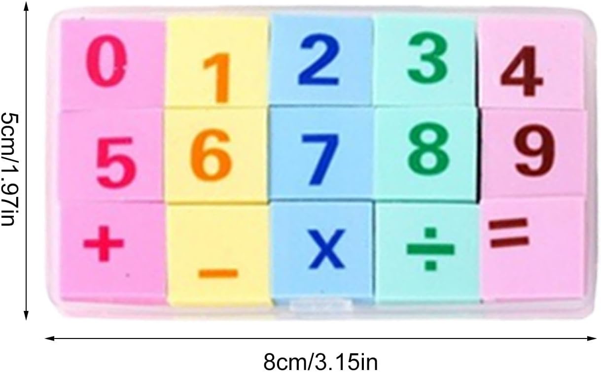 Impara giocando: progettate con numeri e simboli di utilizzo, queste gomme aiutano i bambini a imparare addizioni, sottrazioni, moltiplicazioni e divisioni, sviluppando l'interesse per la matematica mentre giocano Design di modelli digitali: queste gomme per piccoli numeri offrono un divertimento educativo migliorato con una miscela unica di modelli digitali e a blocchi, oltre a un design di simboli matematici per stimolare le giovani menti Comodità in scatola: il design in scatola facile da riporre ti consente di tenerli in un luogo sicuro e la struttura leggera li rende facili da trasportare. Trovali e usali con facilità ovunque tu vada Forte efficacia dei materiali: costruite con gomma , queste piccole gomme offrono prestazioni stabili. Il loro design resistente all'usura garantisce una lunga durata, garantendo che non si rompano facilmente Pulizia efficiente: gomma da matita in gomma con facile pulizia e colori brillanti, le gomme con numeri piccoli non lasciano segni e assicurano un processo di pulizia senza problemi