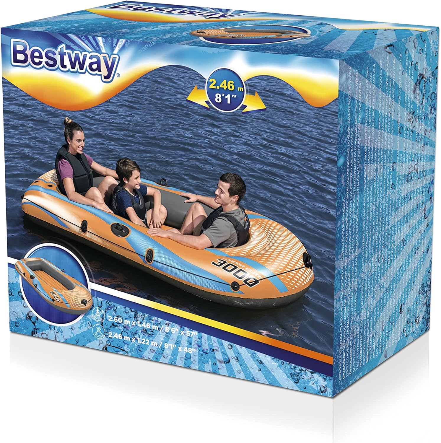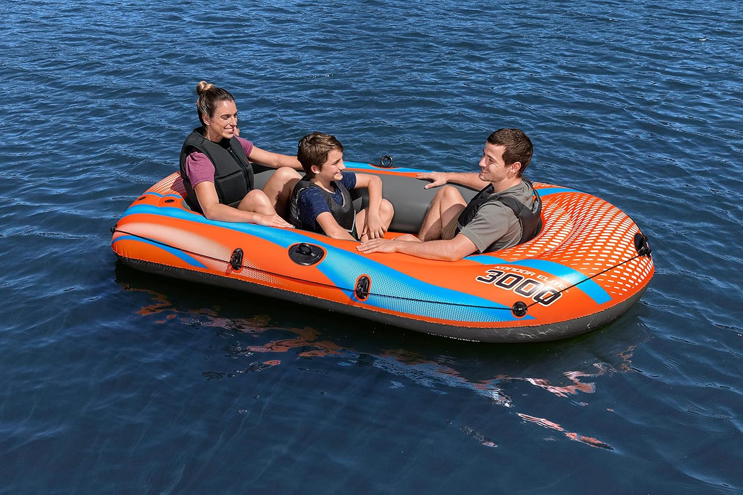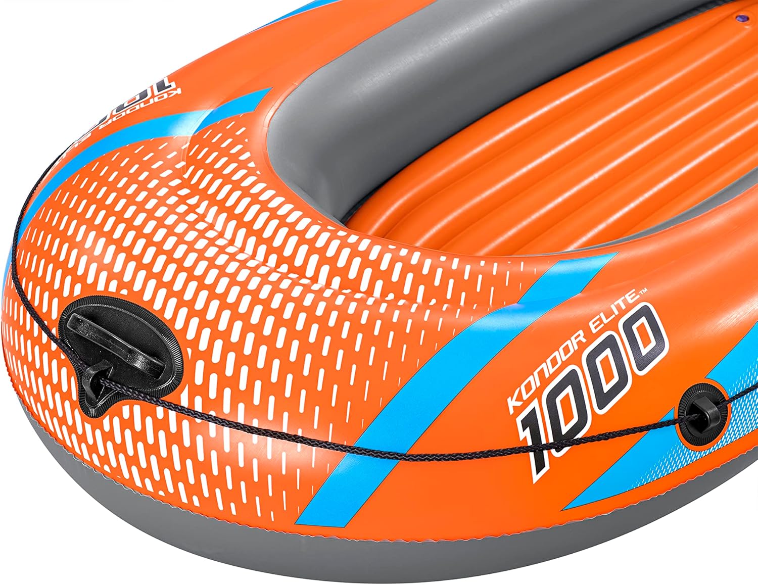 Adatto per 2 adulti e 1 bambino con una capacità di carico totale di 200 kg Pavimento gonfiabile per un maggiore comfort Robusti scalmi per mantenere i remi (non inclusi) saldamente in posizione Robusta maniglia per trasportare la barca dentro e fuori dall'acqua Sagola di sicurezza a 360° con occhielli integrati