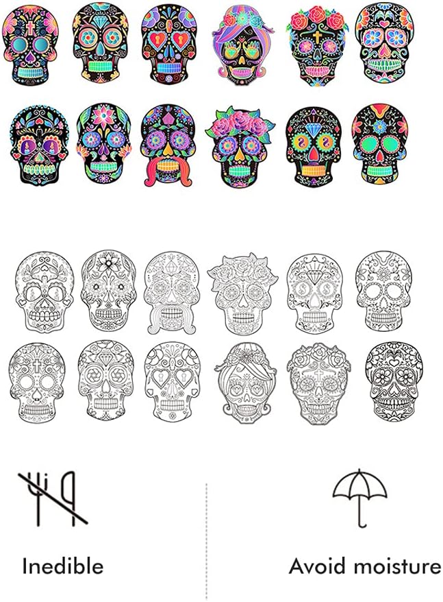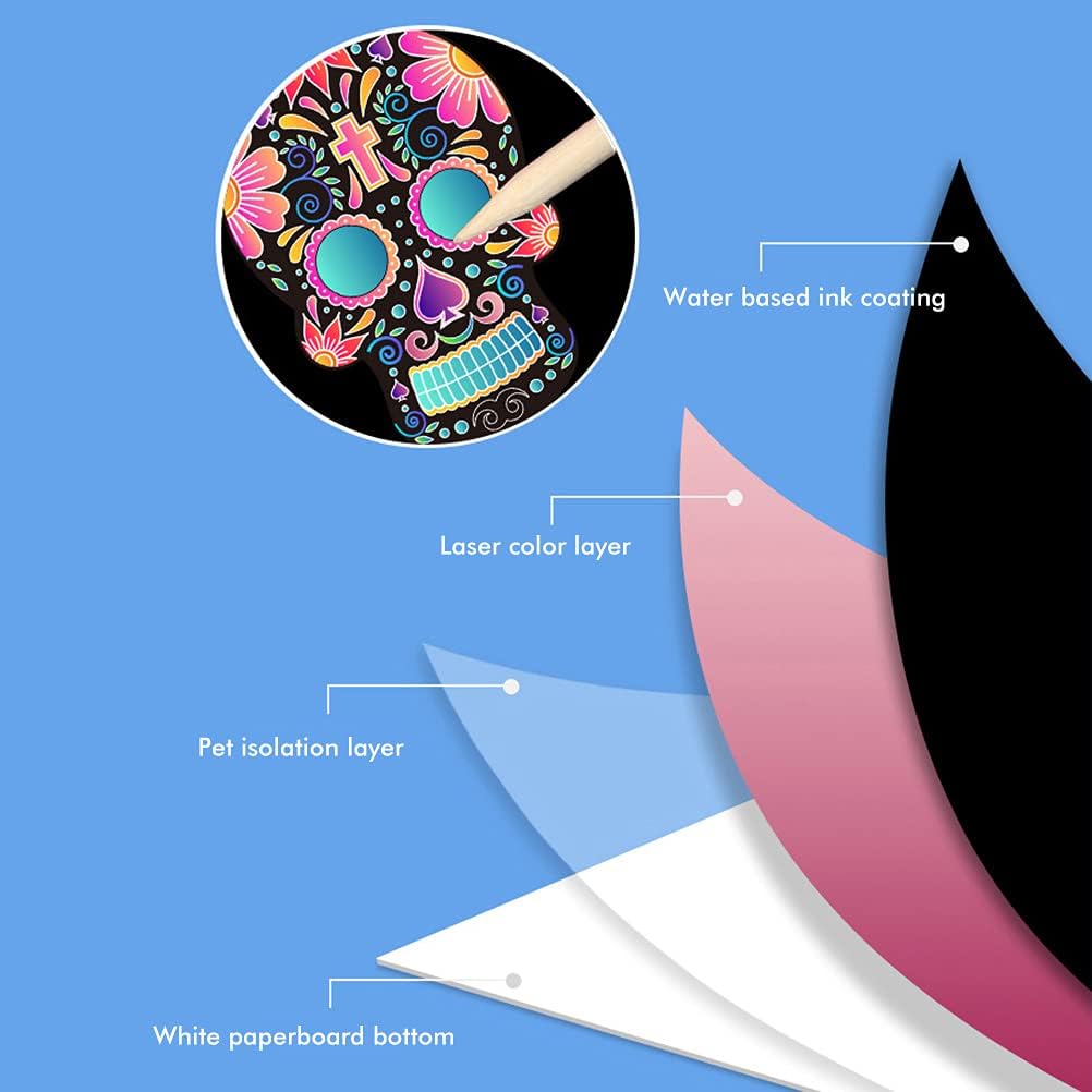 [Strumento di apprendimento artistico] Accendi l'immaginazione di tuo figlio con questo kit artistico educativo che combina la creatività con l'apprendimento. La misteriosa superficie di graffio stimola la curiosità mentre i motivi colorati rivelati insegnano il riconoscimento del colore. per lo sviluppo di abilità artistiche di coordinazione oculare manuale e pensiero creativo nelle giovani menti. [Divertimento creativo a doppia faccia] Il nostro kit artistico di carta scratch di Halloween offre il doppio del divertimento con due superfici di disegno uniche. Un lato presenta strato di graffio che rivela vibranti colori arcobaleno sotto mentre l'altro lato ha intricati motivi di in bianco e per colorare con pennarelli. Lo stilo di legno incluso consente ai bambini di scoprire progetti magici mentre sviluppano sottili abilità motorie e espressione artistica attraverso questa attività [Materiali sicuri per bambini] Realizzato con cartone bianco spesso premium La nostra carta gratta art è resistente e resistente alla lacrime. I materiali non tossici garantiscono un uso sicuro per i bambini dai 3 anni in su. Ogni strumento di graffio in legno è liscio senza intoppi senza bordi affilati che forniscono una presa comoda per le mani piccole da creare senza preoccupazioni. [ per le vacanze festive] Questo set di graffi a tema Halloween fa un eccellente per i bambini che amano arti e mestieri. Lo scheletro disegna cattura lo spirito spettrale di Halloween fornendo ore di intrattenimento creativo. Ottimo per i regali di compleanno Goodie Borse o come una speciale sorpresa per incoraggiare l'espressione artistica durante la stagione di Halloween. [ Halloween Decoration] Each skeleton shaped scratch card comes with colorful hanging strings to display your child's artwork around the home. Trasforma questi pezzi creativi in decorazioni di Halloween inquietanti ma affascinanti per pareti o porte di finestre. Ideale per i progetti in classe attività per feste o decorazioni per la casa festive durante la stagione di Halloween.