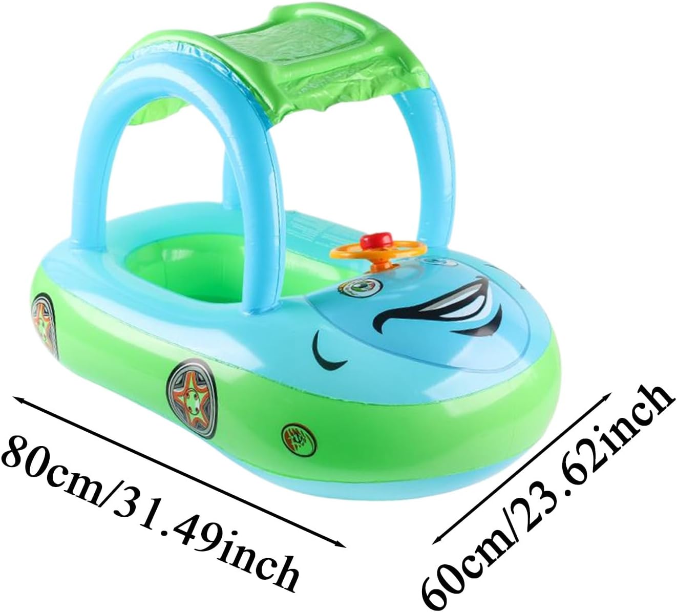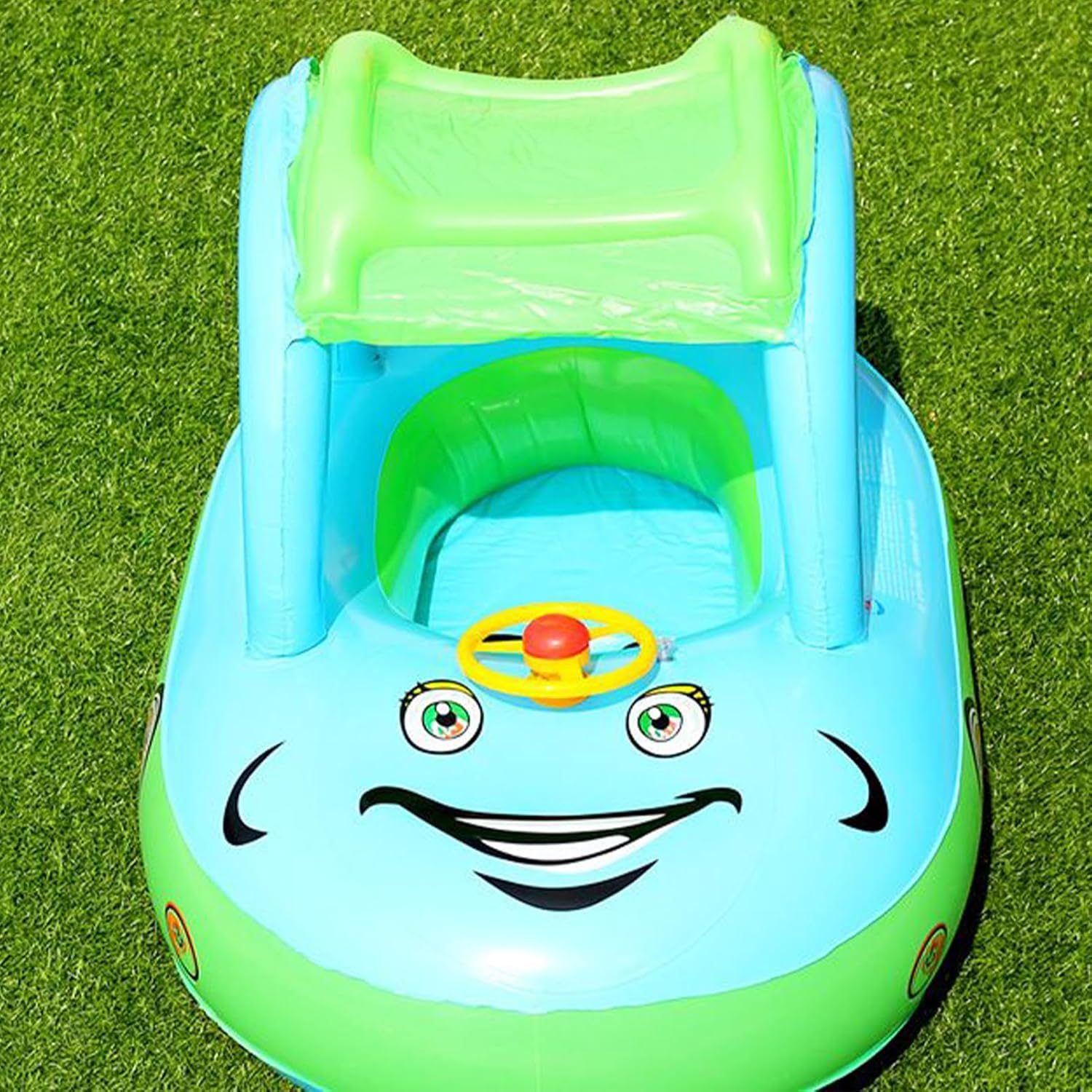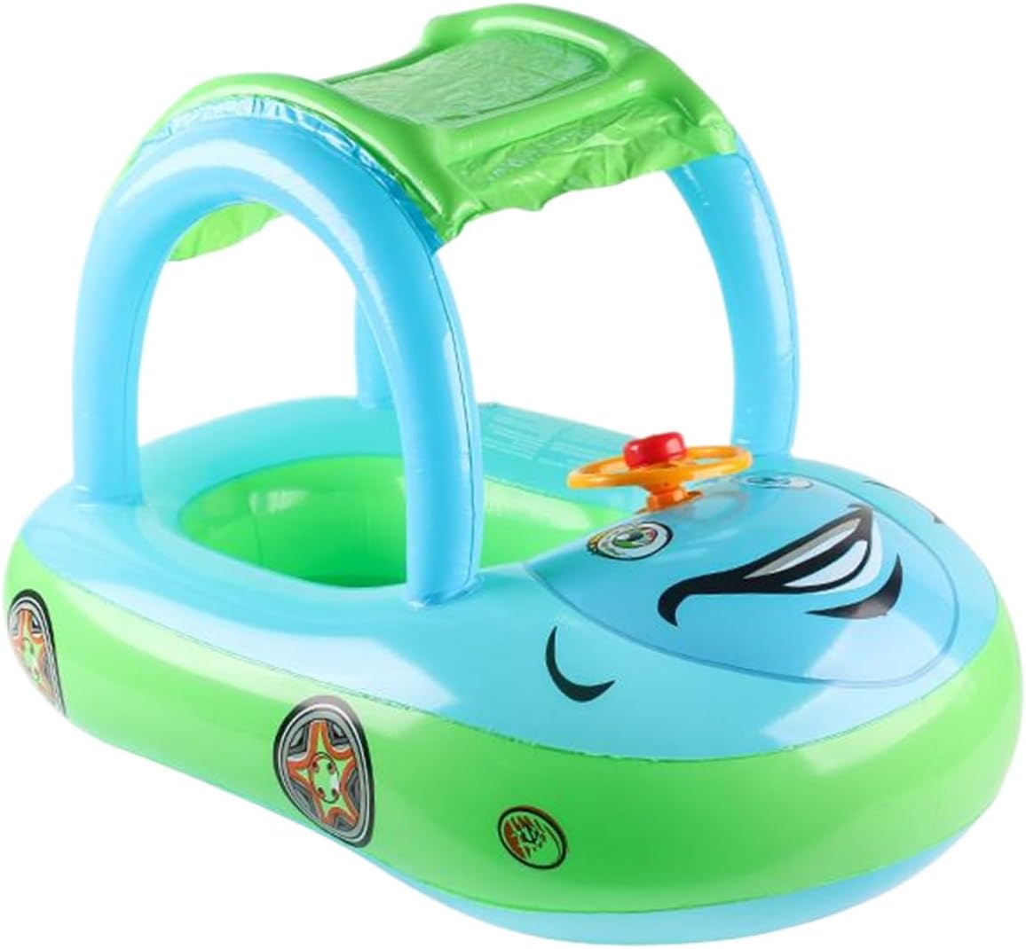 Comfort antiscivolo: superfici antiscivolo di alta qualità su seduta e maniglie, combinate con cuscino d'aria multi-camera e cintura di sicurezza per la massima tenuta in acqua Stimola le capacità motorie: la speciale forma autobarca stimola giochi fantasiosi e allena i movimenti, combinato con interattivo per un'esperienza coinvolgente di gioco in acqua Salvaspazio – Design pieghevole con sacchetto integrato e valvola di sfiato usa e getta – semplifica lo sfiato e il trasporto per rilassanti gite in famiglia Regolazione del clima: doppia capottina regolabile con materiale mesh traspirante che garantisce un comfort fresco in caso di intenso sole. Efficace protezione UV per un uso esterno sicuro dell'aiuto per il nuoto del bambino. Multiuso: con pratico anello di traino per una guida sicura da parte dei genitori, perfetto per piscine, spiagge e parchi acquatici. Permette di spruzzare in modo flessibile e sicuro in diversi corpi idrici.