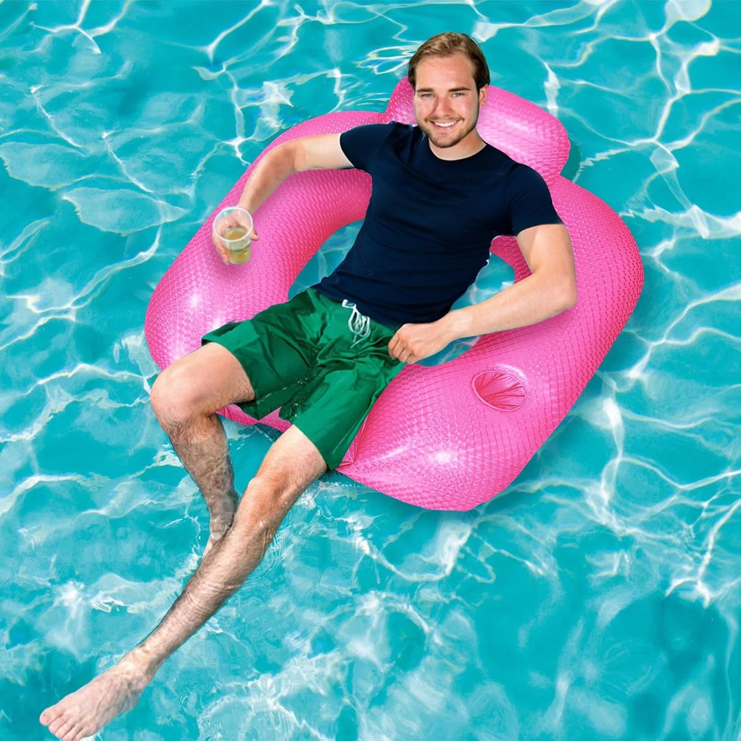 Affidabile lettino ad acqua: progettato con PVC ispessito per una maggiore durata, questo galleggiante offre una capacità di carico costante e resistente alla deformazione e affidabile per tutte le tue avventure acquatiche Design ergonomico galleggiante: progettato con un layout ergonomico che fornisce un eccellente supporto per il corpo insieme a comodi braccioli e schienale reclinato, migliora le esperienze di rilassamento dell'acqua per tutte le età in qualsiasi ambiente piscina Sistema di sgonfiaggio rapido: progettato per la portabilità e il risparmio di spazio, questo galleggiante si piega senza sforzo e supporta l'installazione rapida, fornendo un uso senza soluzione di continuità durante i viaggi o rilassarsi a bordo piscina Divertimento acquatico completo: ideale per vacanze e divertimento in piscina, questo galleggiante è adatto per il divertimento in famiglia in piscine, spiagge o laghi, fornendo ampie applicazioni per il relax e le attività ricreative Il tempo libero incontra la praticità: questo galleggiante è realizzato per combinare il tempo libero e il divertimento con una migliore comodità dell'utente, dotato di un portabicchieri integrato che lo rende il compagno d'acqua adatto durante rilassanti giornate in piscina