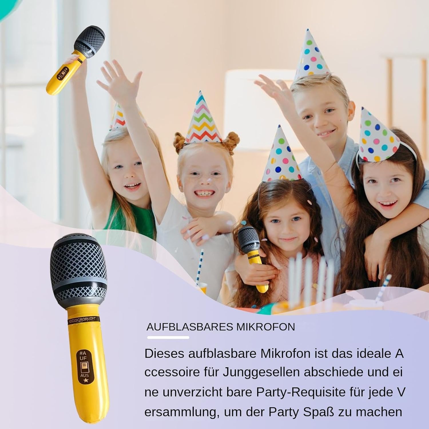 PVC durevole: i diversi colori che soffiano i microfoni giocattolo Grande unità di raccolta: porta vivacità e intrattenimento alle riunioni di addio al nubilato e crea un'atmosfera vivace e piacevole con questi diversi colori microfono gonfiabile Intrattenimento per tutti: mantieni intrattenimento e risate per riunioni per bambini e celebrazioni per adulti e offri più divertimento agli ospiti di tutte le età con questo microfono gonfiabile Multiuso in uso: usa l'energia durante le riunioni in piscina, ai compleanni e agli eventi familiari con questo microfono gonfiabile versatile per garantire il momento memorabile e divertente Configurazione comoda: un design leggero, facile da gonfiare e riporre senza sforzo, ottimo per l'uso all'aperto con microfono gonfiabile per bambini adulti ovunque tu sia