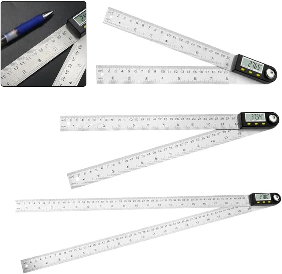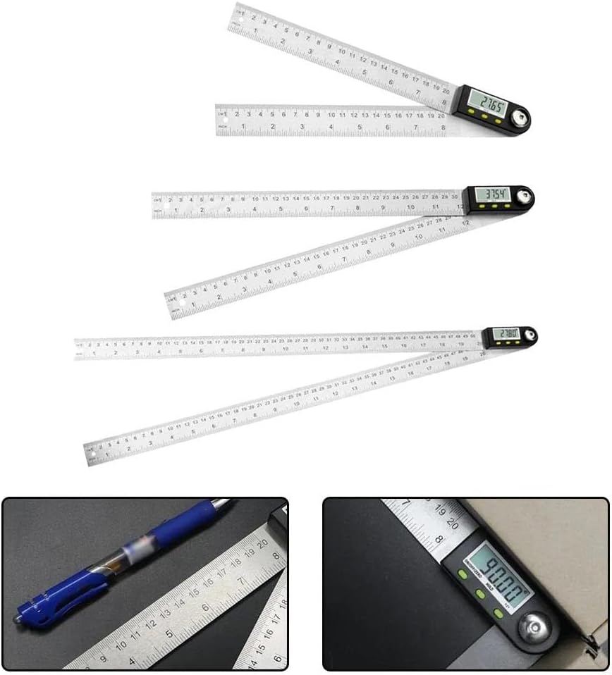 Display digitale elettronico: sperimenta misurazioni precise dell'angolo con il nostro schermo LCD ad alta definizione che fornisce letture chiare e instant da 0° a 360°. L'ampio display digitale offre una visibilità eccezionale in varie condizioni di illuminazione, consentendo di lavorare in modo efficiente senza affaticare gli occhi. Misurazione versatile dell'angolo: questo goniometro digitale di livello professionale presenta una struttura a doppio materiale adatto per molteplici applicazioni in progetti di lavorazione del legno, metallo, edilizia e fai da te. Misura qualsiasi angolo con risoluzione di 0,05° e precisione ±0,3° per risultati di qualità professionale. Comodo meccanismo di bloccaggio: la struttura della manopola di bloccaggio progettata con cura consente di fissare qualsiasi angolo esattamente dove ne hai bisogno, mantenendo la misurazione durante il trasferimento o la marcatura. Questa funzionalità vivavoce aumenta l'efficienza del flusso di lavoro e la coerenza delle misurazioni. Doppio sistema di misurazione: dotato di bilance metriche e imperiali (disponibili nelle opzioni da 200 mm/300 mm/500 mm), questo cercatore angolare soddisfa tutte le tue preferenze di misurazione. Il doppio sistema completo elimina la necessità di calcoli di conversione, risparmiando tempo prezioso per il progetto. Costruzione premium: realizzato in acciaio inossidabile di alta qualità per prestazioni di lunga durata in ambienti di officina. La struttura robusta resiste all'uso regolare mantenendo la precisione, operando in modo affidabile a temperature da 0°C a 40°C e livelli di umidità fino all'80% per prestazioni costanti in varie condizioni di lavoro.