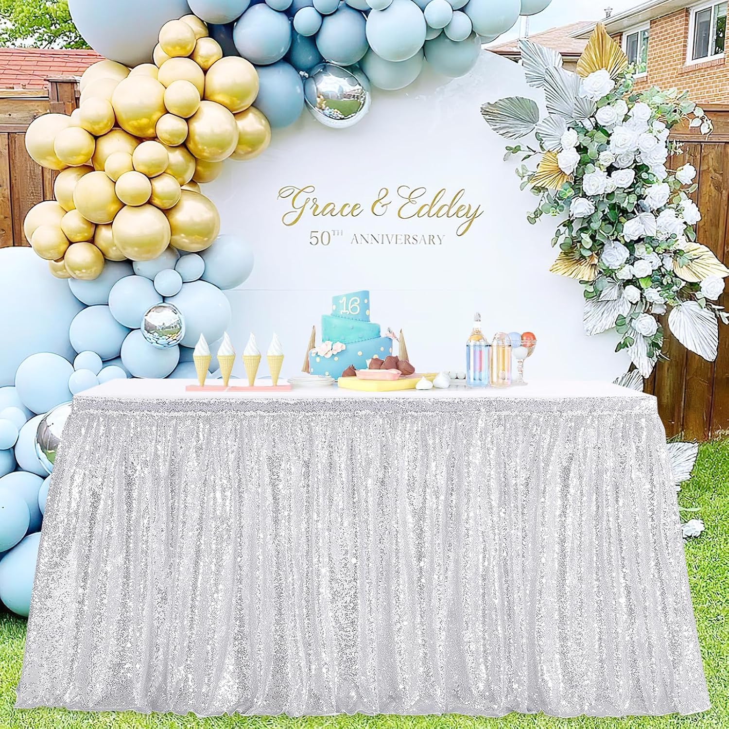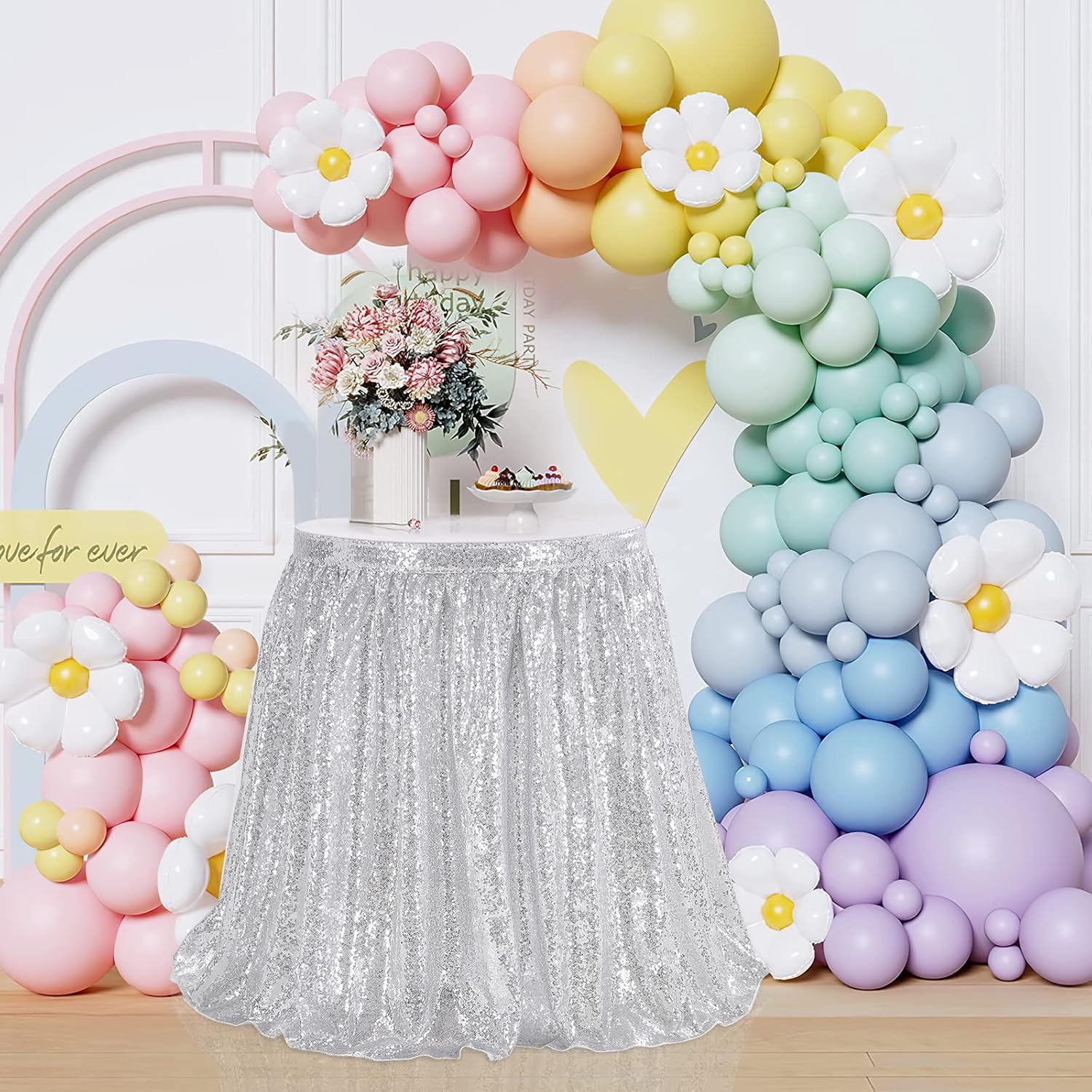 | Numéro de modèle | 6ft silver sequin table skirt |