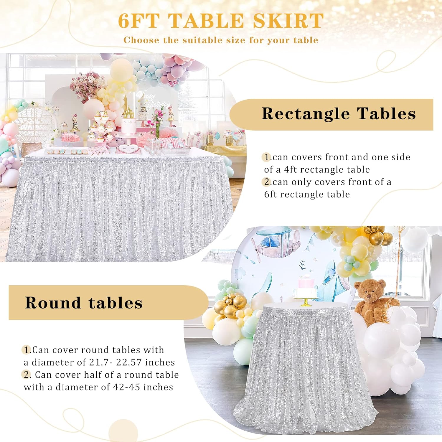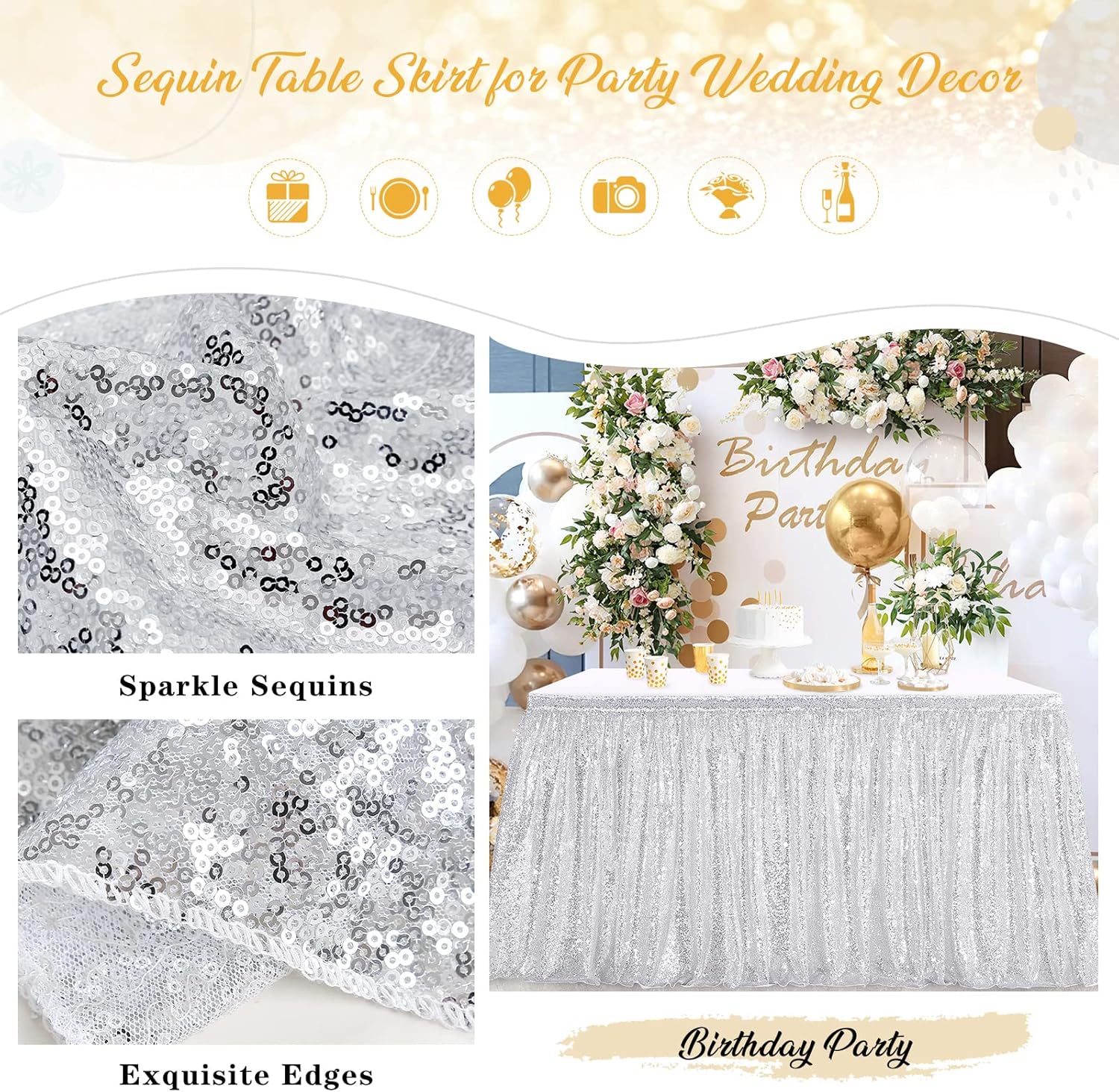 | Matériau | Jupe de table à paillettes |