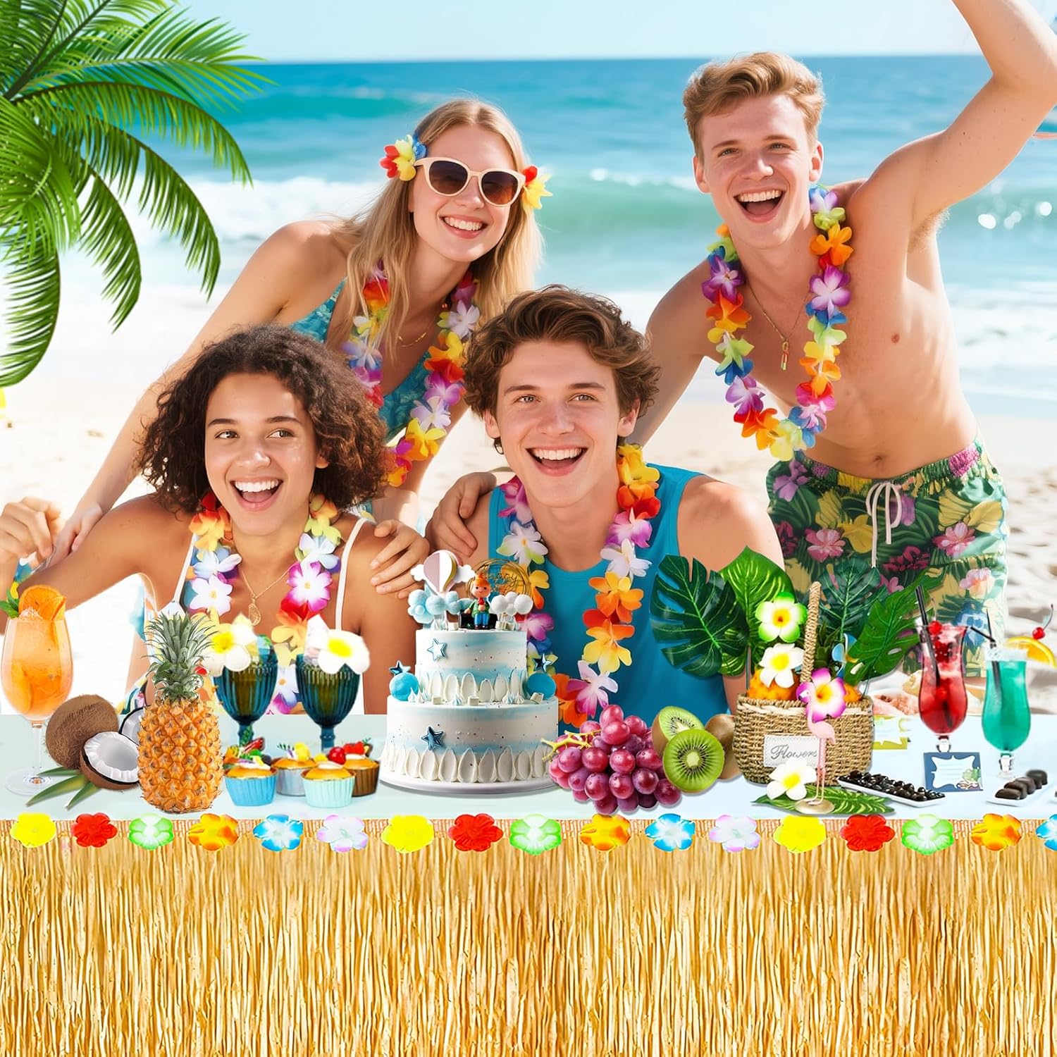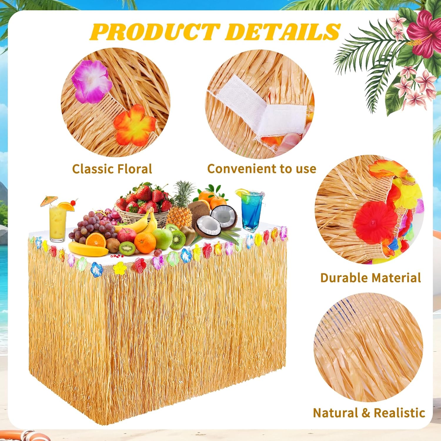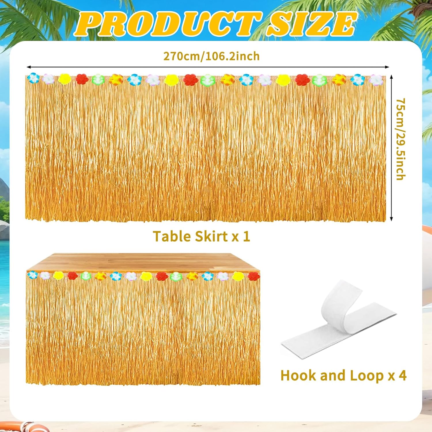 Elementi tropicali hawaiani: questa gonna da tavolo presenta fiori ed è abbinata a una trama di gonna in erba fresca per trasformare istantaneamente la tua festa in un'esotica festa hawaiana! Crea una vera atmosfera di festa hawaiana, perfetta per luau, spiagge e feste estive, portando una forte atmosfera di vacanza. Dimensioni extra large: questa gonna da tavolo lunga 270 cm x alta 75 cm è ideale per lunghi tavoli da buffet, feste in giardino o feste a bordo piscina. Applicazione multi-scenario: questa gonna da tavolo multifunzionale è adatta a molti scenari. Che si tratti di un romantico matrimonio al mare, di un vivace barbecue in giardino, di una festa di compleanno a tema, di una riunione all'aperto, di una festa in spiaggia o di un'appassionata festa hawaiana, è tutto perfetto. La nostra gonna drappeggiata è assolutamente essenziale per tutti i tipi di feste. Riutilizzabile: questa gonna da tavolo multifunzionale è realizzata in materiale resistente, che può essere smontato dopo la festa, quindi facilmente piegato e riposto bene, non facile da deformare, può essere riciclato molte volte, conveniente. Facile da montare: le nostre gonne da tavolo sono molto comode e semplici da montare, sono dotate di cinturini in velcro e si adattano a quasi tutti i tavoli.