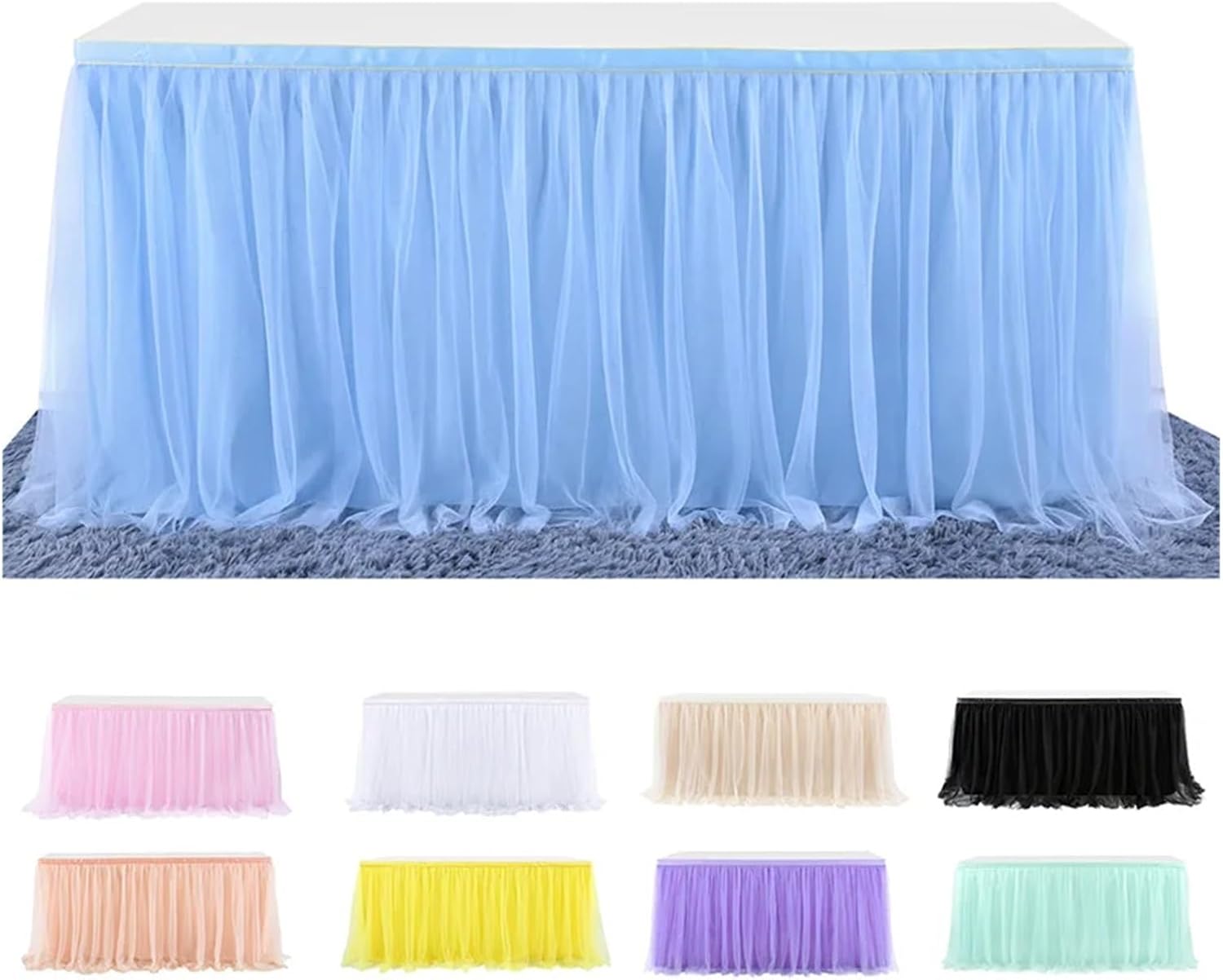 Elegante decorazione da tavola: aggiungi un tocco lussuoso istantaneo a qualsiasi evento o incontro con questa gonna da tavolo. Perfetto per matrimoni, feste e banchetti, aggiunge un tocco sofisticato alla decorazione della vostra tavola. Materiale durevole: realizzata in materiale antirughe, questa gonna da tavolo è progettata per durare. Il tessuto morbido e liscio offre un aspetto pulito ed elegante e resiste all'uso ripetuto. Facile da installare e rimuovere: con un design intuitivo, questa gonna da tavolo è facile da installare e rimuovere. Si adatta a diverse dimensioni e forme di tavoli, consentendo un'installazione senza sforzo. Versatile per diverse occasioni: che tu stia organizzando una festa di compleanno o un evento aziendale, questa gonna da tavolo completerà qualsiasi tema o arredamento. È ideale sia per occasioni informali che formali e valorizza l'intera atmosfera. Lavabile in lavatrice per una facile manutenzione: dì addio alle complicate routine di pulizia. Questa gonna da tavolo consente una cura rapida e comoda dopo ogni evento e garantisce un utilizzo a lungo termine