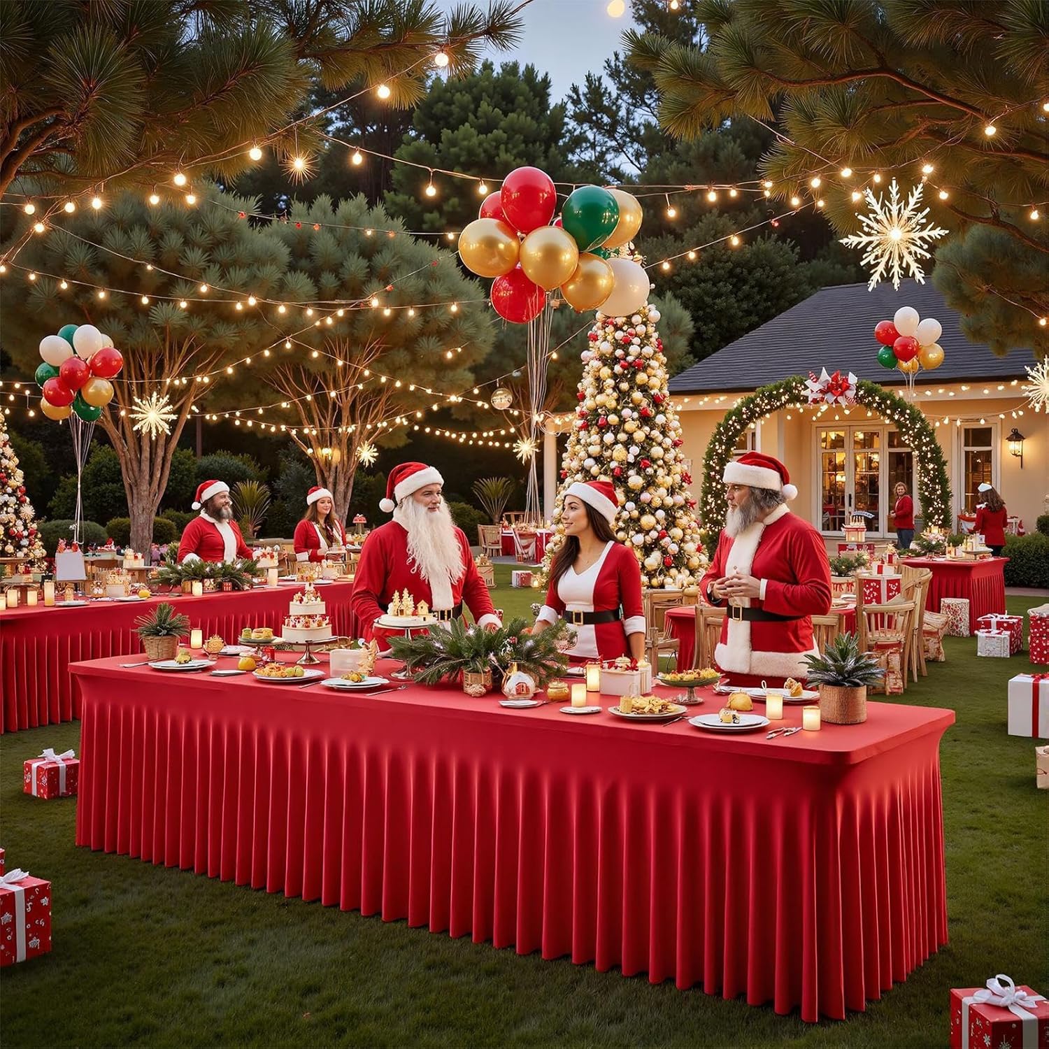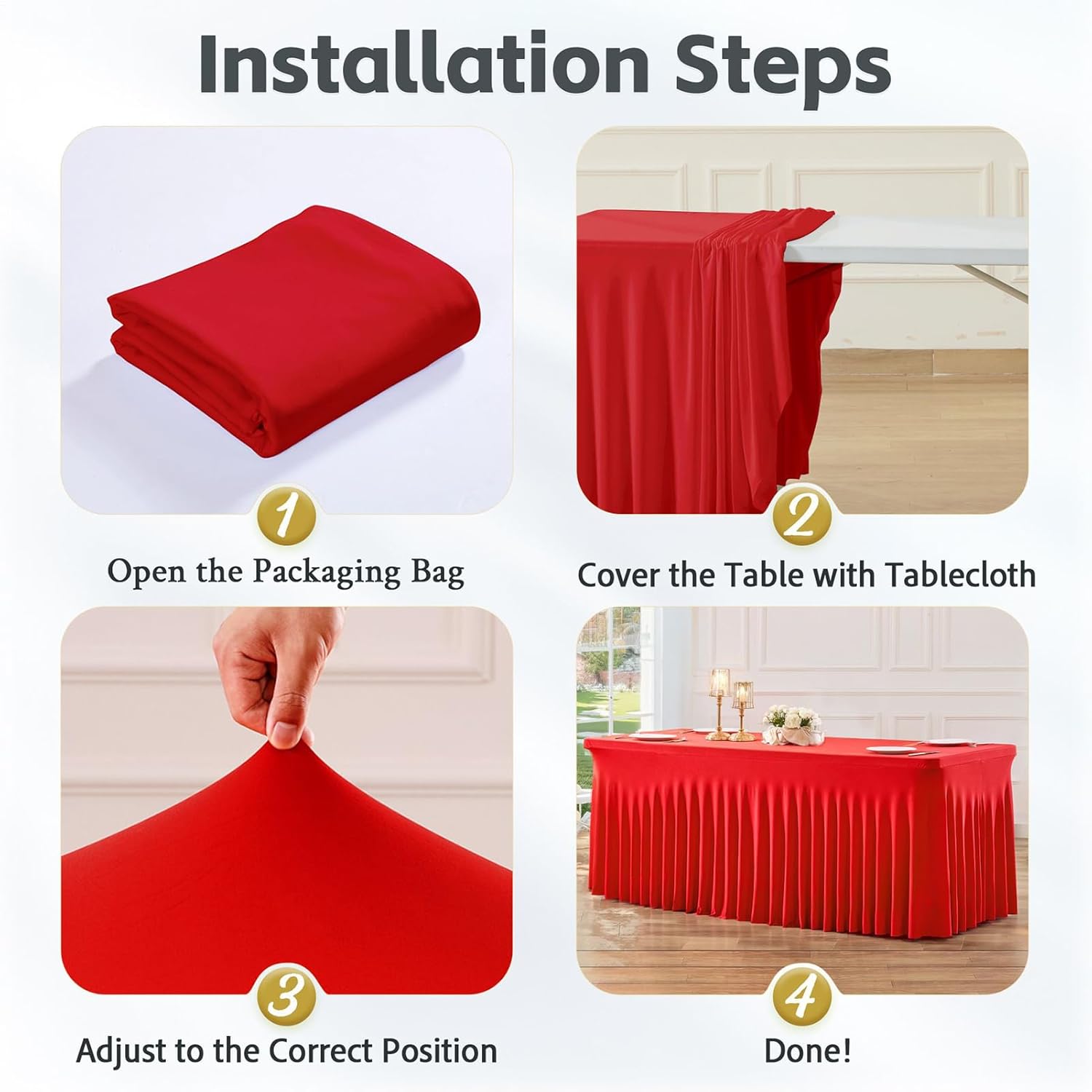 Utilizzo flessibile: con la sua forma adattabile, il grembiule per razioni è adatto a diverse forme di tavoli e temi di eventi come feste, vacanze o riunioni formali. La versatile soluzione decorativa crea momenti indimenticabili ad ogni incontro attraverso un party design armoniosamente coordinato. Nessun assemblaggio richiesto: questa tovaglia per feste offre una protezione completa per il piano e i lati del tavolo, nasconde oggetti antiestetici e offre un aspetto lucido per le feste Assemblaggio senza attrezzi: con un design piatto per un montaggio senza clip e senza attrezzi in pochi minuti, crea graziose volant a cascata e migliora gli ambienti di lavoro in spazi privati o professionali con un aspetto estetico Robusto materiale in poliestere: fornisce morbidezza e resistenza con il poliestere di alta qualità che garantisce riutilizzabilità e lunga durata. Che si tratti di eventi di catering, feste di famiglia o mostre pubblicitarie, offre affidabilità e fascino estetico insuperabili. Riutilizzabile ed elegante: la gonna da tavolo natalizia plissettata è progettata per molteplici usi, estremamente facile da pulire e combina praticità funzionale con un design chic per lasciare un'impressione duratura in vari eventi festivi
