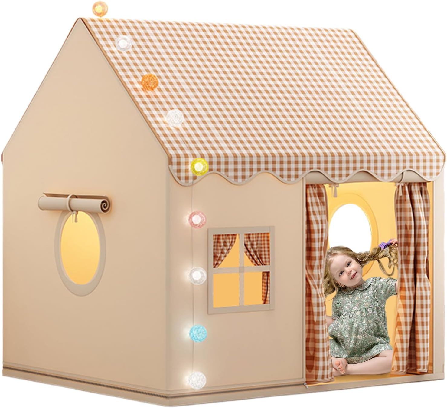 Tenda e area giochi 2 in 1: la tenda per bambini offre uno spazio accogliente dove i bambini possono giocare, rilassarsi o leggere garantendo sicurezza attraverso l'area giochi integrata. Questo intelligente design 2 in 1 massimizza sia l'uso che il divertimento, fornendo un luogo ideale per incoraggiare la creatività e il gioco sicuro. Illuminazione e comfort da favola: dotata di lucine a forma di stella, questa casetta da gioco per bambini crea un'atmosfera magica. Il morbido tappeto in cotone lavabile garantisce un comfort ottimale e offre una piacevole superficie per sedersi o sdraiarsi per rilassarsi dopo il gioco. Facile accesso e ventilazione: la porta anteriore con chiusura a cordoncino e la tenda a rete con lacci facilitano l'ingresso e l'uscita. La finestra laterale in rete e la finestra sul tetto migliorano la circolazione dell'aria e garantiscono un ambiente ben ventilato e confortevole per i bambini. Facile da montare: la tenda da gioco può essere montata rapidamente e senza attrezzi con un telaio robusto, connettori in plastica e una base con cerniera. La costruzione è progettata per un'installazione semplice in modo che i bambini possano iniziare subito a utilizzare il loro nuovo spazio di gioco. REGALO IDEALE: regala un parco giochi sicuro e stimolante, perfetto per bambini dai 3 anni in su. Il regalo ideale per compleanni o celebrazioni, questa tenda versatile garantisce ore di divertimento e creatività in un ambiente che offre divertimento e avventura.