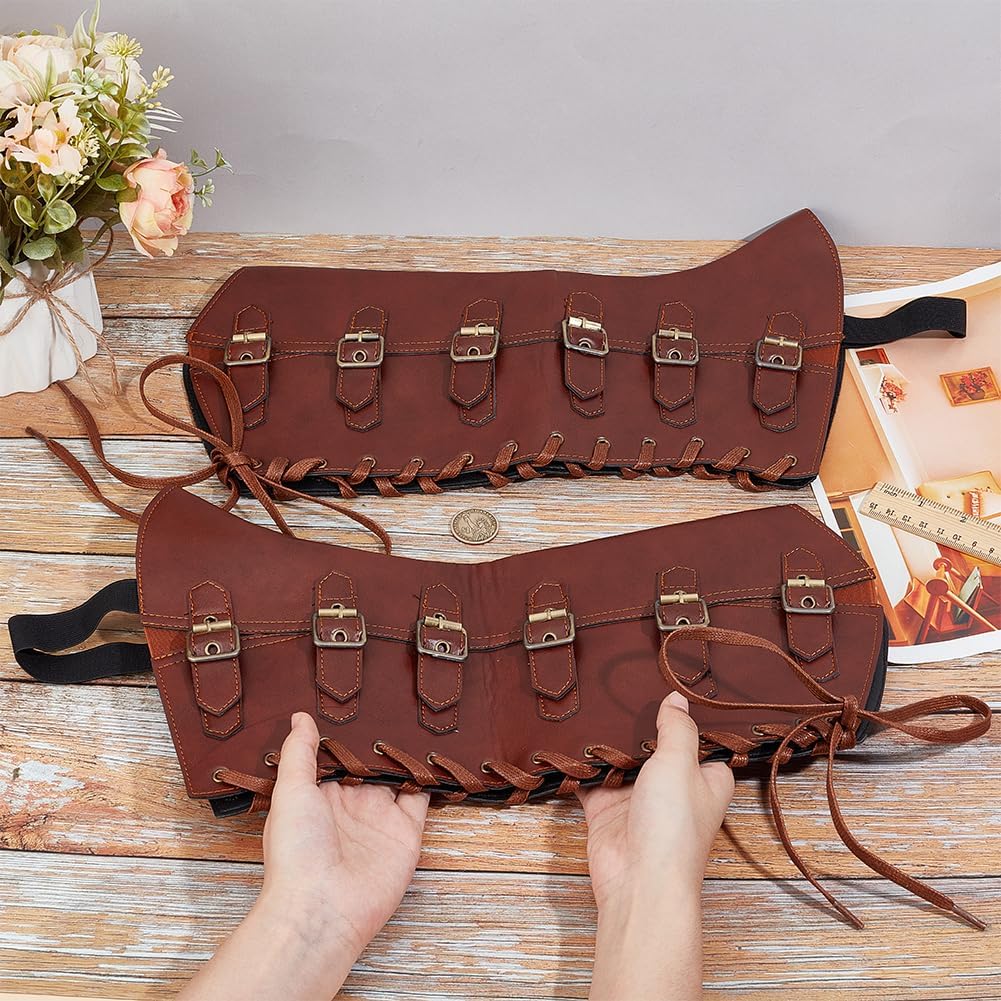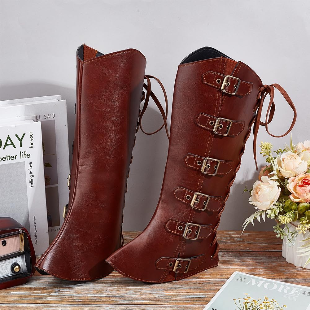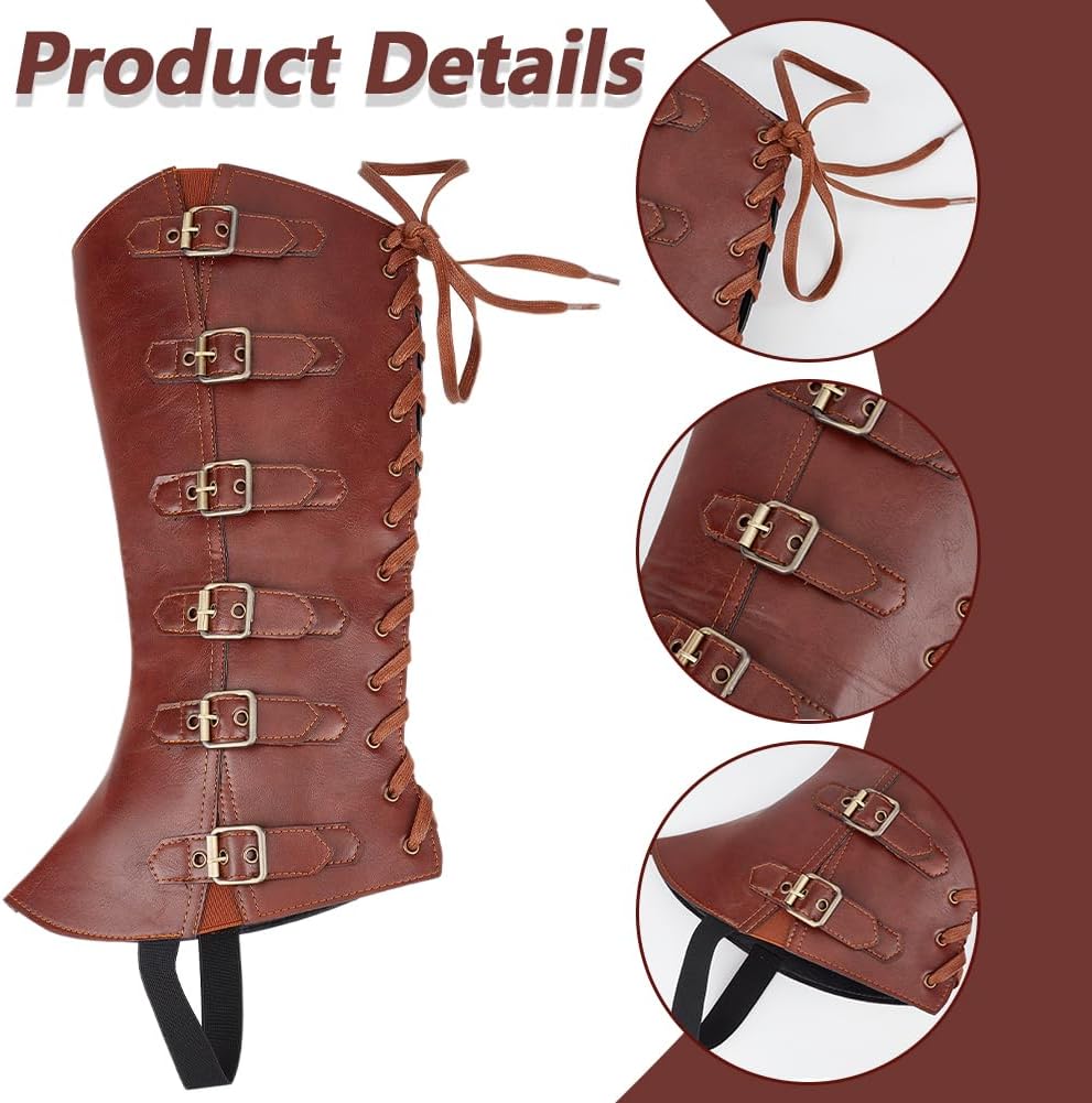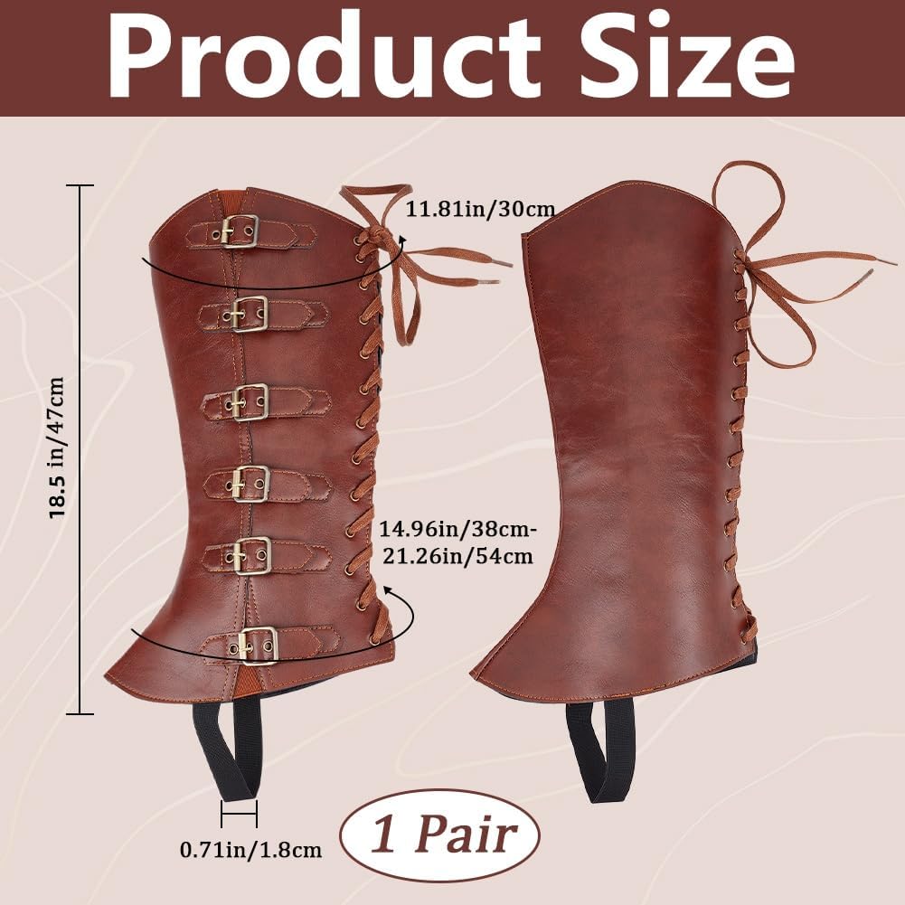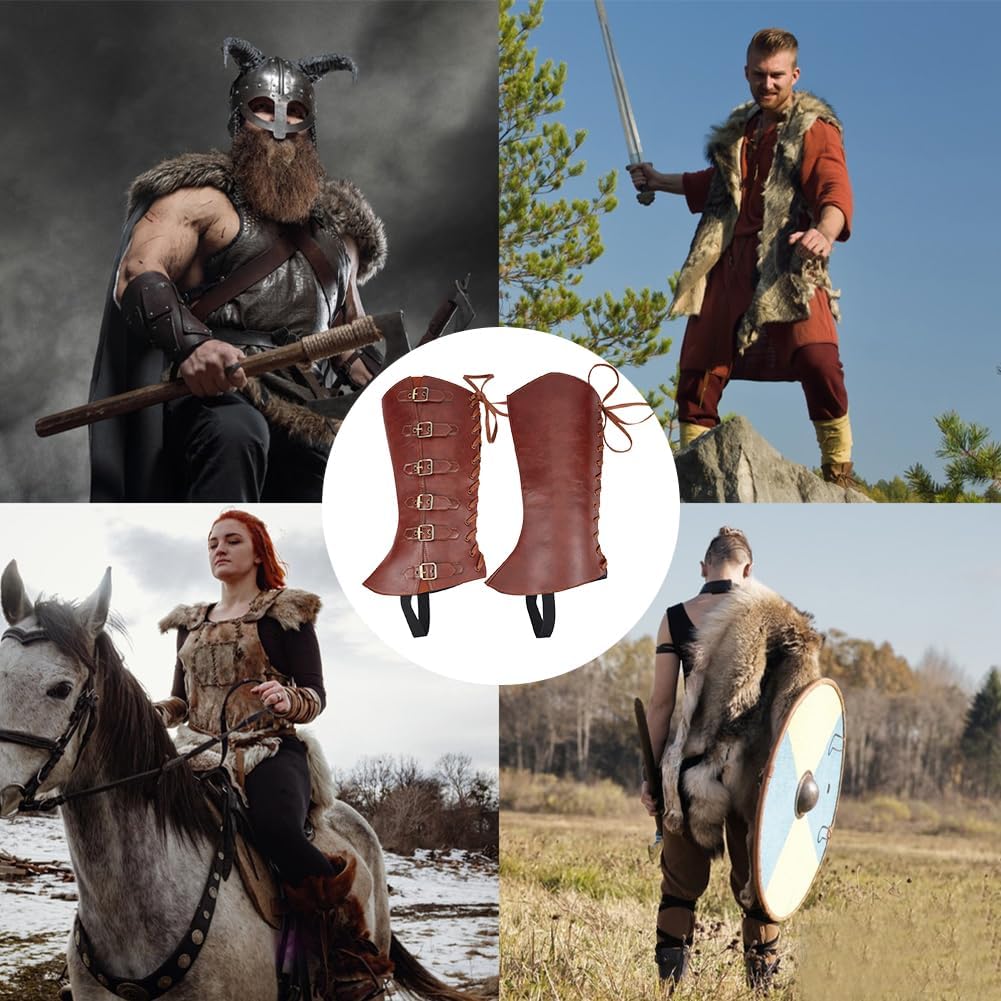 2 pz. Protezioni per le gambe medievali:include 1 paia (2 pz.) di copristivali medievali, 47x22.5cm , Spessore da 7 a 14mm Misura regolabile:progettato con cinturini e cavi con fibbia regolabili, facile da indossare e da rimuovere, facilmente per regolarlo per adattarlo meglio in base alla circonferenza del polpaccio. Adatto per la maggior parte delle gambe di uomini e donne Copristivali retrò:design medievale vintage, può essere abbinato a qualsiasi abbigliamento retrò per offrirti un perfetto look medievale, aggiungi più divertimento per tante giornate in cui vestire i personaggi Materiale in pelle:realizzato in materiale similpelle di alta qualità, traspirante e comodo da indossare, durevole e può essere utilizzato per l'uso quotidiano o per feste a tema in costume o in maschera Ampia applicazione:ottimo per i giochi di ruolo, rievocazioni storiche, feste di Halloween, Dramma, Gioco di ruolo dal vivo, varietà di eventi, accessori per feste in costume in maschera, come complemento perfetto per il tuo costume. Regalo perfetto per i tuoi amici e familiari per vestirsi come i loro personaggi preferiti, renderli felici, goditi Halloween