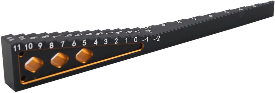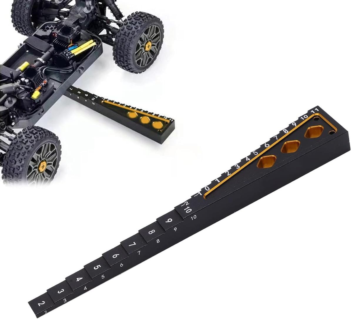Costruzione durevole in lega di alluminio: questo misuratore di altezza per carrozzeria di un'auto RC è realizzato in robusta lega di alluminio, offrendo prestazioni di lunga durata e resistenza all'usura. Il suo design robusto garantisce che rimanga funzionale e preciso per un lungo periodo di tempo, anche in condizioni difficili. Misurazioni precise e precise: il misuratore di altezza fornisce misurazioni precise per il telaio della tua auto RC. Fornisce misurazioni precise dell'abbassamento, consentendoti di mettere a punto il tuo veicolo per prestazioni ottimali. I campi di misura vanno da -2 mm a -11 mm con incrementi di 0,5 mm. Contrassegni chiari e durevoli: il manometro presenta contrassegni permanenti e di facile lettura che non sbiadiscono né si usurano. Le marcature sono progettate per rimanere intatte in modo da poter sempre leggere chiaramente le letture anche dopo un uso ripetuto. Compatibilità versatile: questo misuratore di altezza corporea è compatibile con i telai per auto RC standard in scala 1:8 e 1:10. Che tu stia lavorando con un'auto RC fuoristrada o su strada, questo indicatore ti aiuterà a ottenere l'altezza e l'abbassamento delle sospensioni corretti per diversi modelli e tipi di telaio. Facile da usare per una regolazione precisa del telaio: con il misuratore di altezza puoi misurare in modo rapido e preciso la caduta della molla della tua auto RC, facilitando la regolazione delle prestazioni del veicolo. Basta posizionare il misuratore sotto il telaio e misurare la caduta per raggiungere l'altezza desiderata per migliorare maneggevolezza e stabilità.