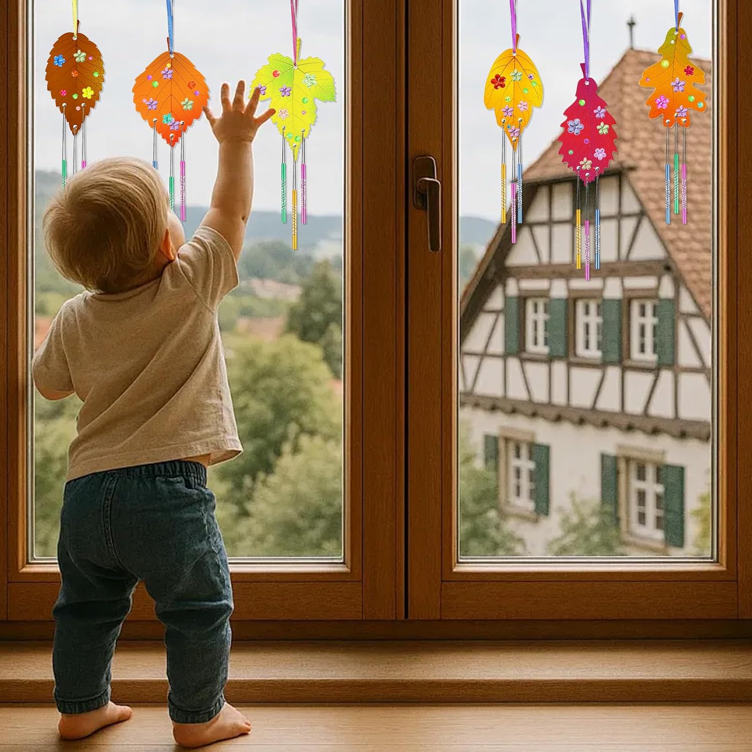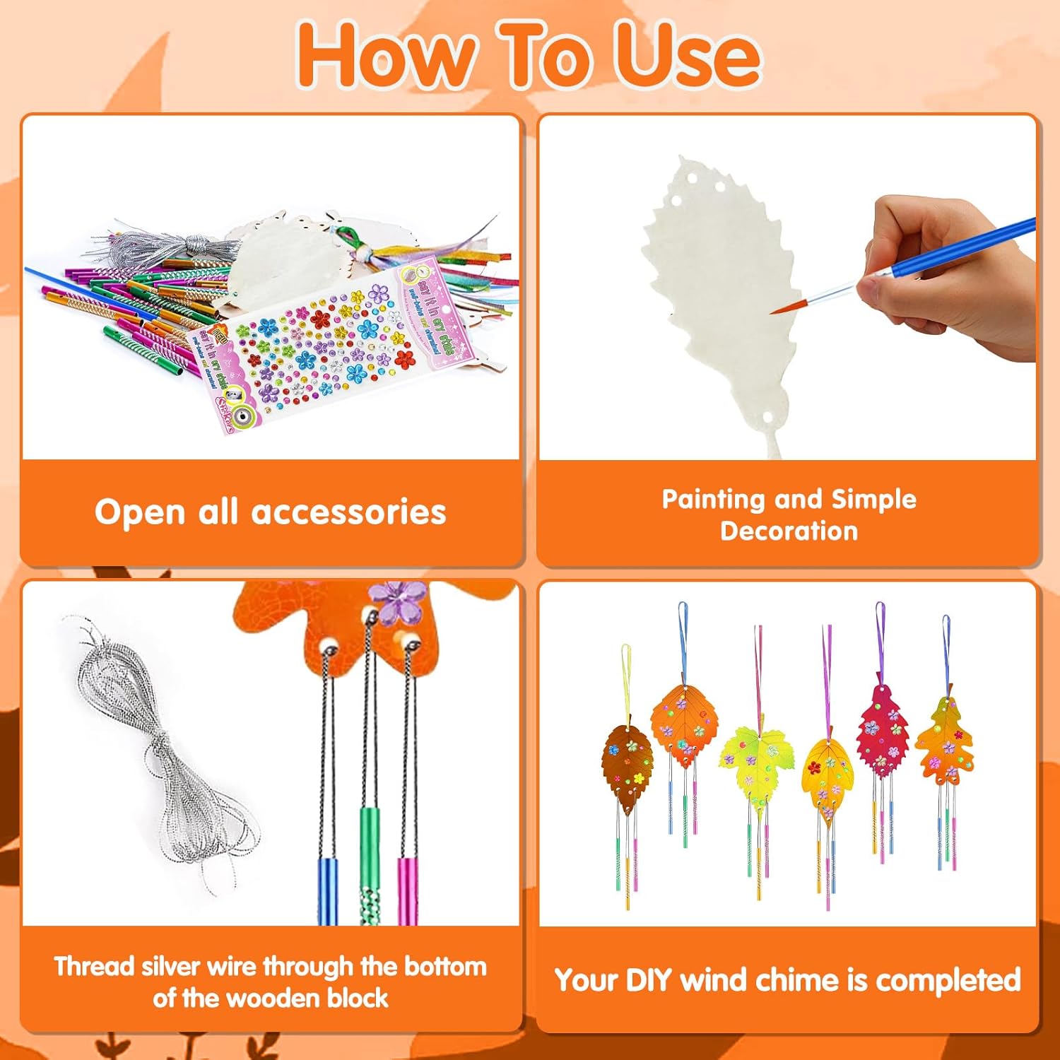 Set di Lavoretti per Bambini: Riceverai un set per dipingere campanelli eolici che include 12 dischi di foglie in legno (6 stili, 2 pezzi), spago colorato e spago argentato, 36 tubi per campanelli eolici, 2 pennelli e 1 foglio di adesivi. I bambini potranno dare libero sfogo alla loro creatività e creare decorazioni autunnali uniche Kit per Lavoretti Autunnali: Realizzato in legno di alta qualità, questo kit per lavoretti autunnali con foglie è sicuro e resistente. Il legno è stato sottoposto a un trattamento speciale, la superficie è liscia e senza sbavature ed è facile da tingere e mordenzare, stimolando la coordinazione occhio-mano, la creatività e l'immaginazione dei tuoi bambini Kit per Lavoretti Autunnali per Bambini: 6 diverse forme di foglie offrono diverse esperienze creative, offrendo ai bambini un divertimento visivo attraverso le loro creazioni. È facile e divertente da usare. Dipingi le foglie d'acero con i tuoi colori preferiti e lasciale asciugare. Quindi attacca i tubi del campanello eolico alle foglie d'acero e appendi il campanello con il nastro Kit Fai da te per Decorazioni Autunnali per Finestre: Questo kit per realizzare campanelli eolici a forma di foglia d'acero è più di un semplice kit: è un modo per trascorrere del tempo insieme ai vostri bambini e creare ricordi indelebili. Quando soffia il vento, i bellissimi campanelli eolici a forma di foglia ruotano nell'aria, emettendo suoni melodiosi. Questi lavoretti offrono ai bambini divertimento durante il loro tempo libero Giocattoli per l'interazione Genitore Figlio: Questi kit in legno per bambini sono progettati per essere realizzati da soli o con amici e familiari. Possono appendere le loro opere d'arte a finestre, porte, balconi o in giardino e godersi il meraviglioso suono che si crea mentre il vento soffia attraverso di esse, strappando loro un sorriso