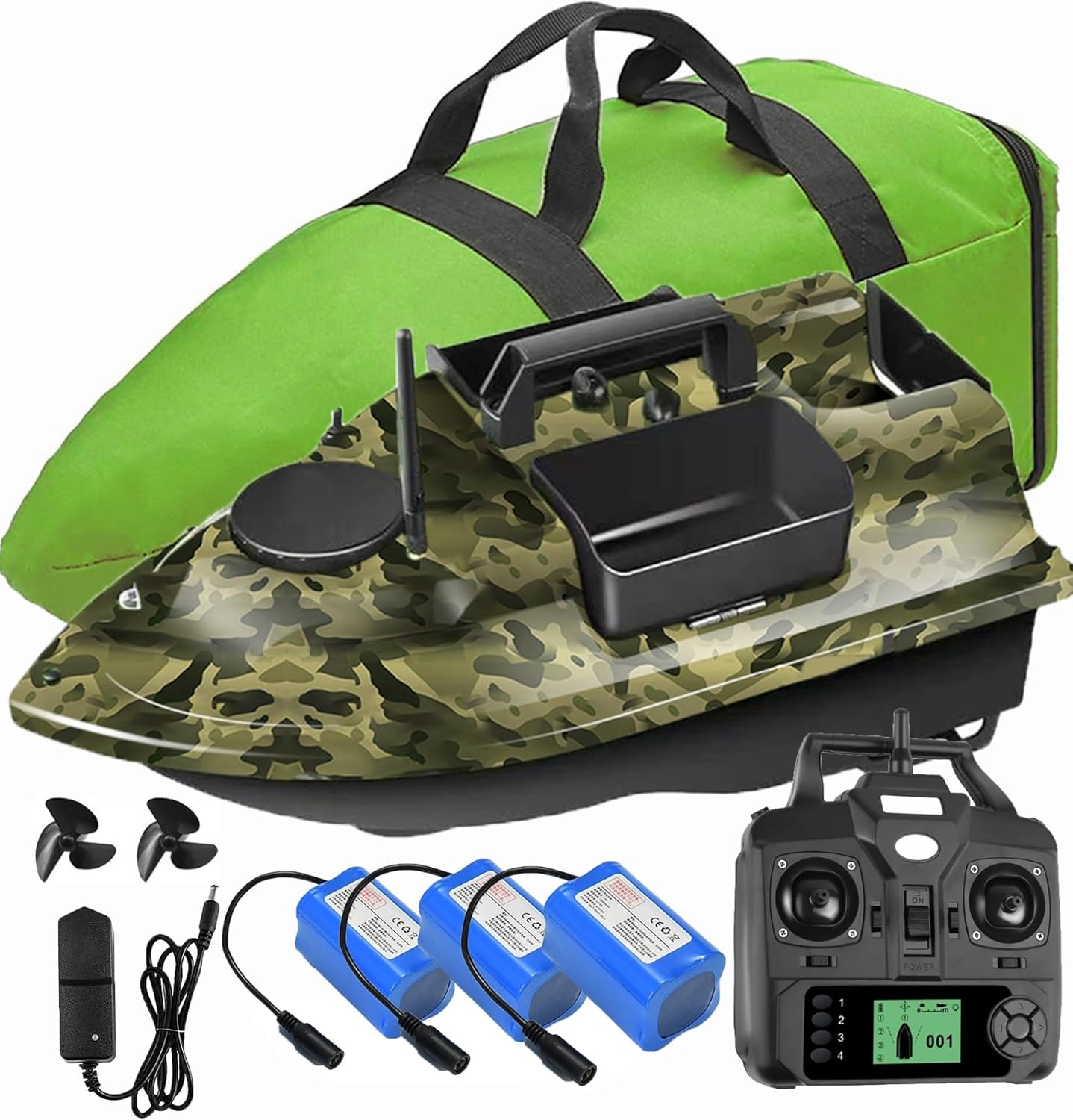 Durevole: realizzato in materiale ABS di alta qualità, robusto e durevole, non facile da deformare e trasportare, può essere utilizzato a lungo Prestazioni potenti: il potente motore doppio garantisce una potenza sufficiente della barca ed è dotato di un'elica a tre foglie per aumentare la forza di spinta e l'ampiezza della pagaia in acqua. Lunga durata: adotta una batteria al litio da 12000 mAh, che si ricarica rapidamente e ha una lunga durata. Basso consumo energetico, 4 ore di navigazione continua, sufficiente per 1 giorno di pesca all'aperto. Buone prestazioni: con la frequenza di controllo 2.4G, la distanza di controllo remoto può raggiungere 1640,42 piedi. Con il sistema di calibrazione automatica BeiDou e il sistema di posizionamento GPS, è possibile impostare 40 punti di posizione. Applicazione: questo prodotto può essere utilizzato in tutte le acque tranne l'oceano.