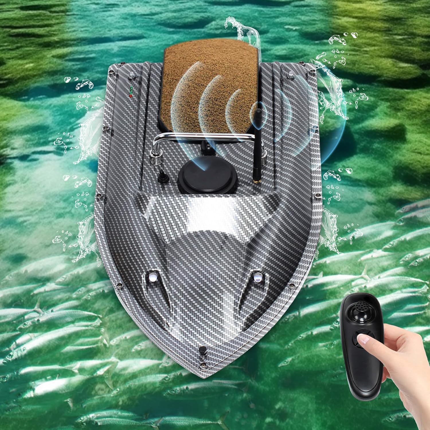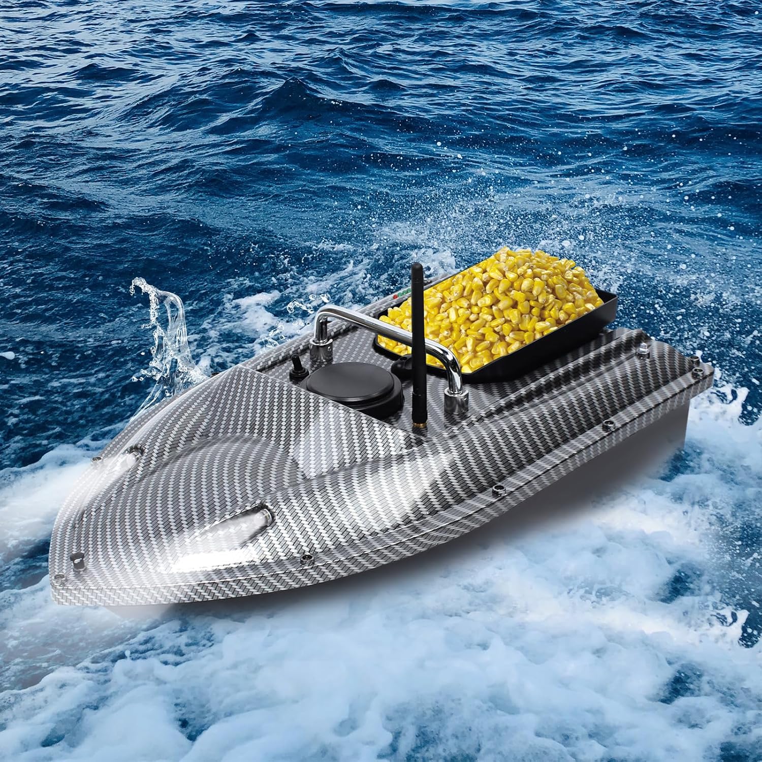 Ampia gamma: con il telecomando, puoi controllare in sicurezza la tua piccola barca da una distanza di 500 metri, come se ci fosse una corda invisibile tesa tra te e la barca. Assistente per la pesca notturna: questa illuminazione a LED appositamente progettata è il tuo strumento di navigazione notturna Tempo di standby lungo: questo prodotto dura fino a 2-3 ore per carica. Questo può rendere la tua corsa più comoda e facile e darti più piacere durante la pesca. ALTA DURATA Il materiale in acciaio inossidabile e ABS di cui è composta questa barca da pesca è robusto e durevole, quindi la barca può resistere a forti venti e onde e riduce la possibilità di imbardare. Progettato per carichi: può sopportare un peso di 1,5 kg alla volta! Ciò significa che puoi portare con te una grande quantità di esche in una sola volta e non dovrai più andare frequentemente verso la riva per ricostituire le tue riserve di esche.