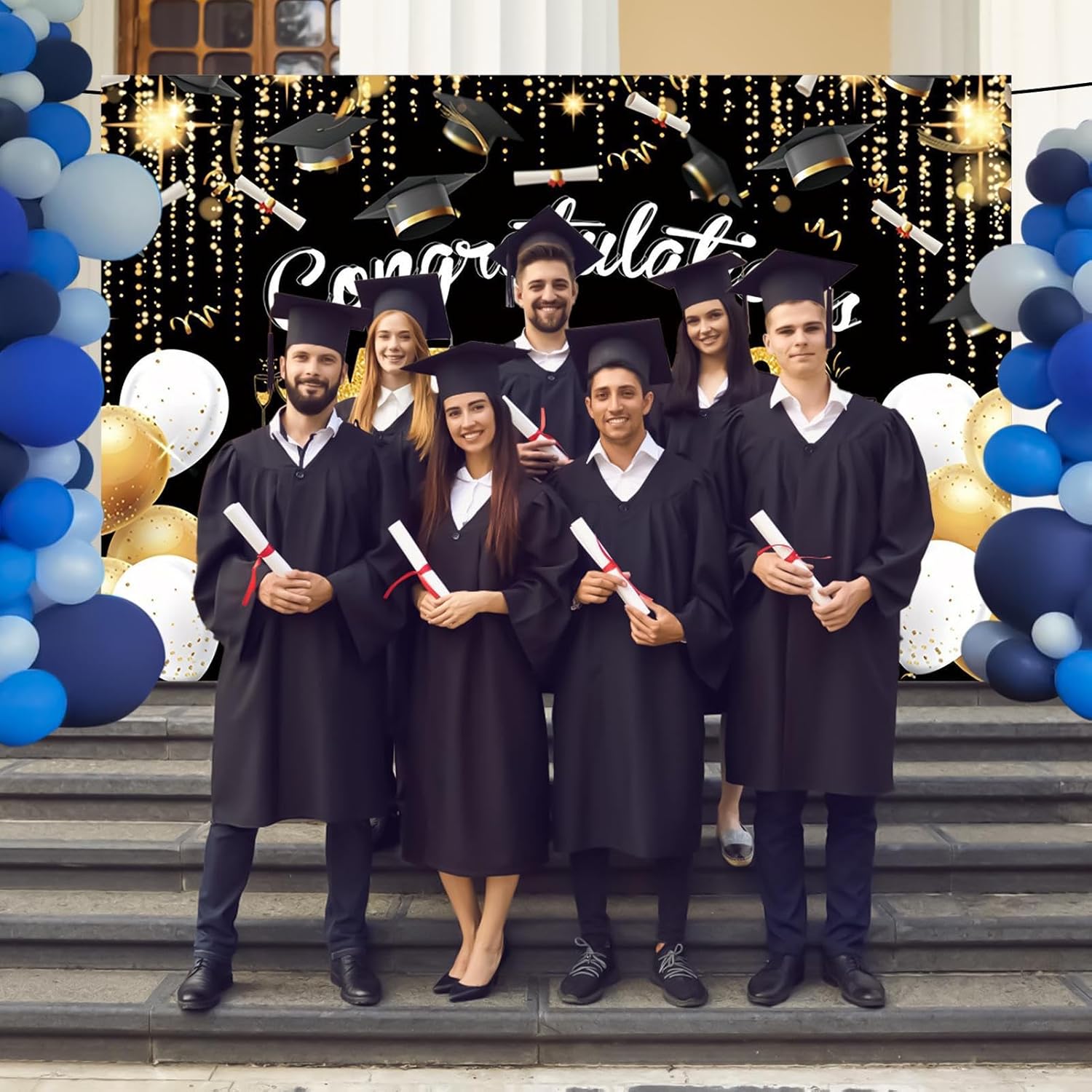 Equilibrio Atmosferico: Progettato per bilanciare l'energia del campus, lo sfondo unisce elementi tradizionali accademici a tocchi celebrativi. Creazione di momenti indimenticabili attraverso l'armonia tra formalità cerimoniale e allegria festiva. Decorazioni Eventi Durevoli: Prodotto con tessuto poliestere rinforzato che assicura una resa grafica nitida nel , come elemento decorativo riutilizzabile per festeggiamenti e cerimonie che richiedono materiali resistenti a multiple installazioni Progettazione Adattiva: Design modulare che si integra con strutture esistenti, offre soluzioni creative per allestimenti scenografici in eventi indoor/outdoor e spazi pubblicitari Durata Ottimizzata: Combinazione di bordatura rinforzata e occhielli robusti assicura prestazioni affidabili in ogni condizione meteorologica Dettagli ad Alta Definizione: Riproduzione cromatica vibrante e precisione di stampa ottimizzata per garantire leggibilità perfetta anche da lontano, con inchiostri anti-impronta di lunga durata