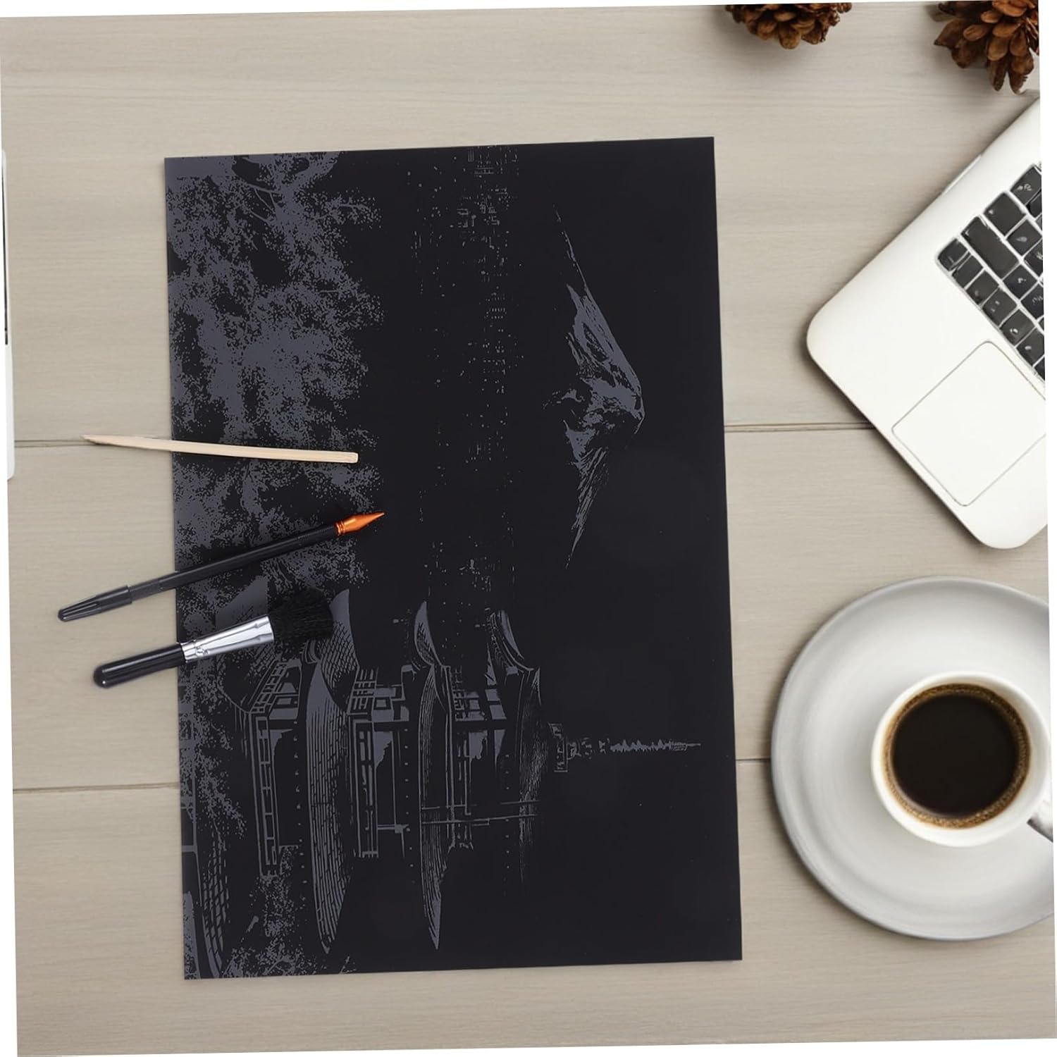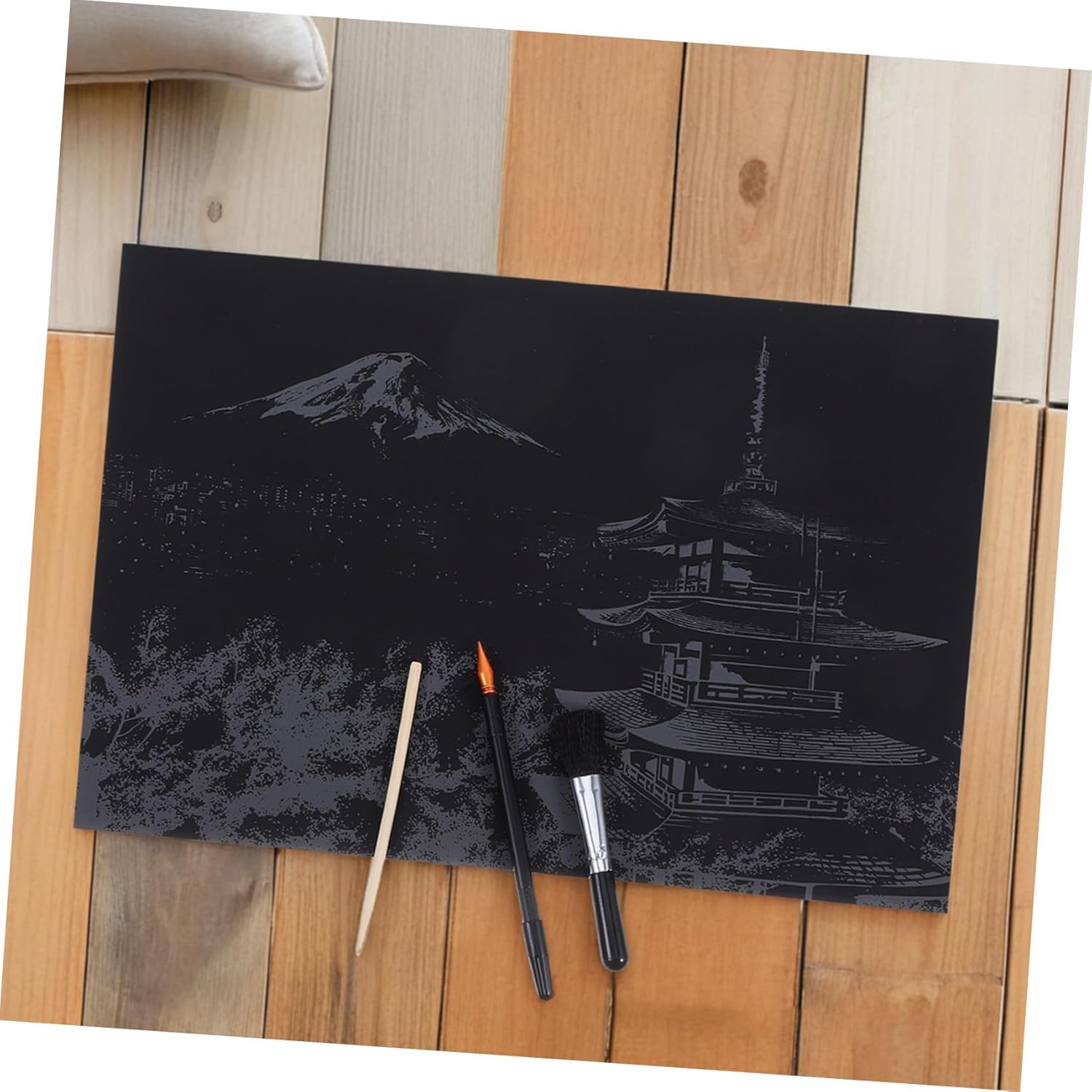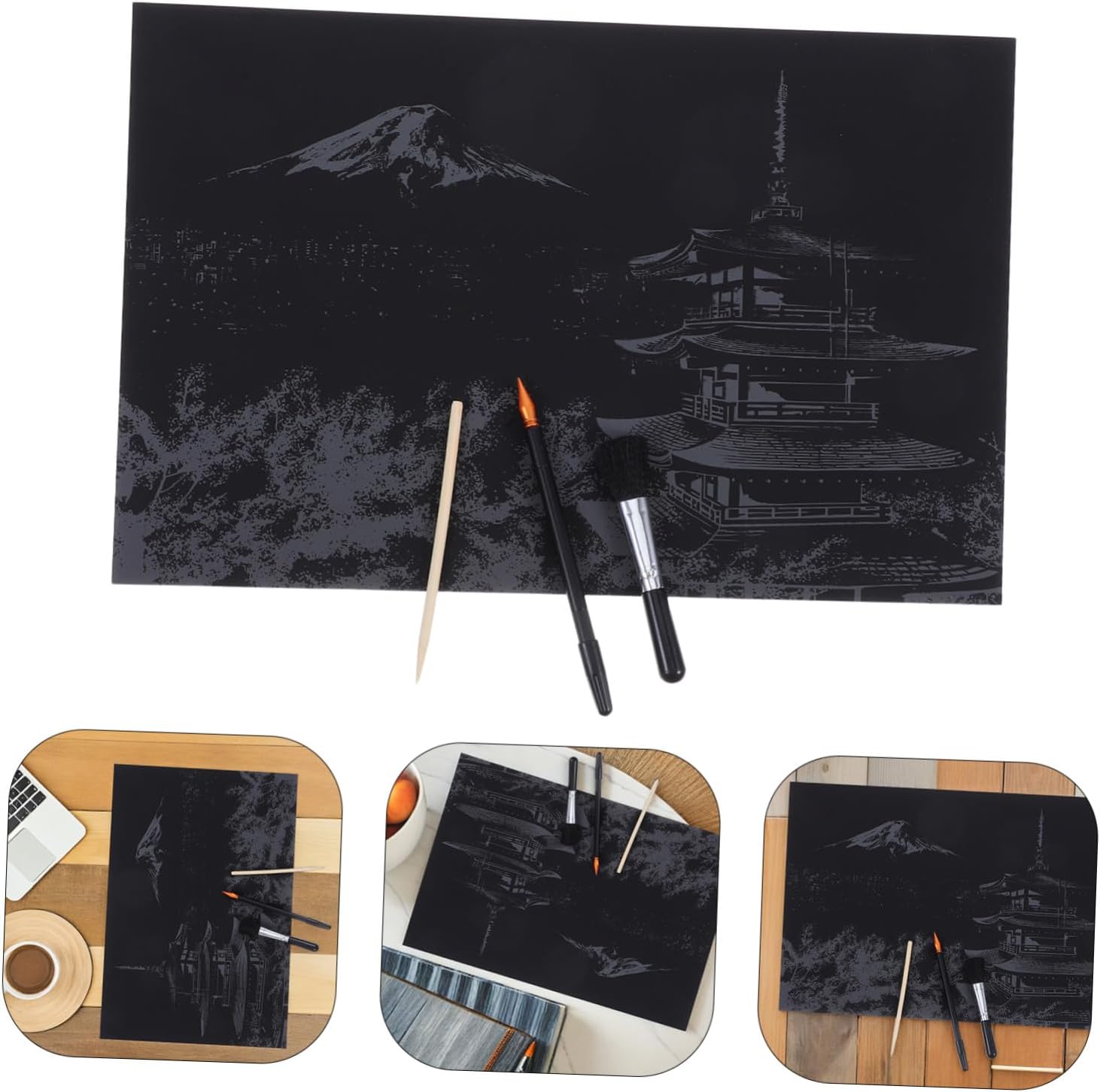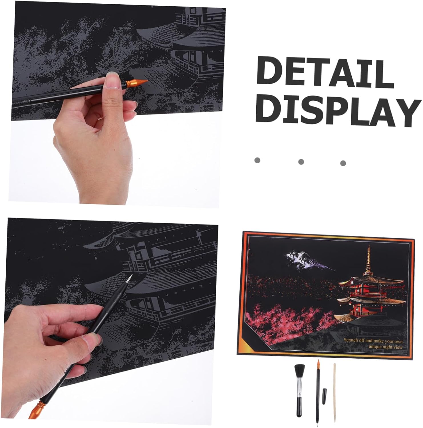 Pittura da per : aumenta l'atmosfera e decora la casa, pannello da per l'arte Kit per dipingere con la lavagna : puoi montarlo su una cornice appesa al muro o appoggiarlo sulla scrivania, da grattare Strumenti per ombreggiatura : usa la penna scratch per grattare via gli schizzi di colore grigio, rivelando i bellissimi colori sottostanti, materiali artistici scratchboard Penna per la riparazione dei graffi sul legno, di qualità, per scene notturne Strumento : presenta colori vivaci e motivi nascosti sotto un rivestimento opaco, sketch DIY craft
