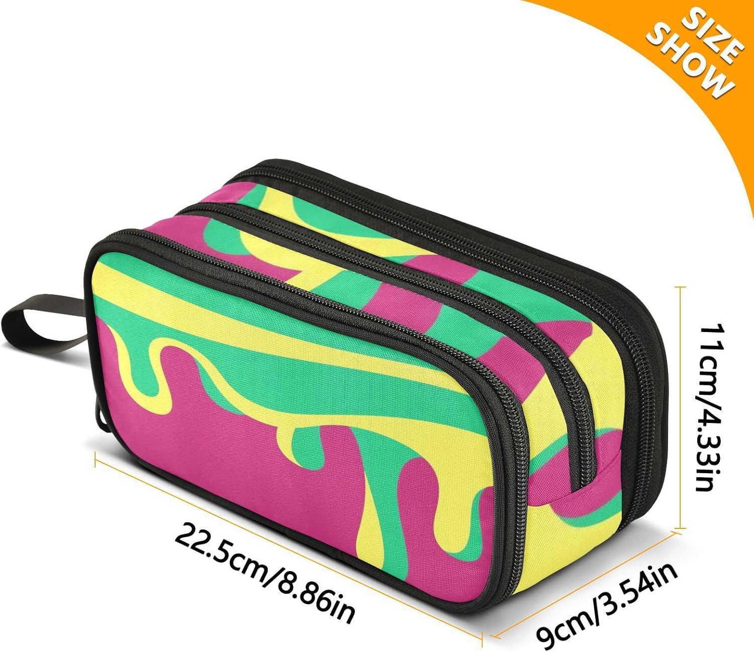 Dimensioni: 22,5 x 9 x 11 cm. L'astuccio portapenne è accuratamente stampato. Dispone di tre strati. La borsa a catena ha abbondante spazio di archiviazione, che può separare e classificare i tuoi diversi oggetti e può contenere quasi tutto ciò di cui gli studenti hanno bisogno. Materiale: questo astuccio portapenne è realizzato in nylon di qualità, resistente e duraturo. Dimostra una buona resistenza all'usura. Sia per l'uso quotidiano che per essere portato in giro, può far fronte a varie sfide e tenerti compagnia a lungo. Uso versatile: oltre ad essere un astuccio con cerniera, può anche essere utilizzato per riporre piccoli strumenti, ecc. È un assistente multifunzionale nella tua vita. Che tu sia uno studente, un impiegato o un artista, puoi trarne beneficio. Design: il processo di produzione è meticoloso, con punti saldi e una cerniera liscia che è facile da tirare. Nel frattempo, il design semplice e alla moda dell'astuccio per adolescenti, insieme a una varietà di scelte di colore, soddisfa le tue esigenze individuali e ti consente di mostrare un gusto unico nello studio o nel lavoro. Suggerimento per la pulizia: quando si pulisce l'astuccio in modo normale, è sufficiente pulirlo con un panno umido per eliminare le macchie sulla superficie. Lavabile a mano. Non può essere lavato in lavatrice e non include candeggina.