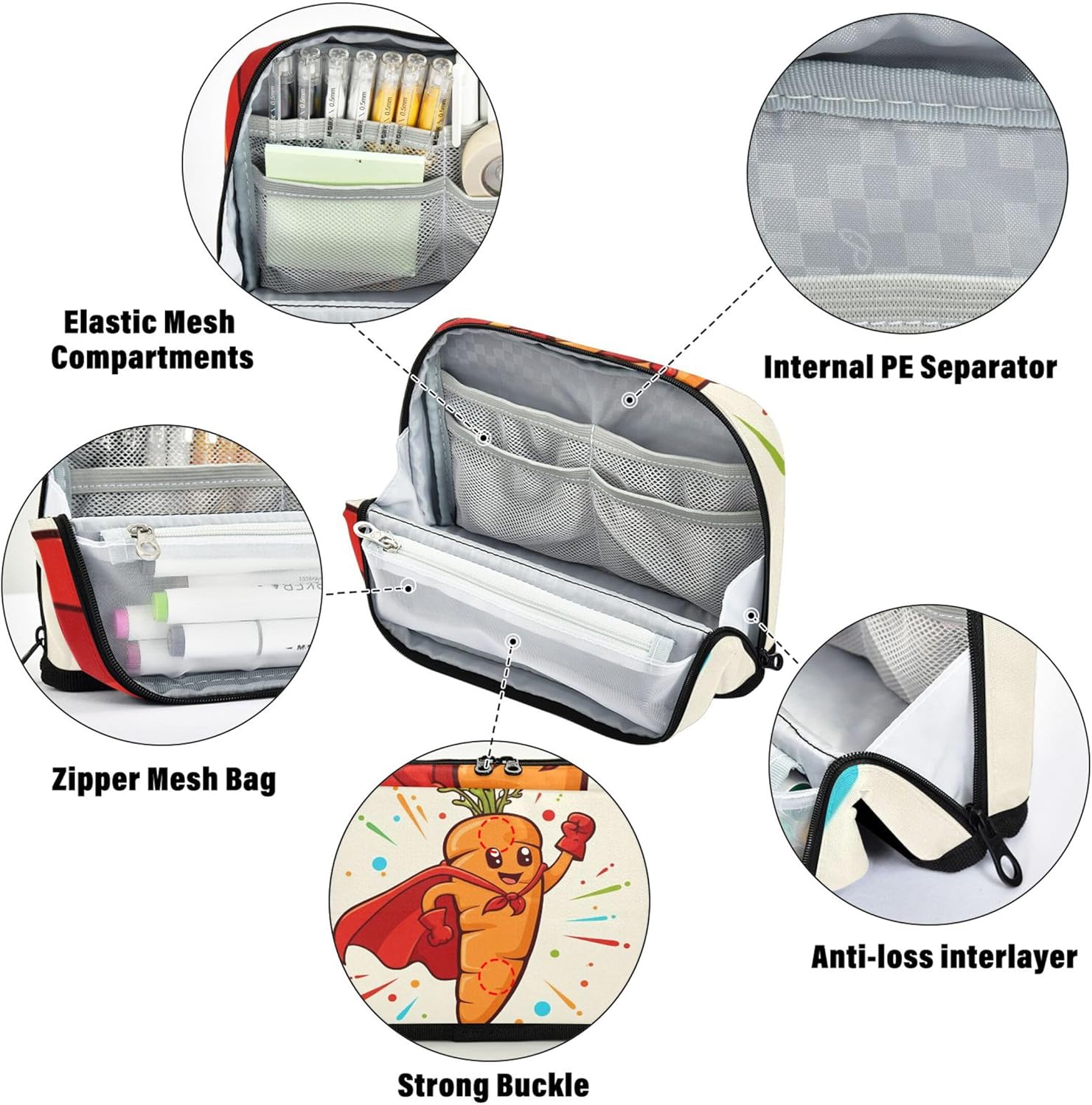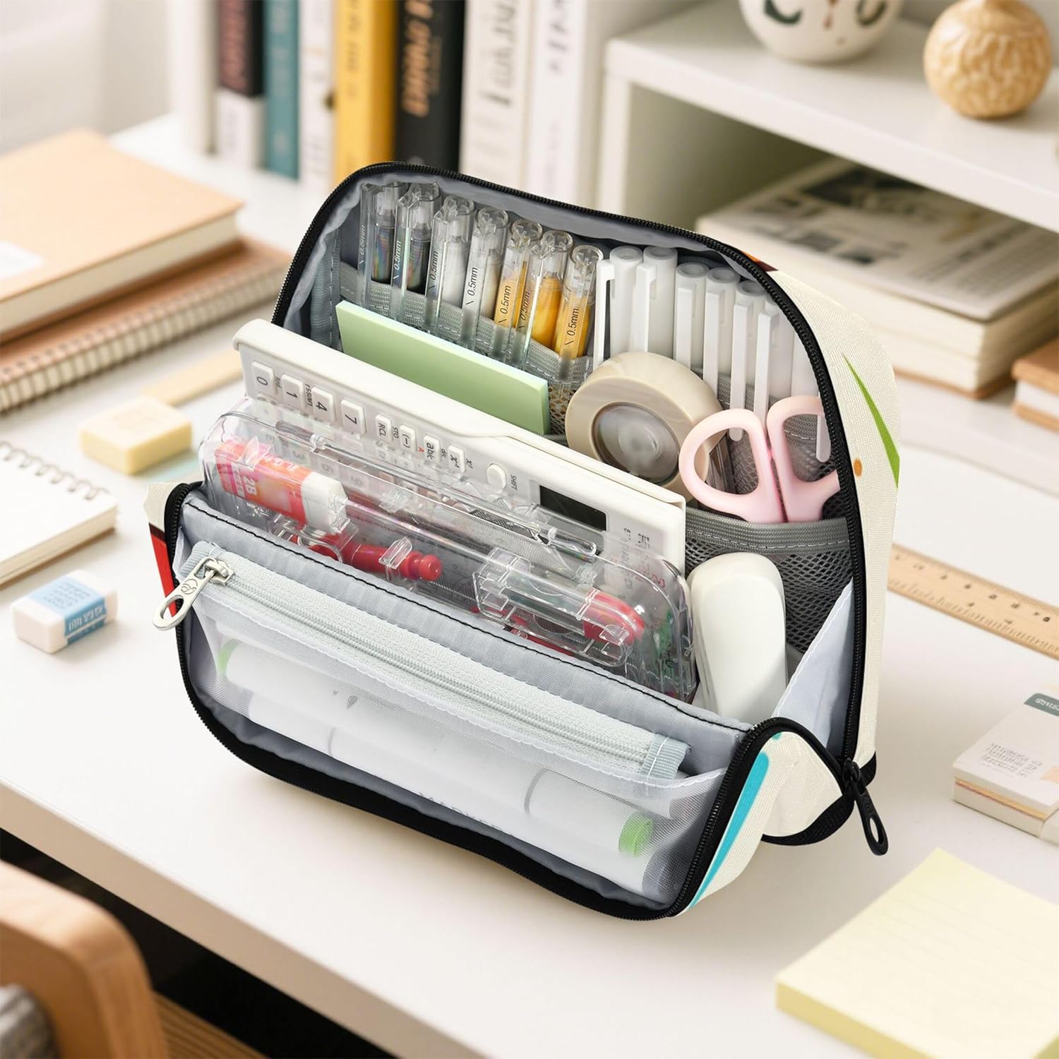 Rimane in posizione verticale per un facile accesso: le borse con cerniera per matite scolastiche si piegano in una base stabile utilizzando pulsanti magnetici, trasformandosi in un portapenne verticale che mantiene i tuoi oggetti essenziali visibili e raggiungibili Materiale di alta qualità: realizzato in resistente tessuto di nylon, l'astuccio speciale è resistente ai graffi, facile da pulire e costruito per resistere all'usura quotidiana Massimo spazio: i sacchetti per matite utilizzano un layout interno intelligente con tasche multiple per contenere tutto, dagli strumenti di scrittura ai piccoli accessori in ordine Flessibile per diverse esigenze: l'astuccio per matite funge da molto più di un semplice astuccio, riutilizzalo come kit per il trucco quotidiano, borsa da viaggio o pratico contenitore da scrivania Soluzione regalo personalizzata: aggiungi un nome o una foto ai graziosi astucci e fai un regalo unico nel suo genere che unisce praticità e personalità per scuola, viaggi o uso domestico