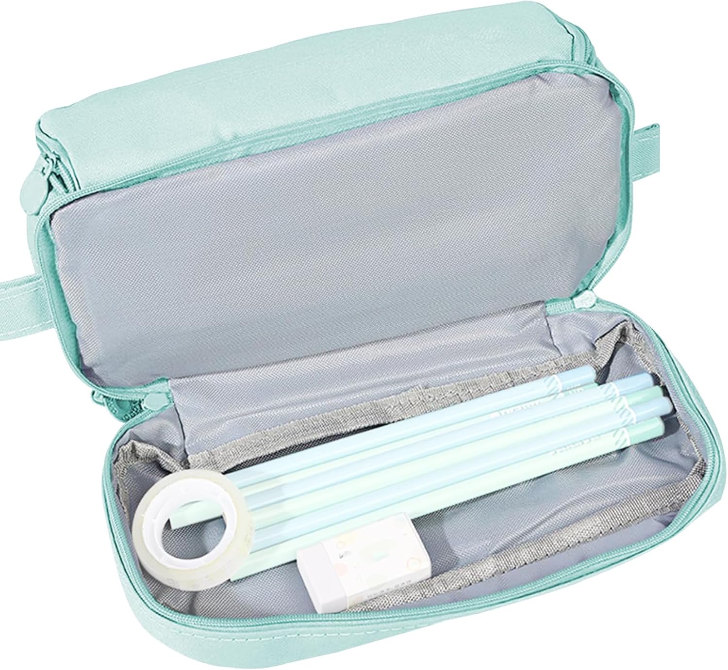 Organizzazione efficiente degli articoli: progettato con più scomparti, questo astuccio organizer offre ampio spazio per riporre e organizzare vari oggetti, rendendolo una soluzione pratica sia per la scuola che per l'uso sul posto di lavoro senza ingombri Un must per gli spostamenti quotidiani: realizzato con materiali impermeabili e resistenti agli strappi, l'astuccio resiste efficacemente alle macchie, rendendolo una scelta ideale per le persone impegnate che cercano funzionalità nel loro trasporto quotidiano Design robusto con cerniera: progettato con una robusta cerniera in metallo e un'azione di scorrimento senza cuciture, questo astuccio offre una protezione duratura e una conservazione affidabile per tutti i tuoi articoli di cancelleria indispensabili Design salvaspazio: dotato di una tasca laterale, questo astuccio offre spazio aggiuntivo per gli oggetti usati di frequente, consentendo un'organizzazione efficiente e un facile recupero quando necessario Concetto di design per tutte le età: perfetto per riporre accessori digitali e forniture artistiche, questo astuccio è adatto a studenti e artisti, offrendo un organizer multiuso che funge da idea regalo premurosa per tutte le età mantenendo gli oggetti indispensabili ordinatamente organizzati