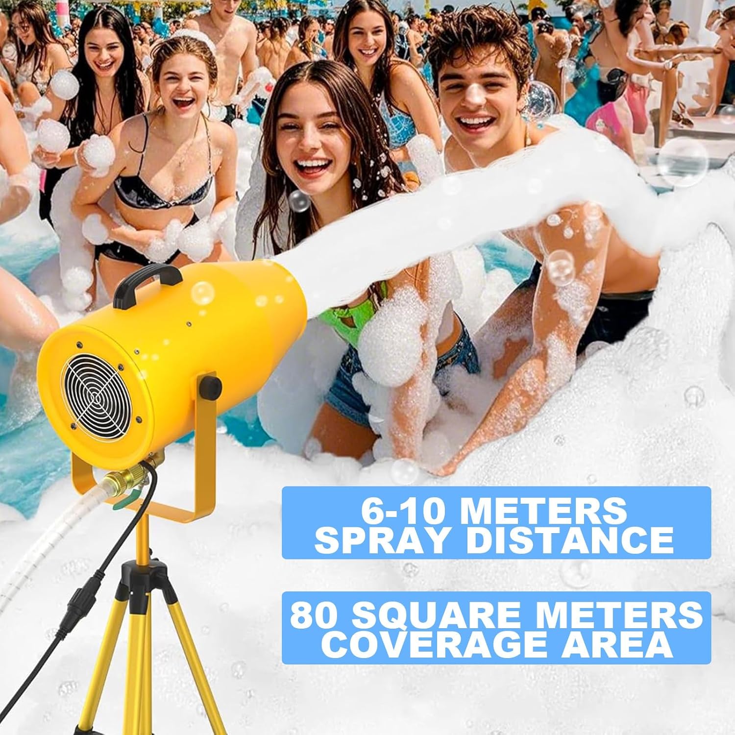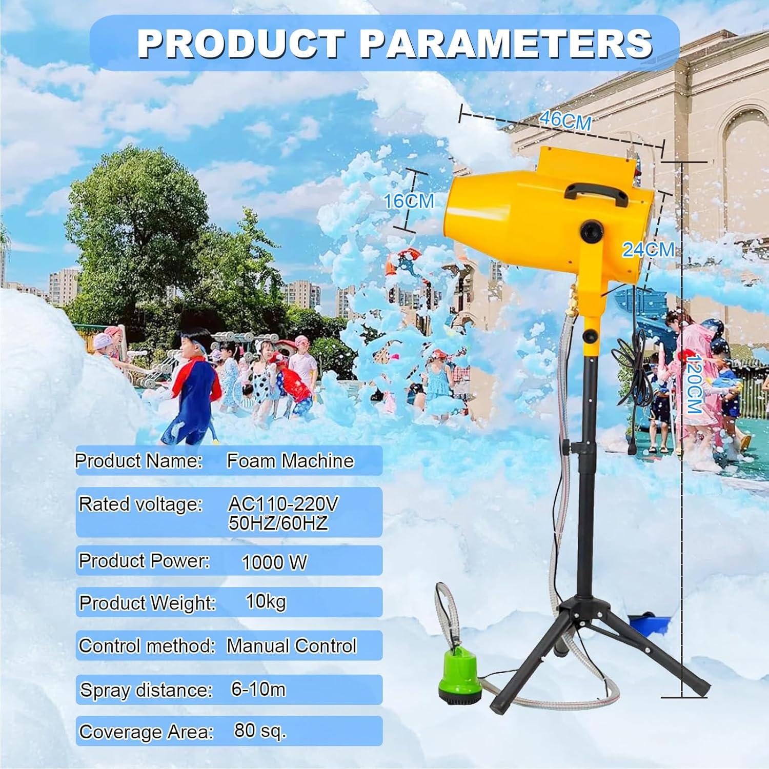 【Macchina per Schiuma da Festa】: Vivi l'ultima macchina per schiuma spray flessibile! Interazioni con la folla o attività in aree specifiche. Puoi creare uno spazio sognante di schiuma in pochi minuti, e la maggior parte delle soluzioni in polvere per schiuma sul mercato può essere perfettamente adattata. 【Alta resa, spruzzo continuo di schiuma】: La grande macchina per schiuma ad alta capacità utilizza ventilatori importati per accelerare l'area di spruzzo della schiuma, e l'ugello per schiuma da 1000 watt può regolare l'angolo su e giù, spruzzando la schiuma in modo flessibile nella posizione desiderata, creando più divertimento. 【Quantità di schiuma regolabile】: Controlla la quantità di schiuma in base alle tue esigenze. Che tu voglia una cascata di schiuma leggera o una schiuma densa, questa macchina può soddisfare le tue necessità. 【Leggero e portatile】: Questa piccola macchina leggera è facile da trasportare e conservare. Dotata di una piccola macchina per la schiuma, controller di potenza, pompa dell'acqua, treppiede e manuale utente. Non è necessario un serbatoio d'acqua speciale, qualsiasi contenitore in grado di contenere la soluzione schiumogena va bene. 【Ampia Applicazione】: Questa macchina per schiuma da piscina è perfetta per varie occasioni che richiedono un'atmosfera gioiosa e effetti interattivi. Adatta per feste di Natale in piscina, feste di compleanno, attività genitore-figlio, parchi giochi, parchi acquatici all'aperto, palcoscenici e centri commerciali.