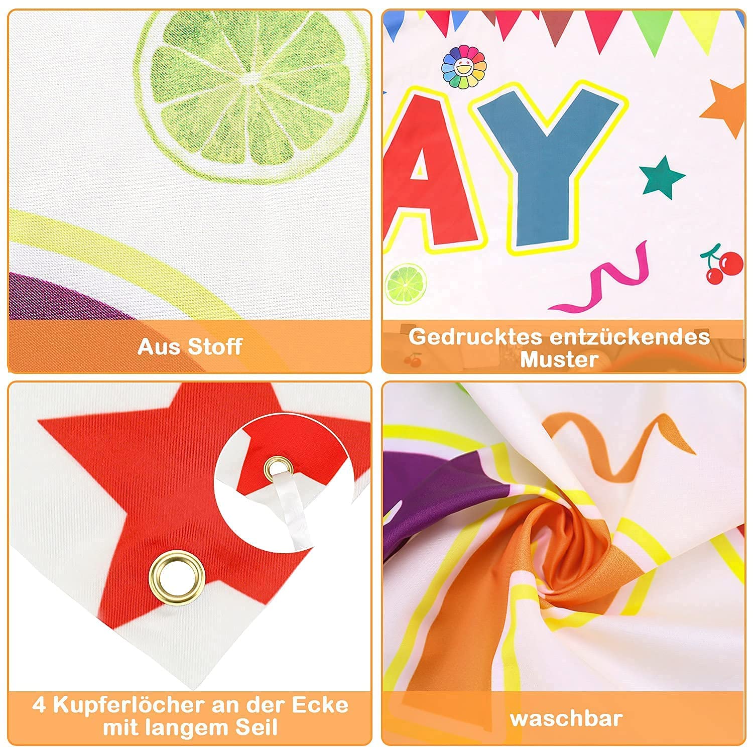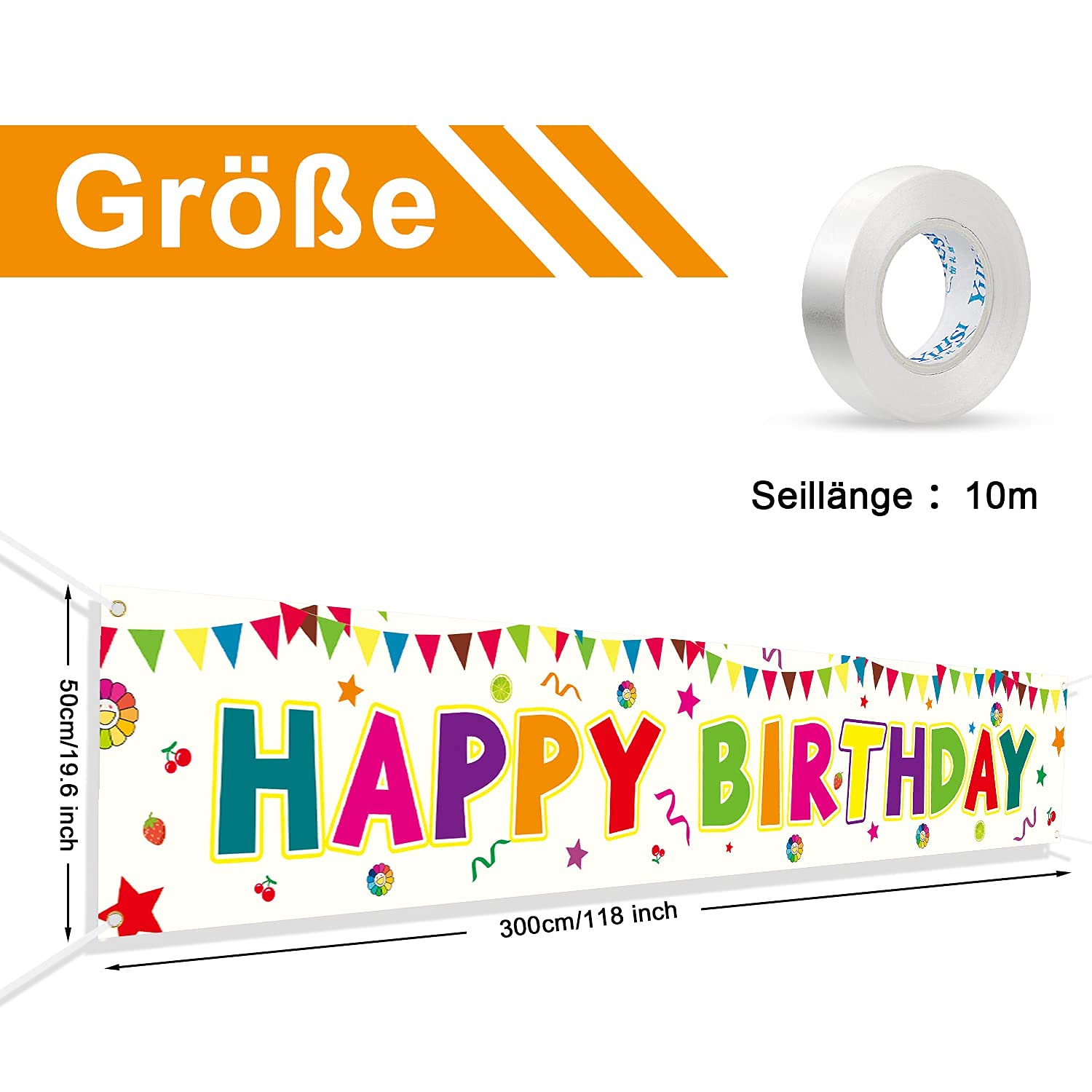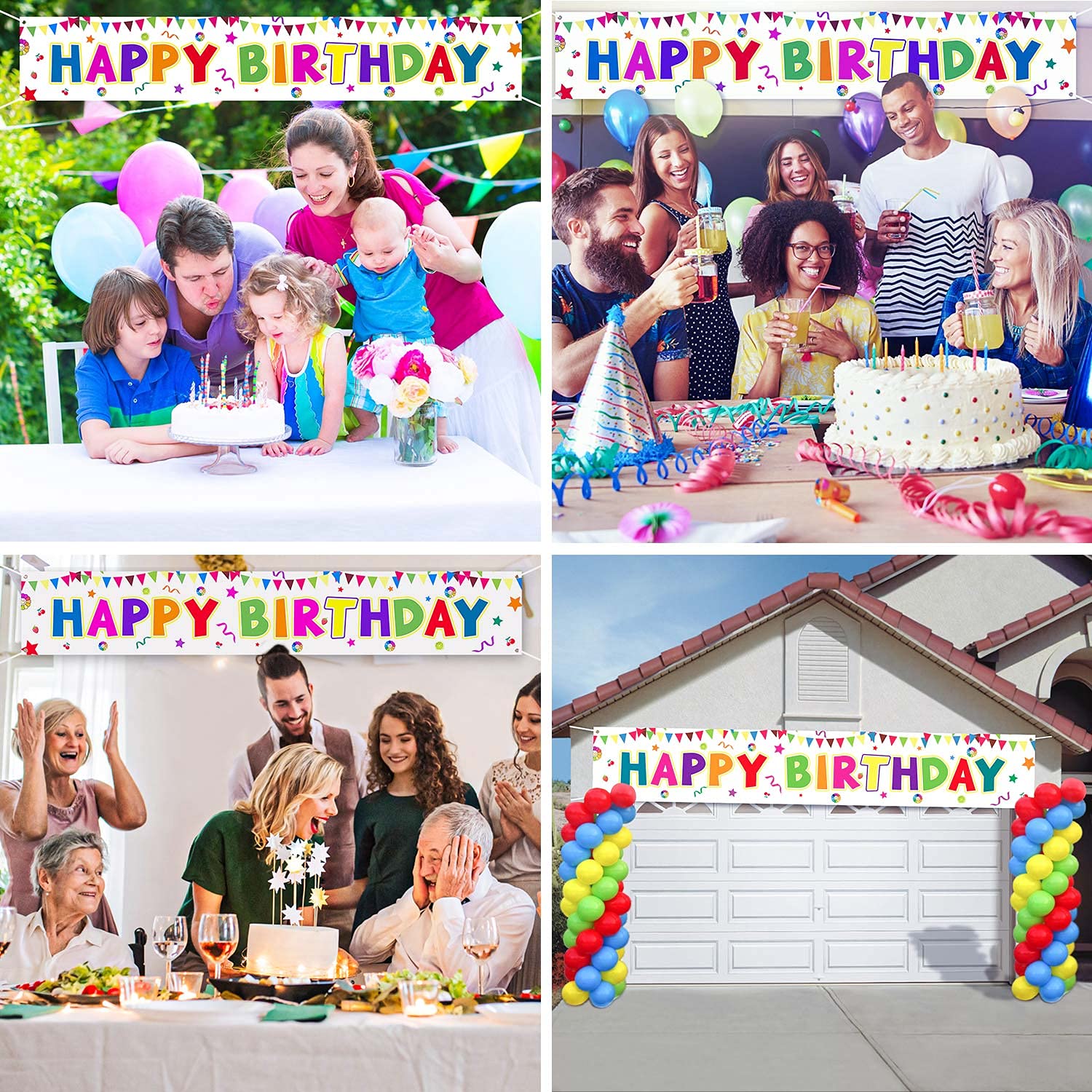 Decorazione luminosa per il compleanno: lo striscione accattivante impressionerà gli ospiti e, cosa ancora più importante, farà sentire festeggiata la persona che compie gli anni! Materiale durevole e riutilizzabile: striscione di compleanno di eccellente qualità, i colori erano perfetti, qualità di stampa fantastica. È robusto, lavabile e resistente agli strappi. Dimensioni enormi: la decorazione di compleanno extra lunga attirerà l'attenzione e annuncerà al vicinato che qualcuno sta festeggiando un grande compleanno. Design arcobaleno unico: i colori vivaci ravviveranno gli accessori della tua festa di compleanno. Facile da appendere: negli angoli dello striscione di compleanno ci sono 4 anelli di tenuta in rame. Viene fornito con un cavo bianco da 26 piedi, che lo rende facile da installare. Decorazioni perfette per le feste: i fantastici striscioni di buon compleanno sono un'ottima scelta per feste all'aperto e al chiuso o feste di compleanno di passaggio.